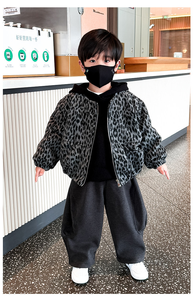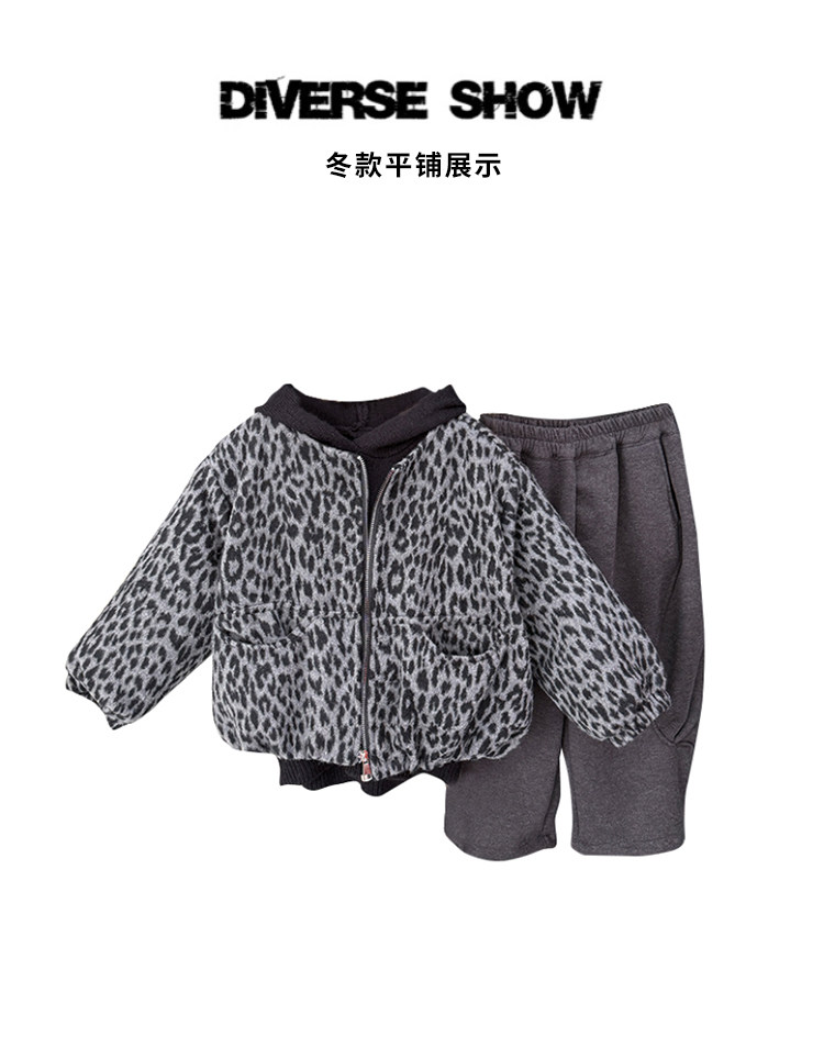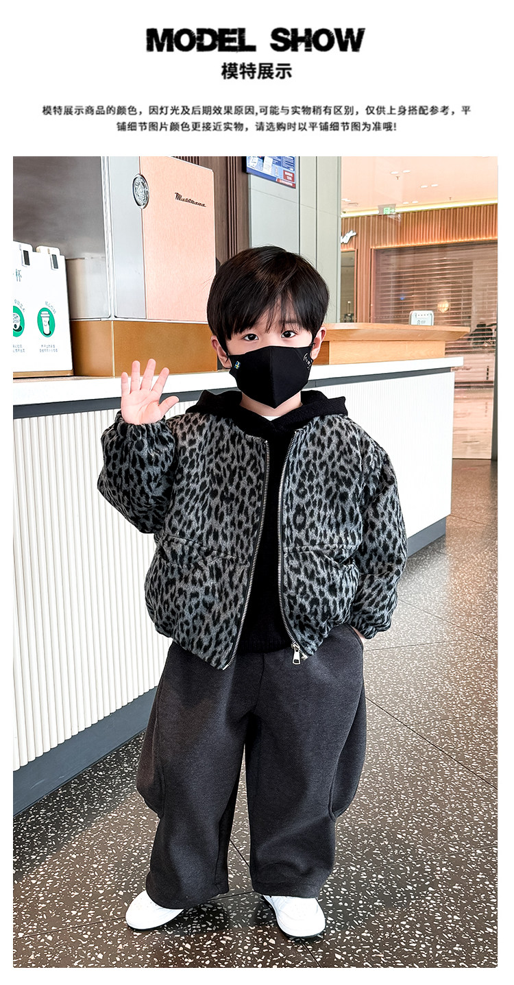 Boys' Autumn and Winter Clothing Set, Kidsren's Sweater Fleece-Lined Jacket 2026 New Baby Thickeneded Warm Leopard Print Three-Piece Set
