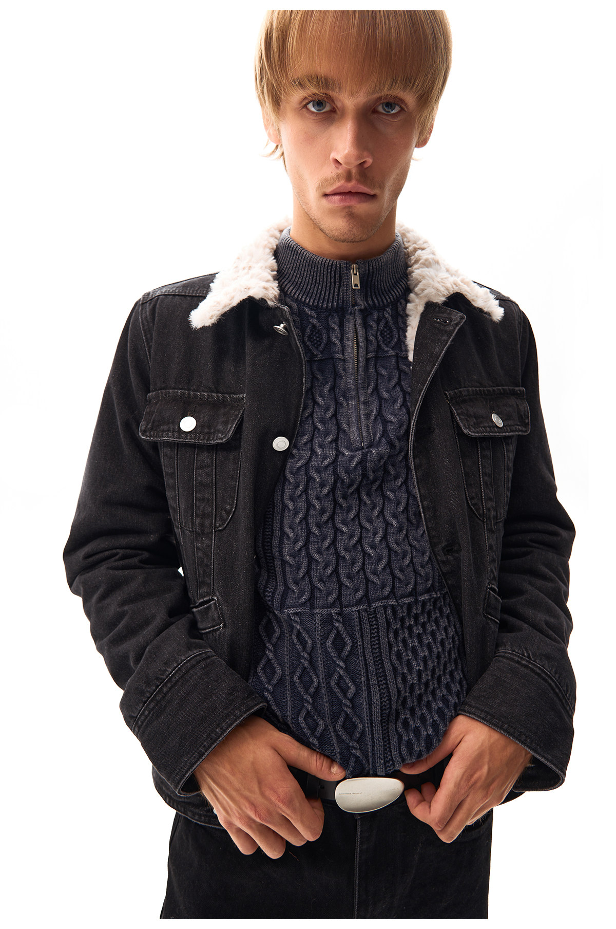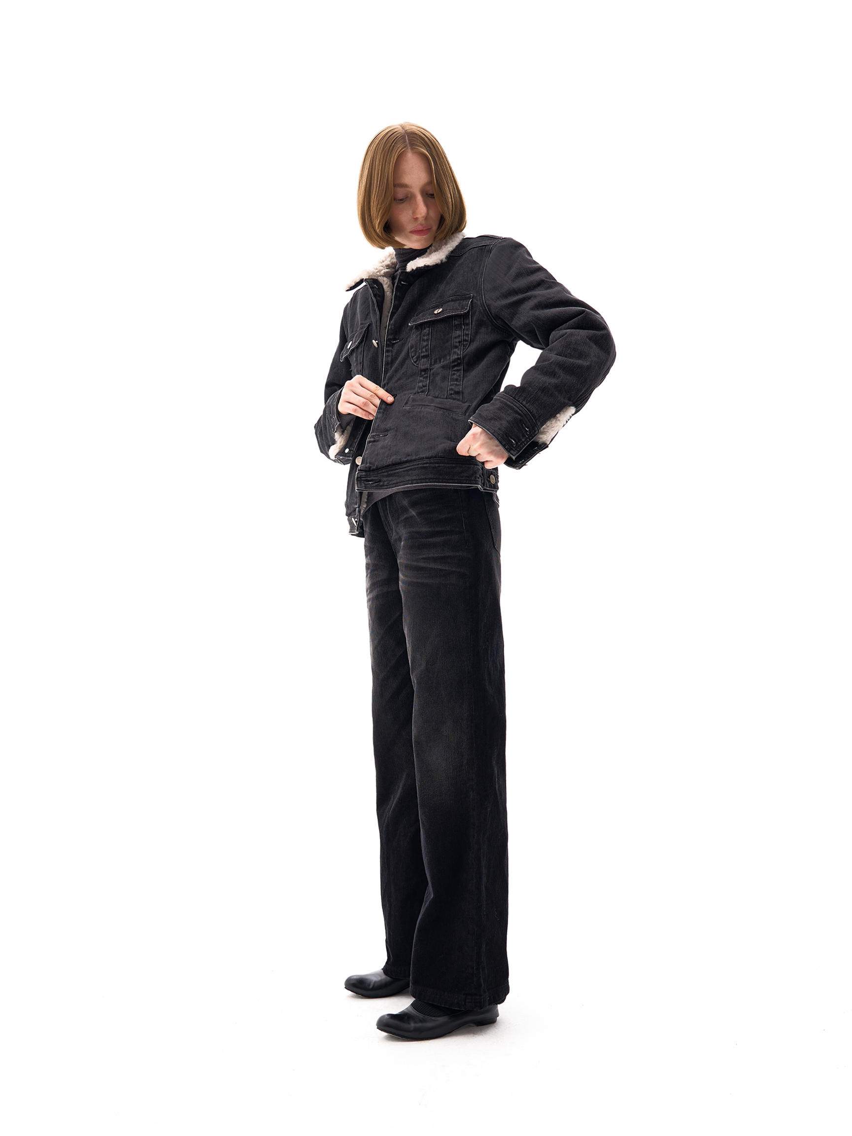 Slight Vogue BEVAN UP original black vulcanized firecracker narrow denim lambswool lining jacket
