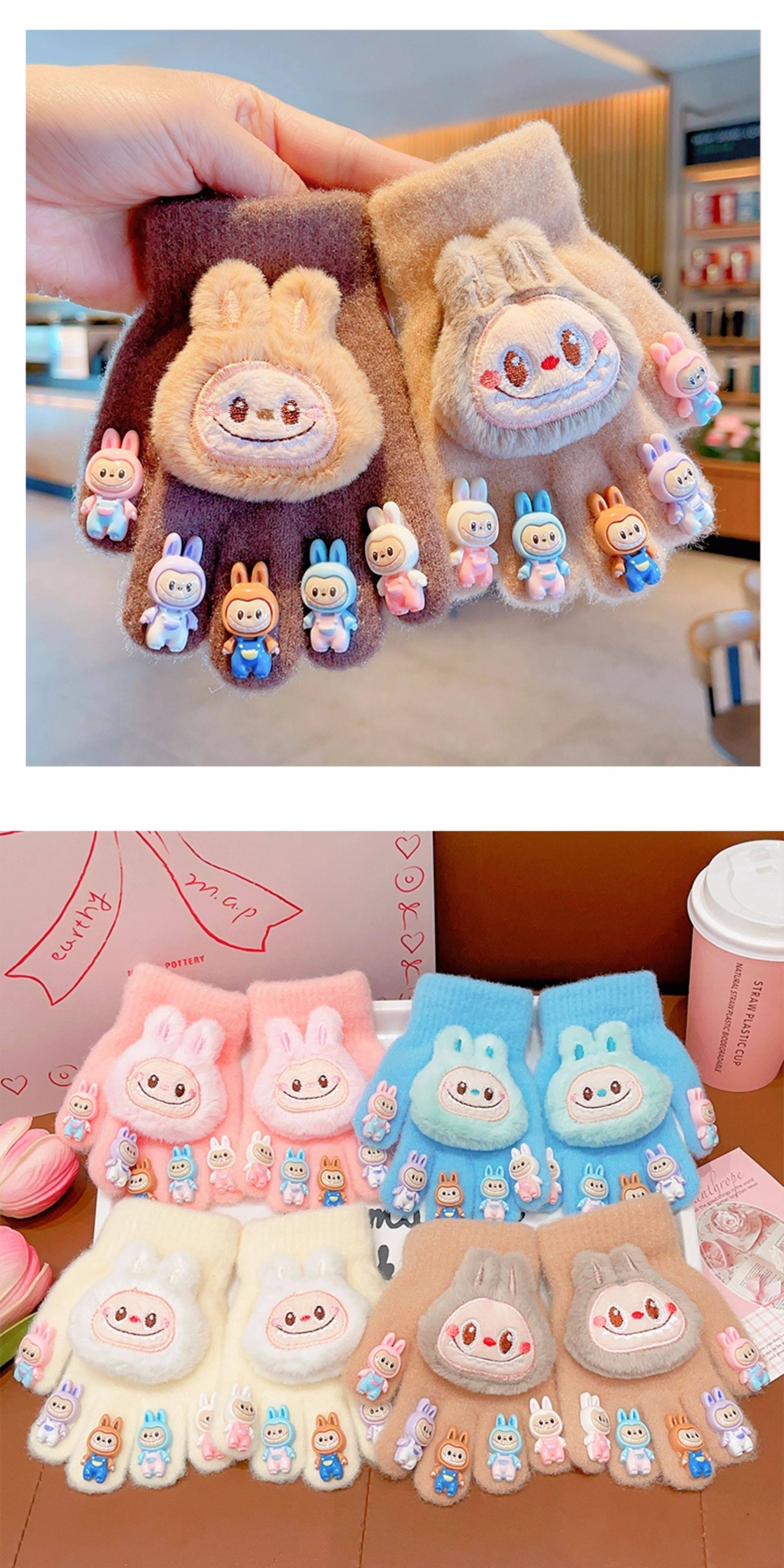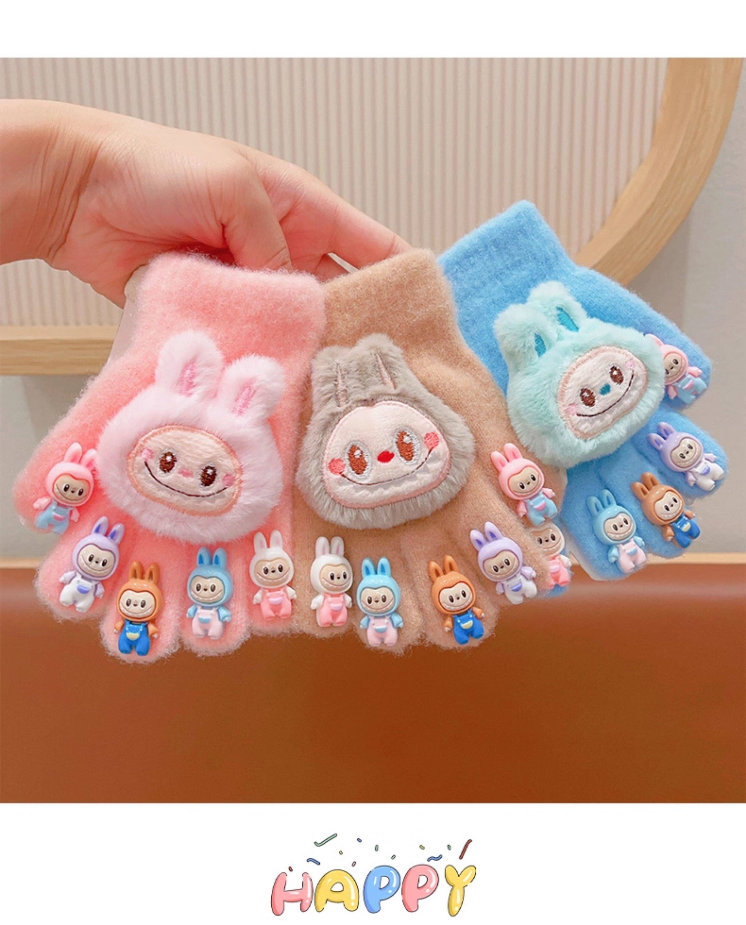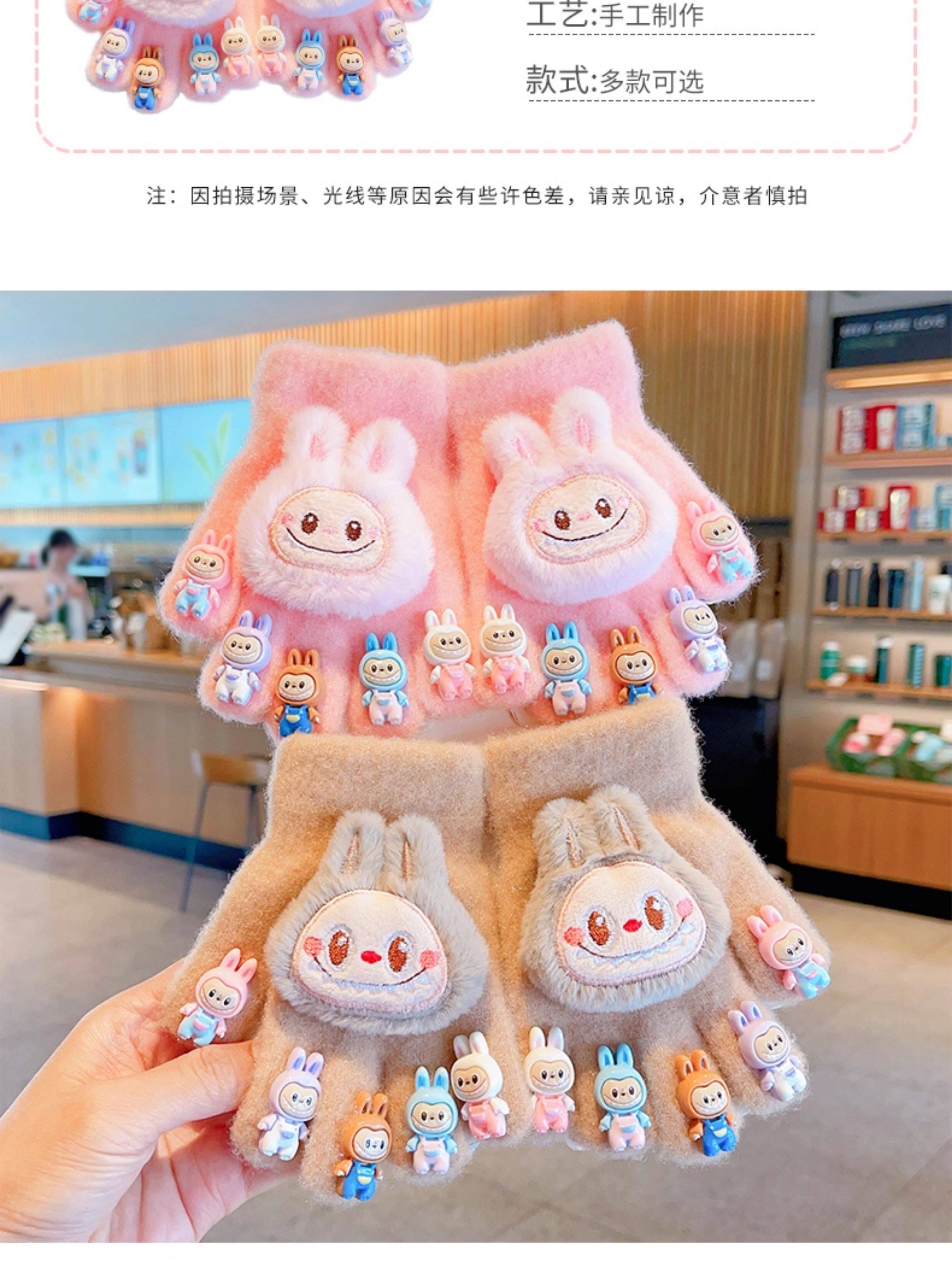 Labubu children's gloves girls winter 2026 new five-finger gloves plus velvet soft to keep warm and keep out the cold, split fingers can be written