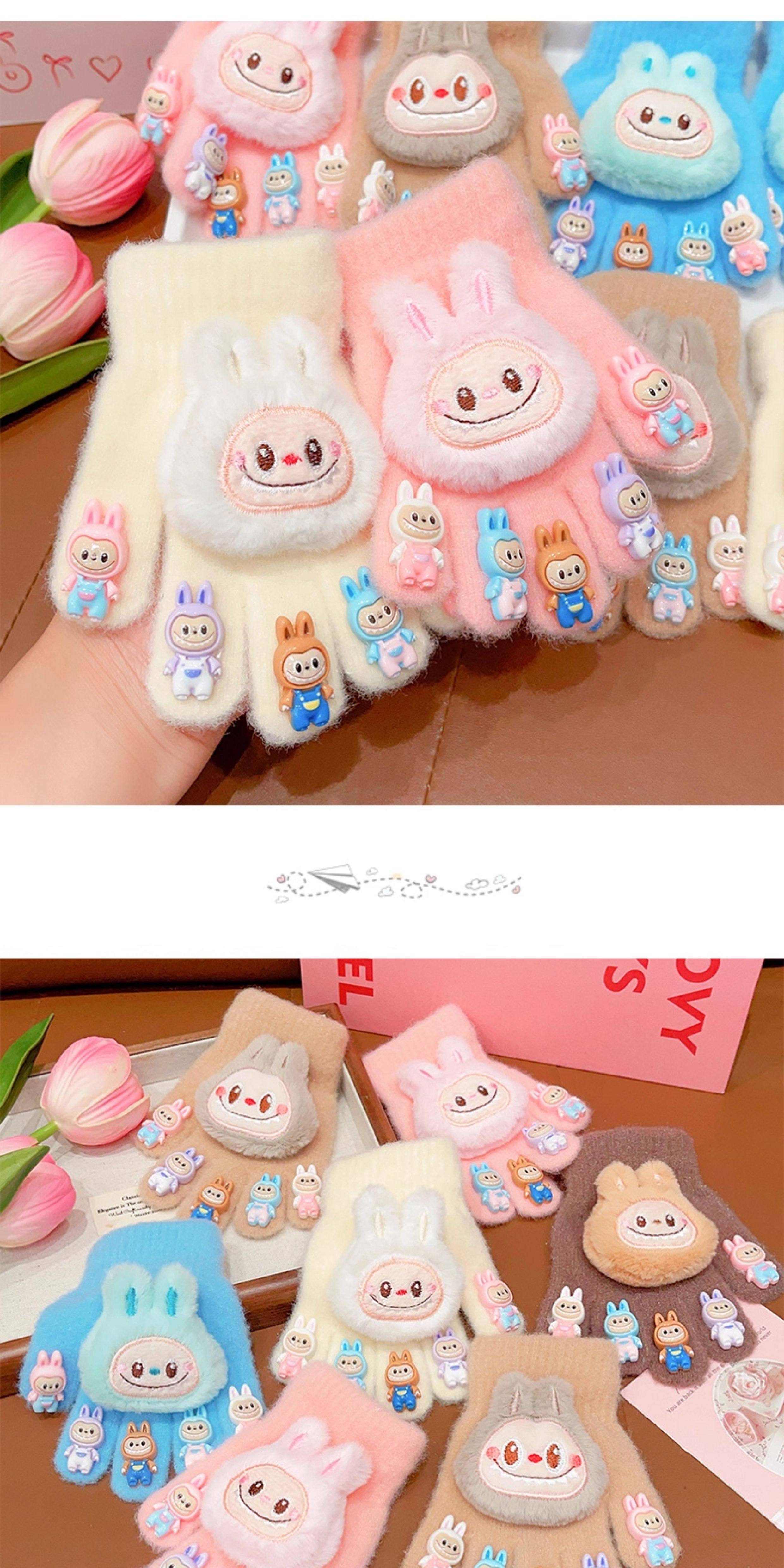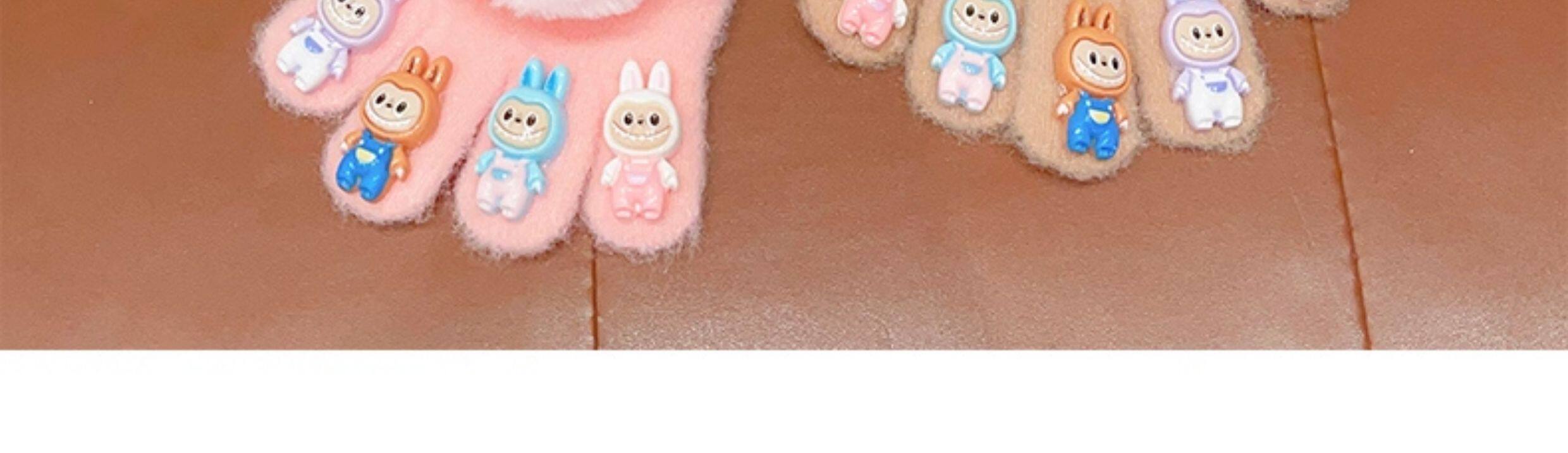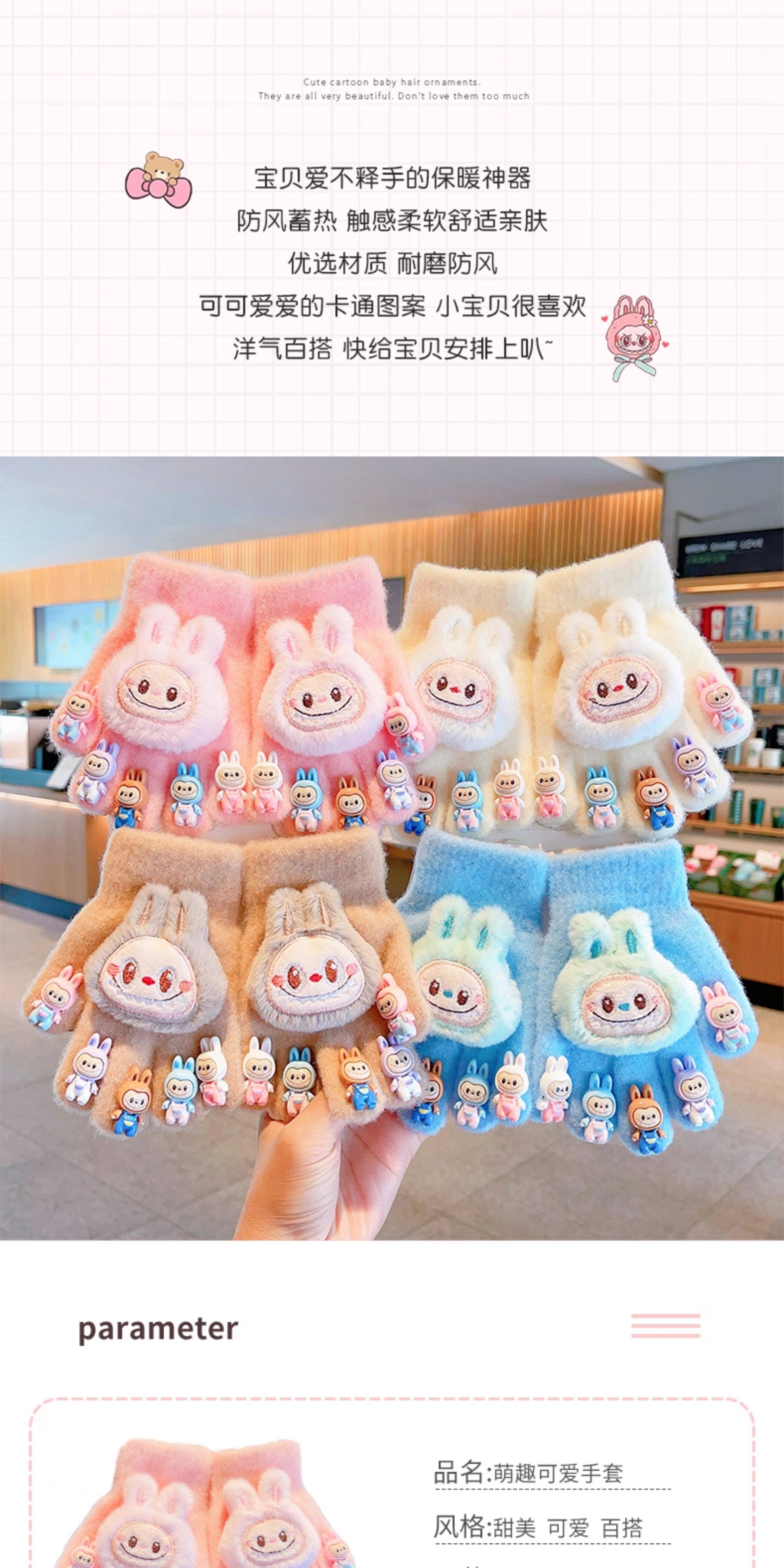 Labubu children's gloves girls winter 2026 new five-finger gloves plus velvet soft to keep warm and keep out the cold, split fingers can be written