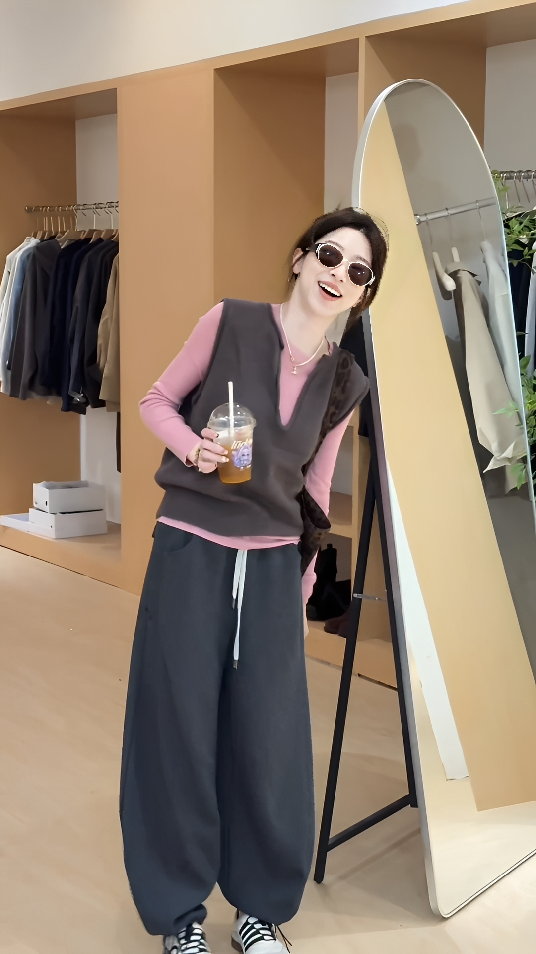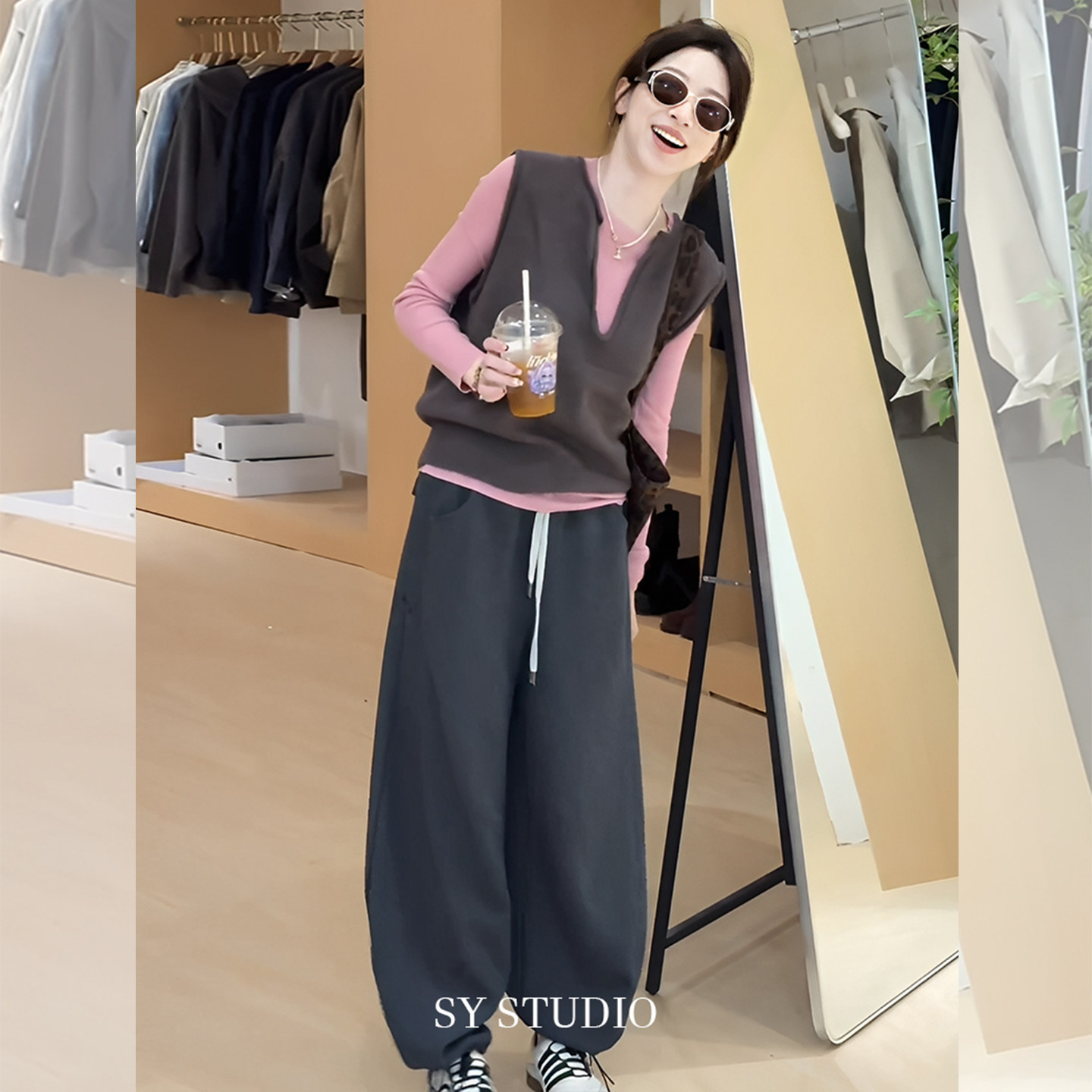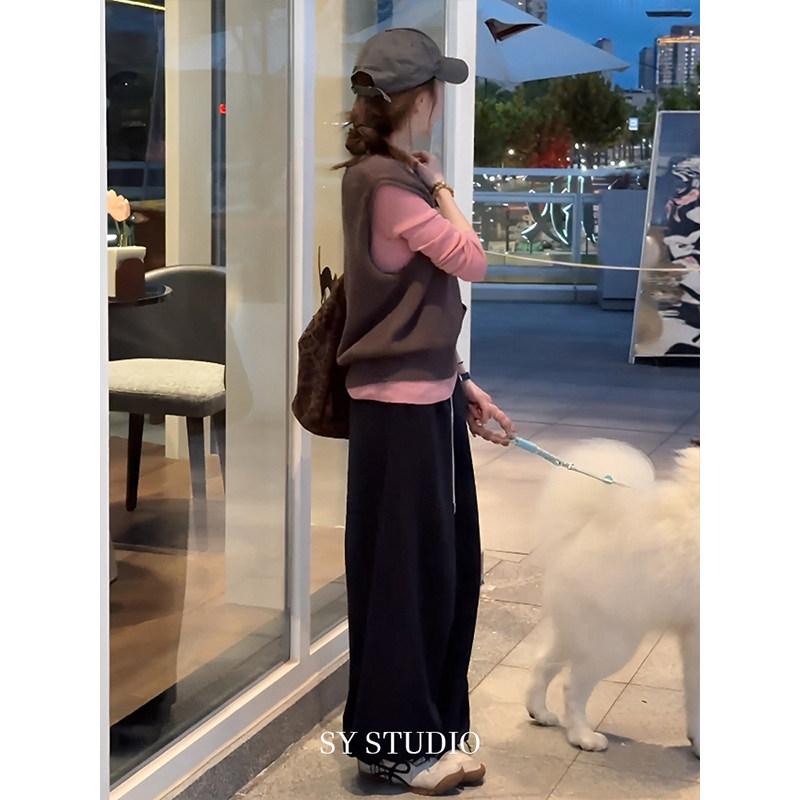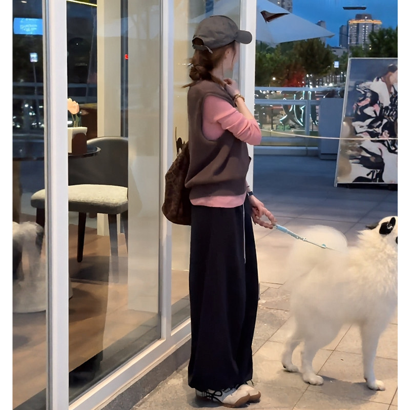 Sort by color Dark gray vest + pink bottoming shirt,Dark gray pants,Dark gray vest + pink bottoming shirt + dark gray pants