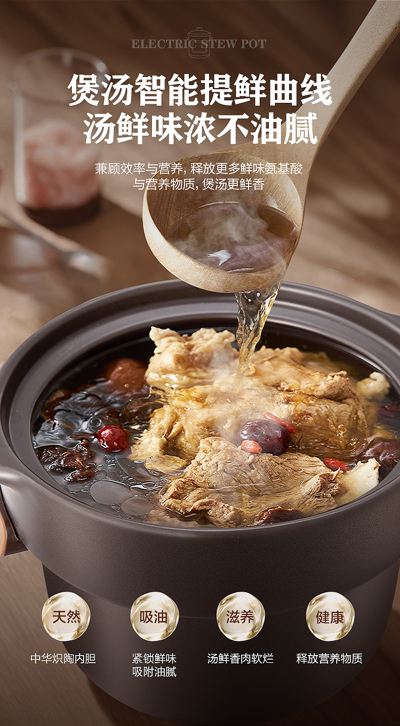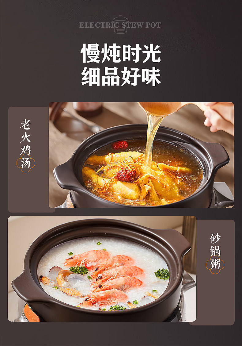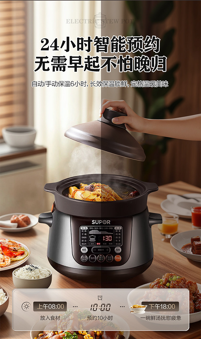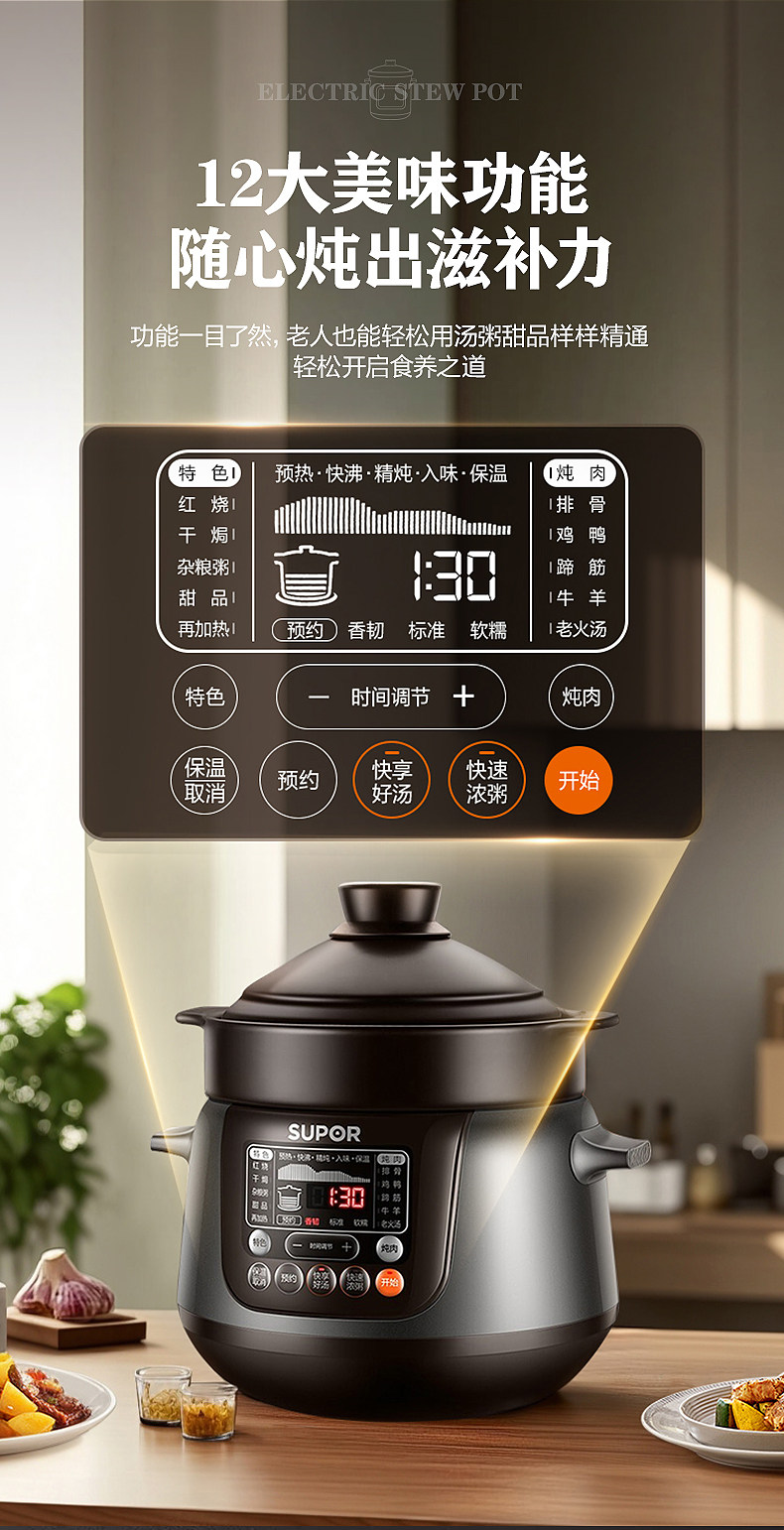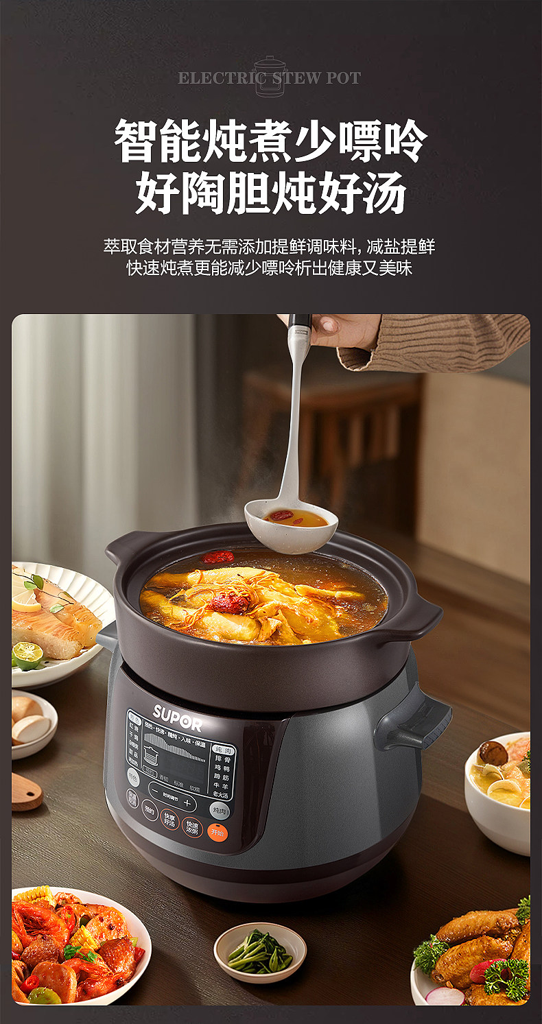 Supor Chinese Electric Ceramic Stew Pot for Home Use, Electric Clay Pot, Health Pot, Soup Pot, Multifunctional Porridge Pot