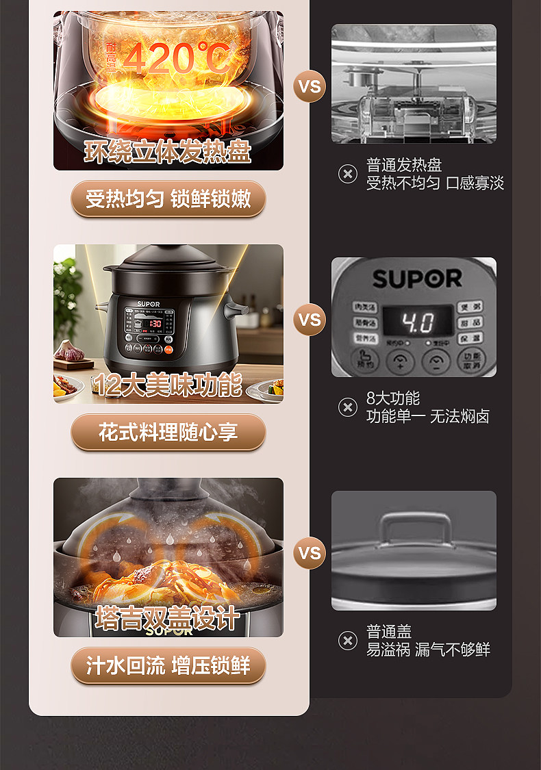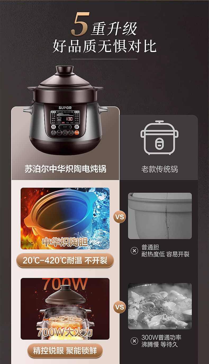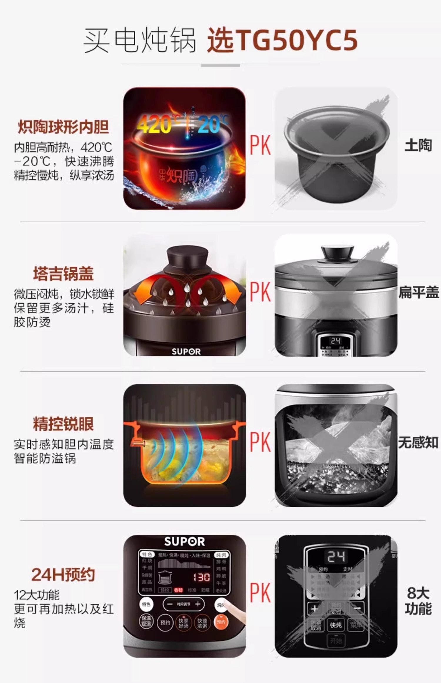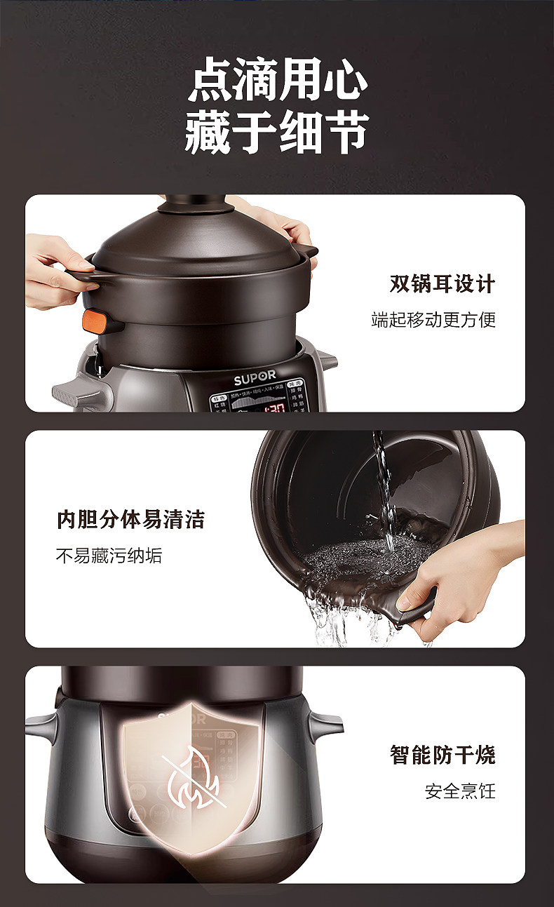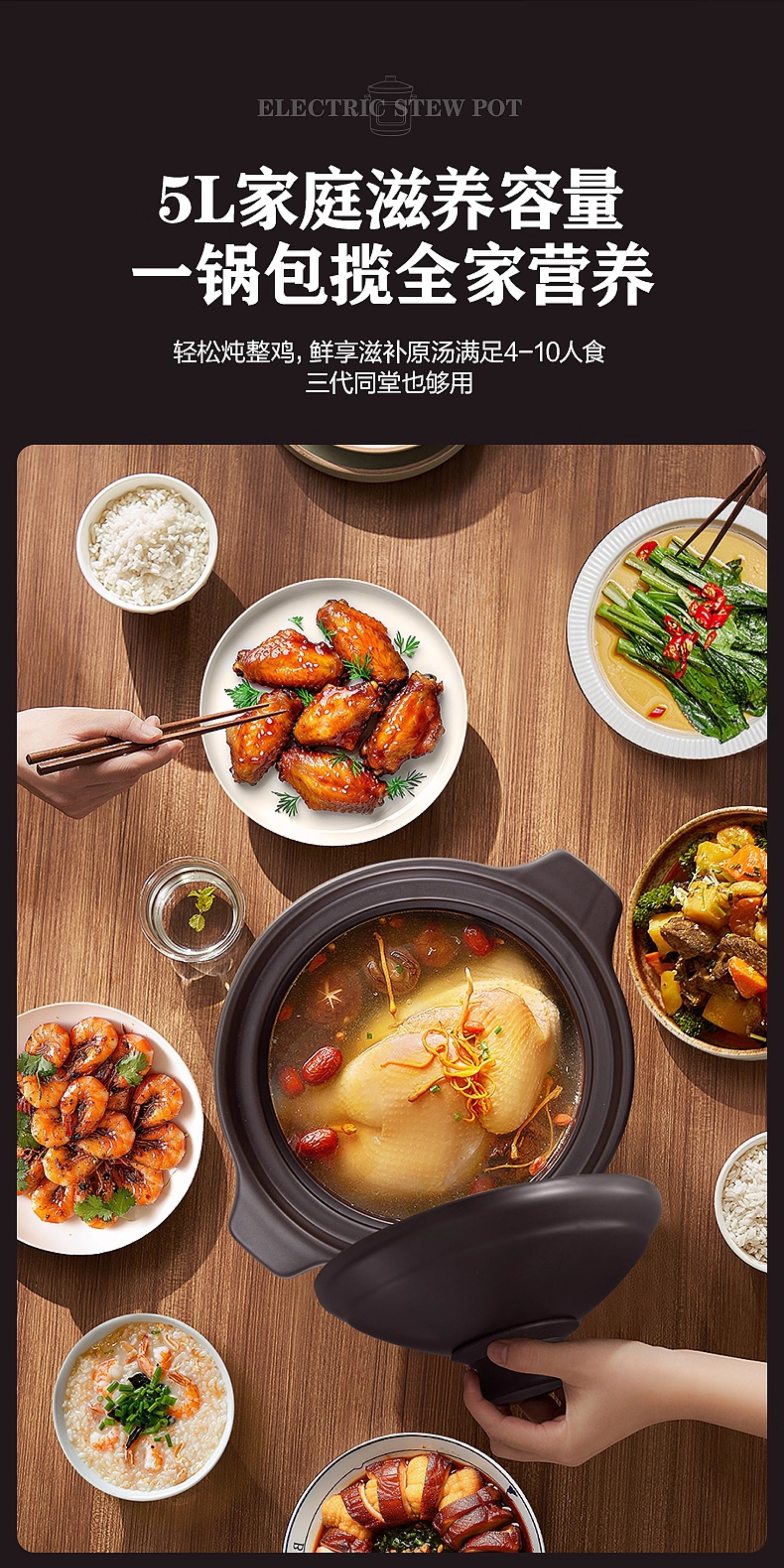 Supor Chinese Electric Ceramic Stew Pot for Home Use, Electric Clay Pot, Health Pot, Soup Pot, Multifunctional Porridge Pot