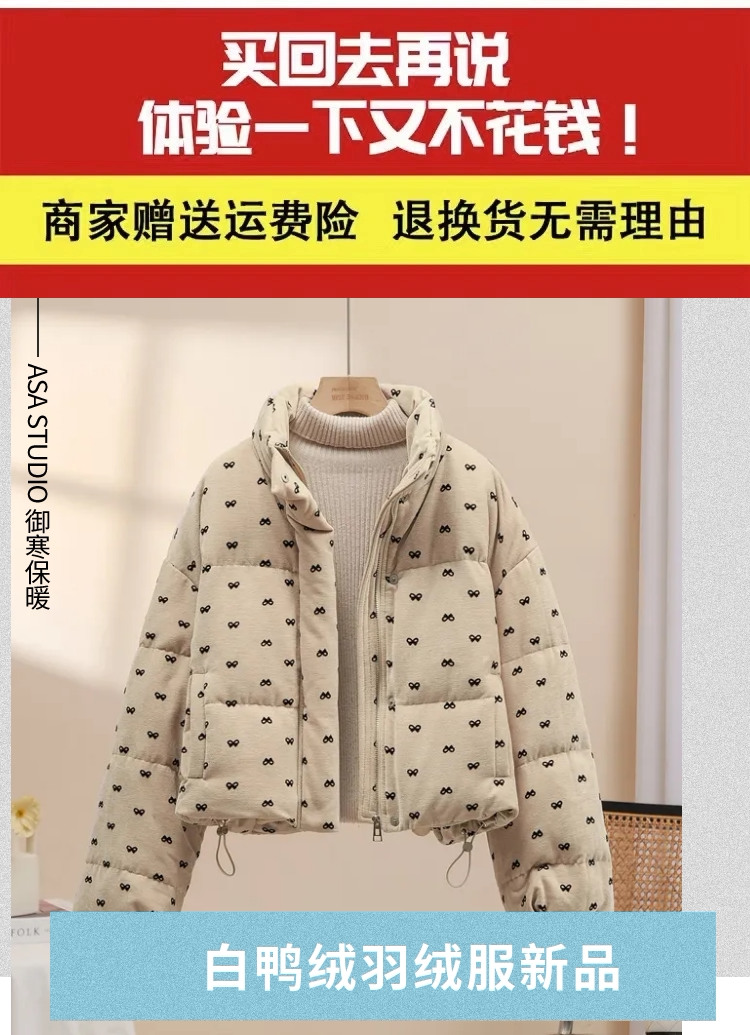 Down jacket women's short 2025 new style this year's popular hot style small stand-up collar white duck down thickened versatile winter