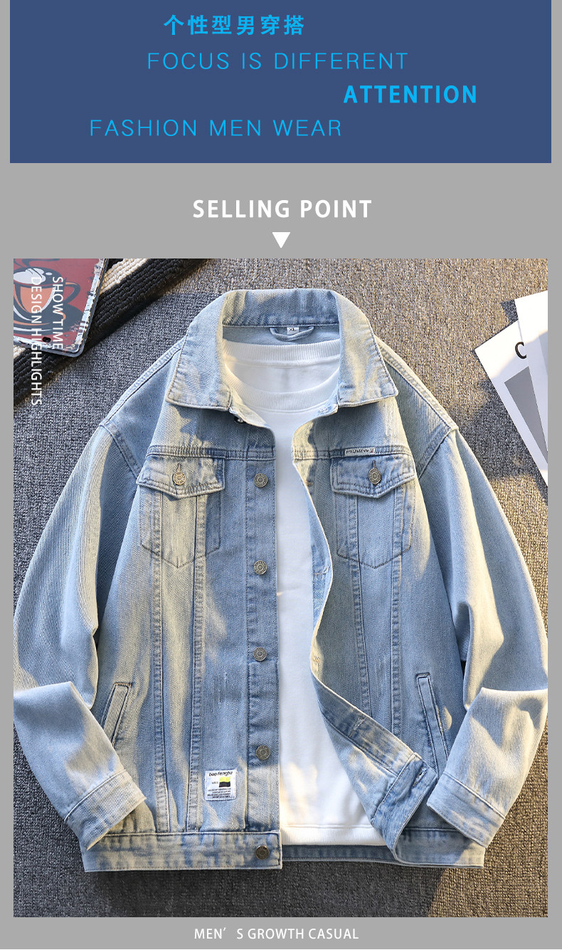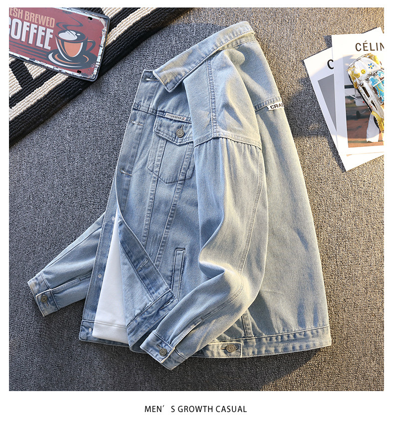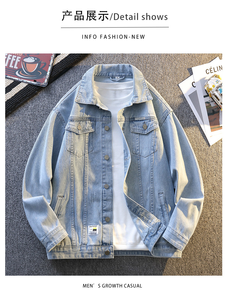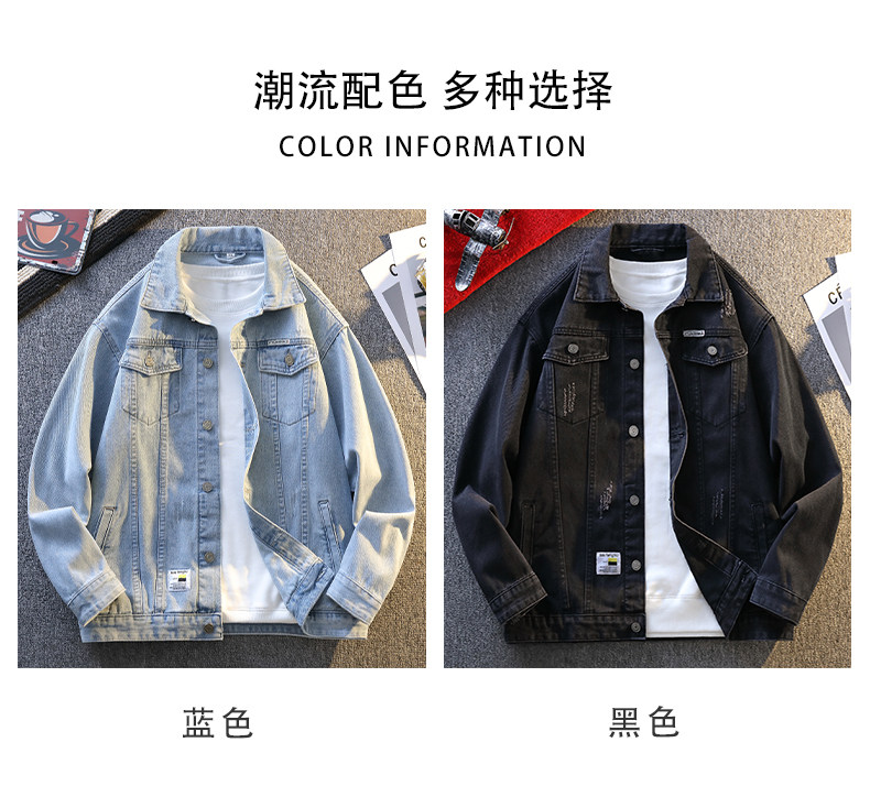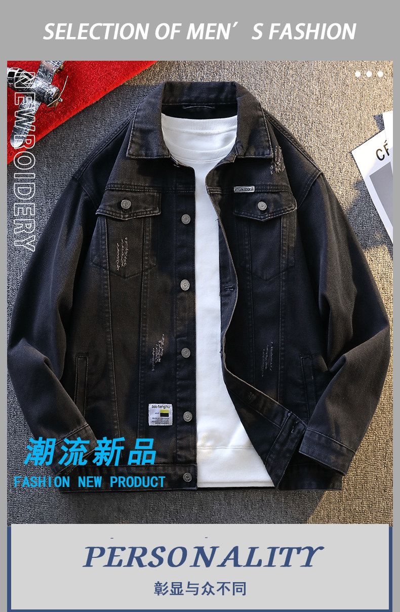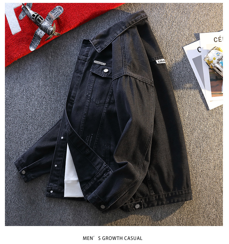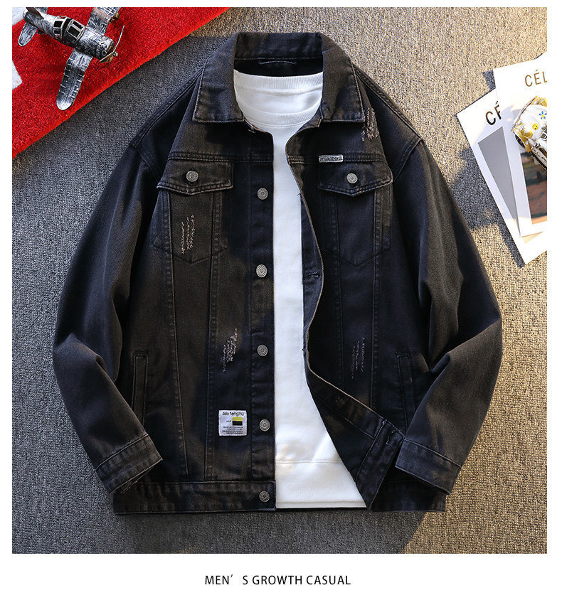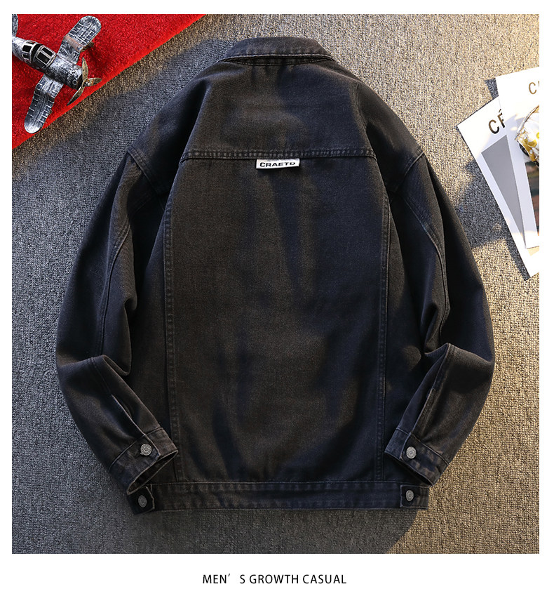 Jeanswest Spring and Autumn Style Stone-Washed Distressed Japanese-Style Black Multi-Pocket Denim Jacket Men's Trendy Workwear Jacket