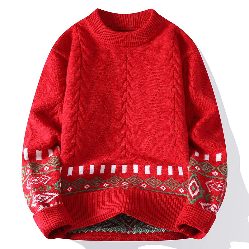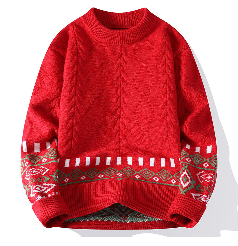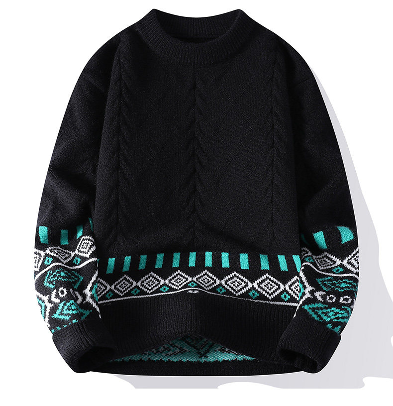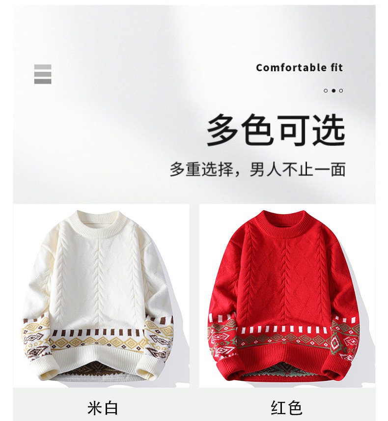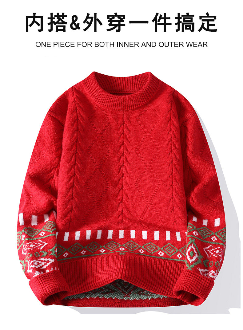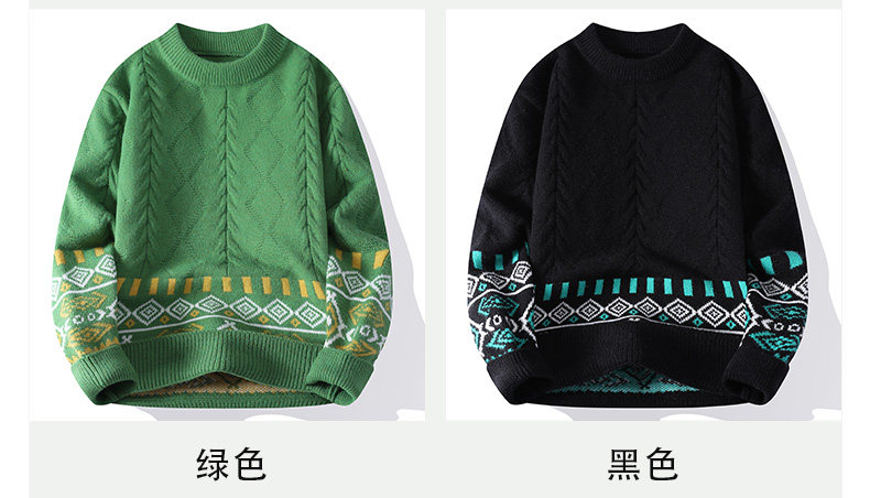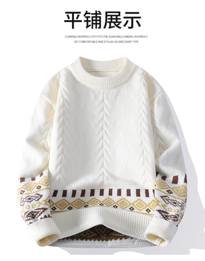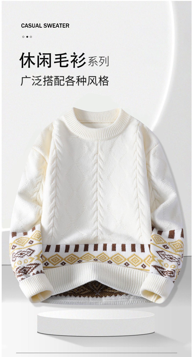 2025 Autumn and Winter Thickened Round Neck Men's Sweater Korean Style Trendy National Trend Brand Fashionable and Handsome Casual Sweater