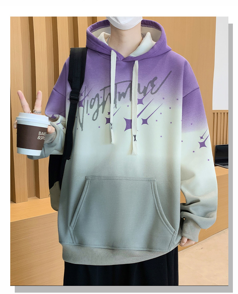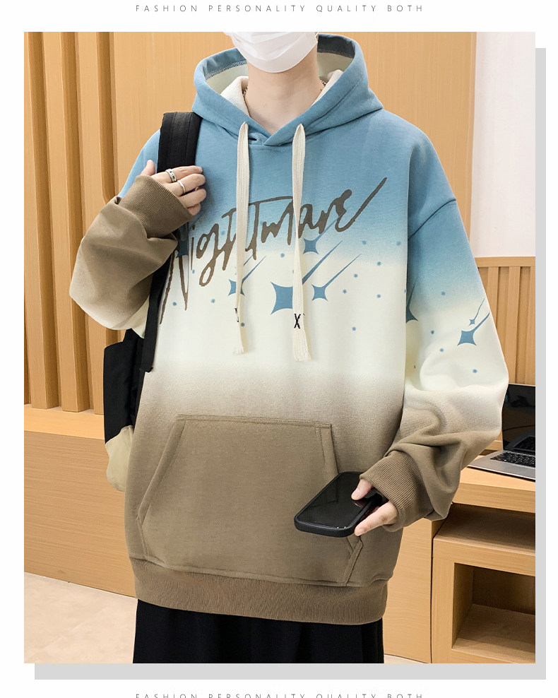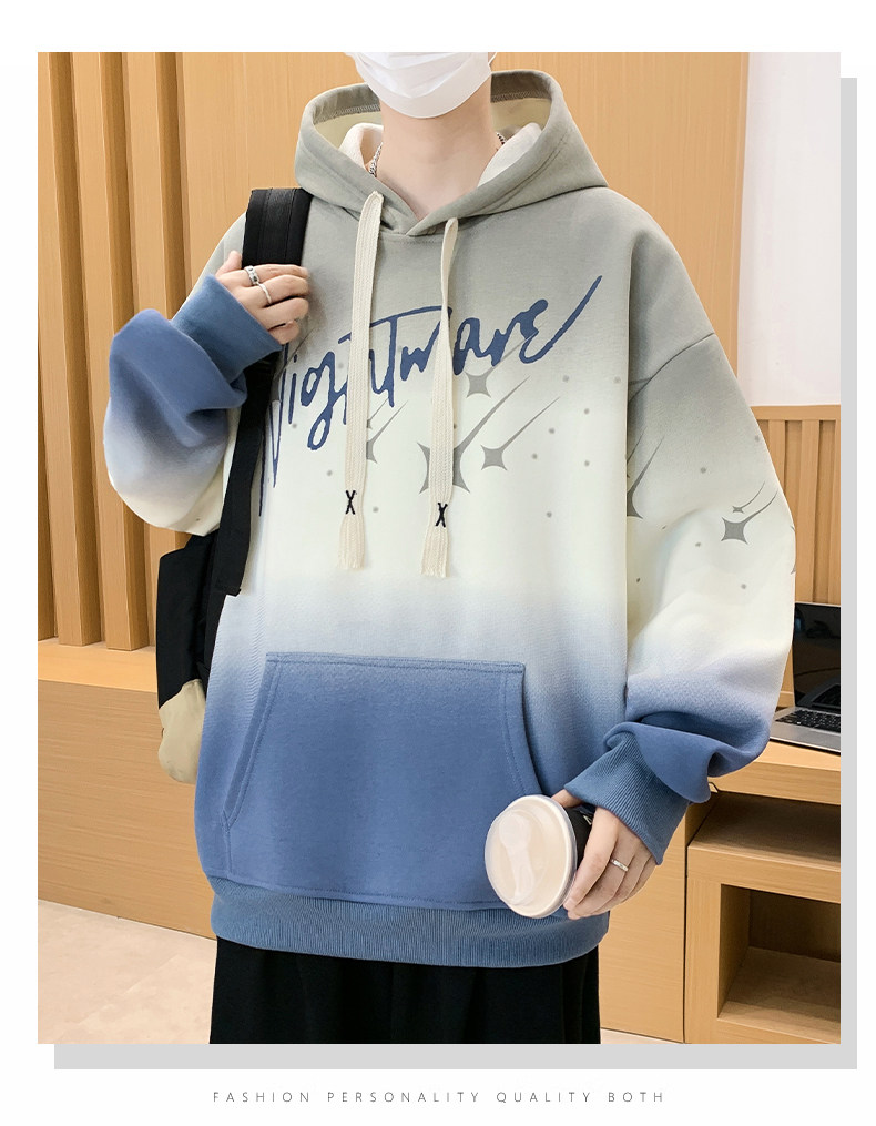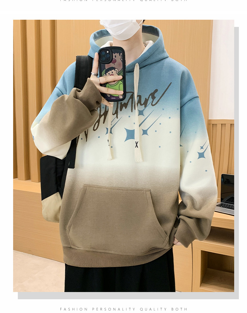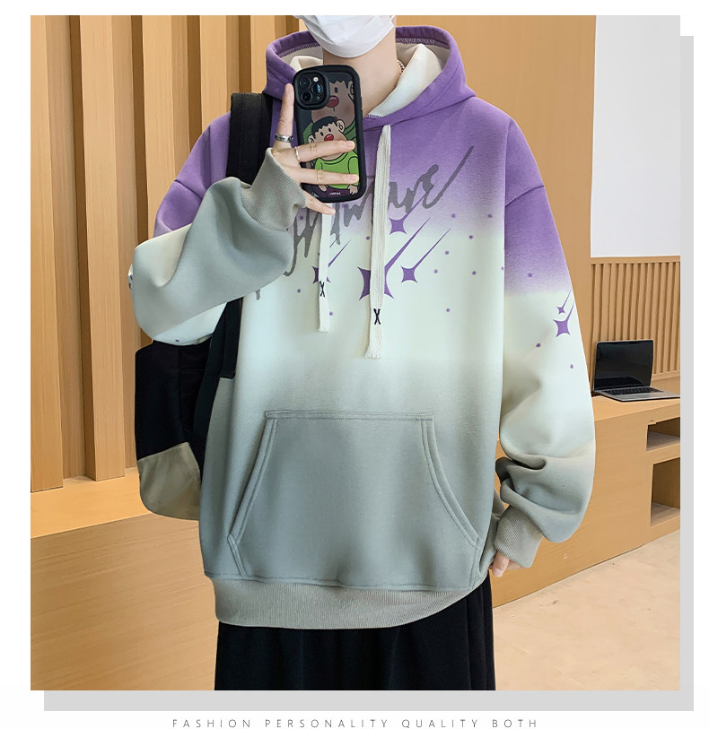 Gradient Color Hooded Sweatshirt for Men 2025 New Autumn and Winter Youth Casual Fleece-Lined Thickened Inner Layer Jacket Top