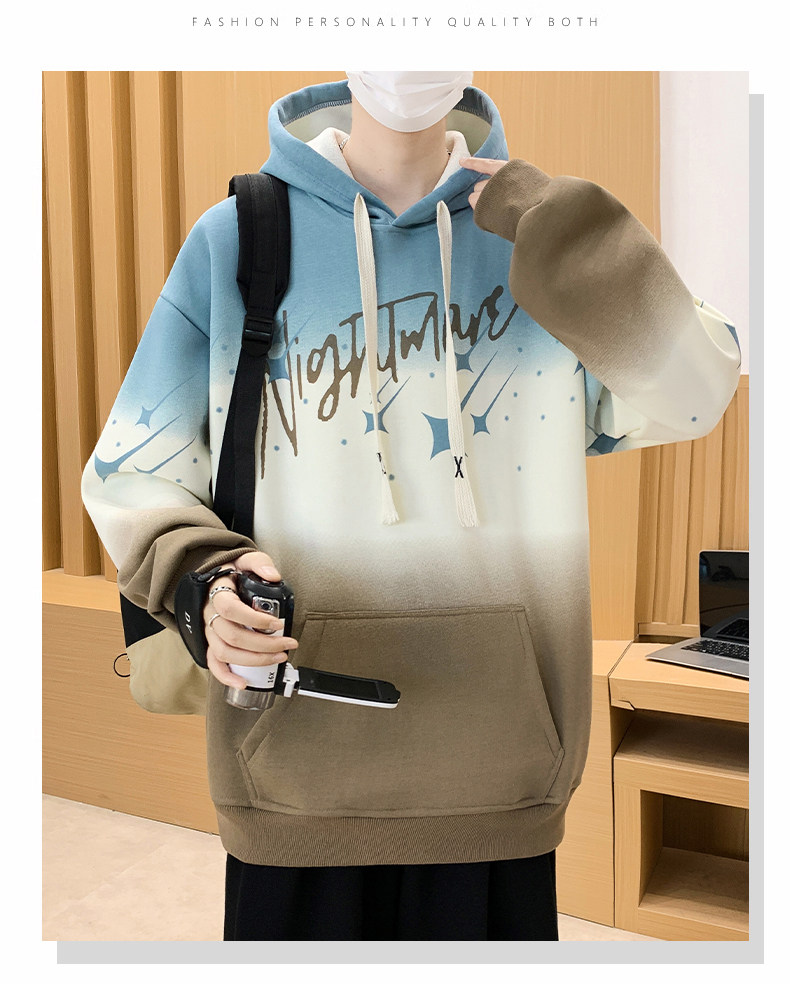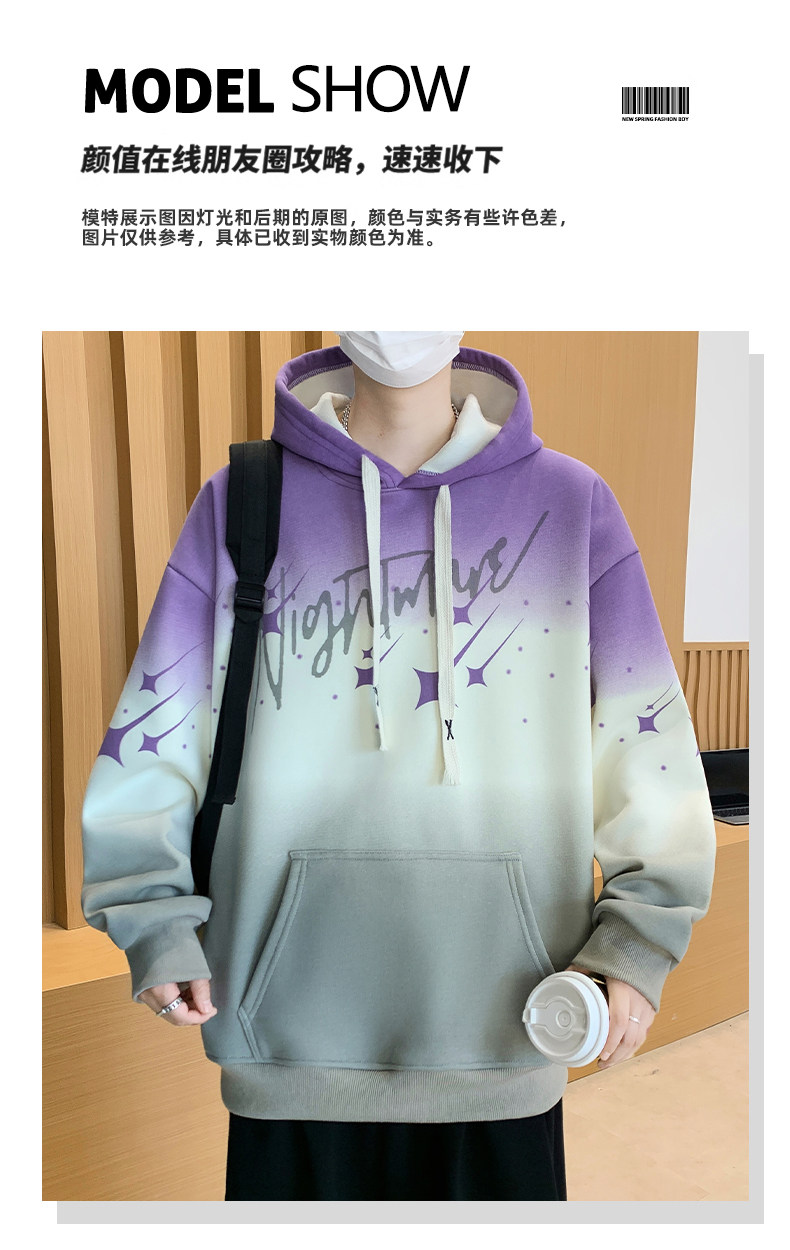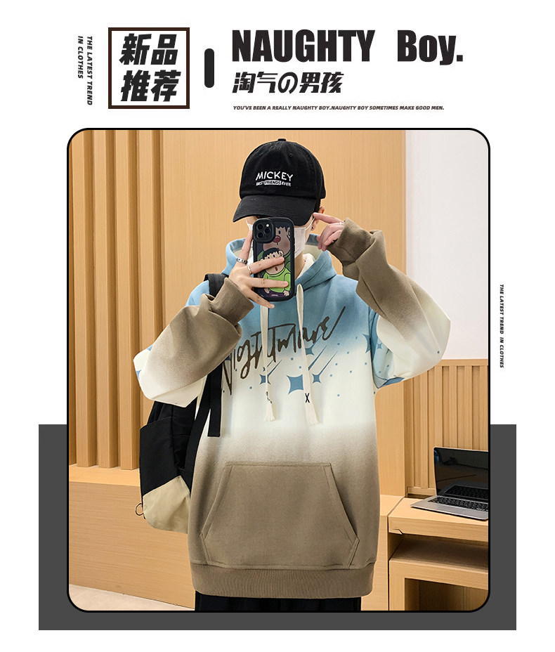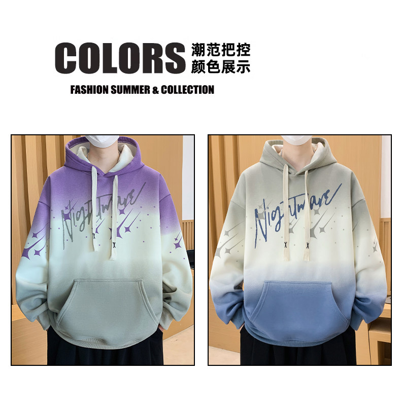 Gradient Color Hooded Sweatshirt for Men 2025 New Autumn and Winter Youth Casual Fleece-Lined Thickened Inner Layer Jacket Top