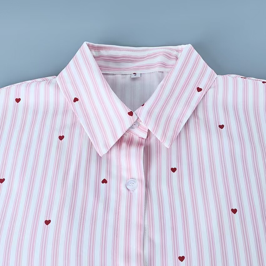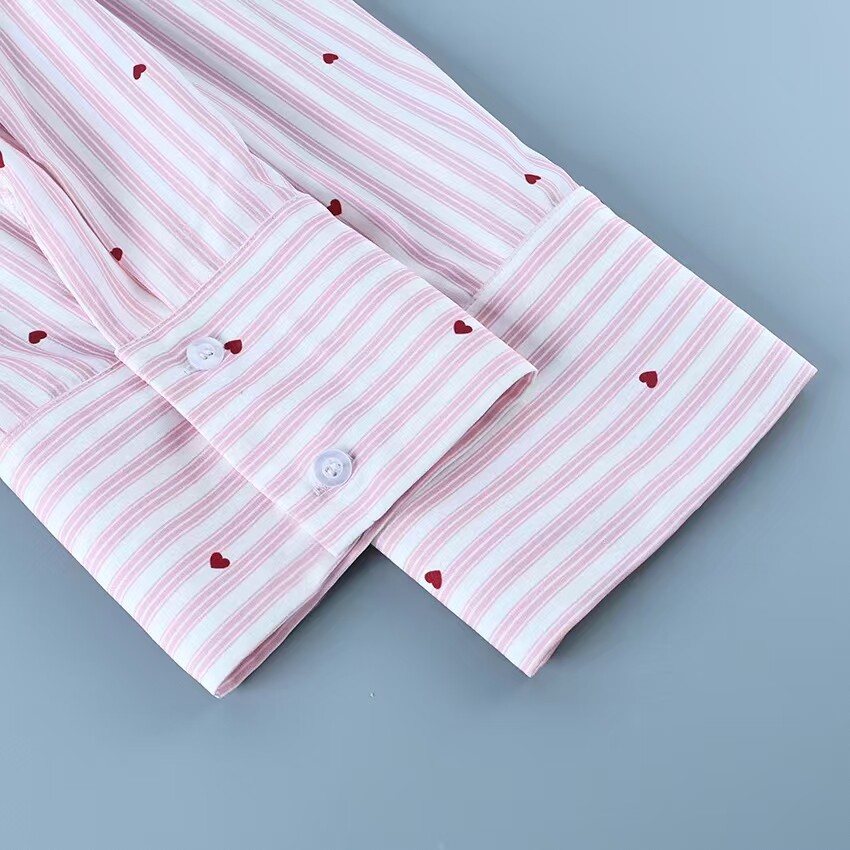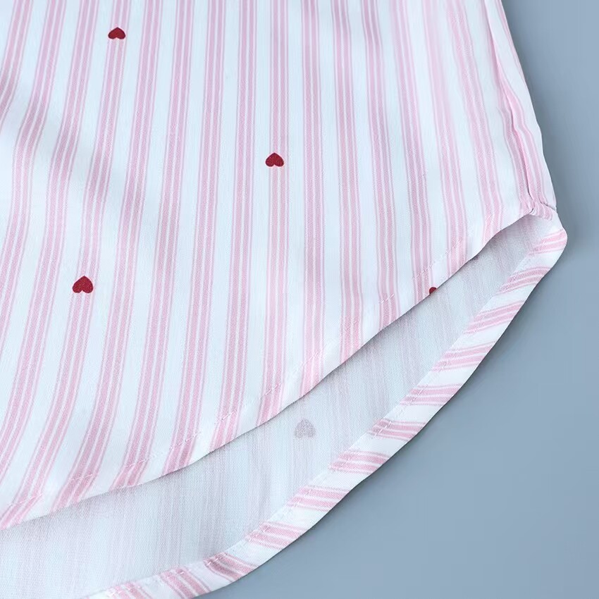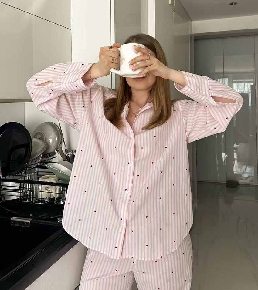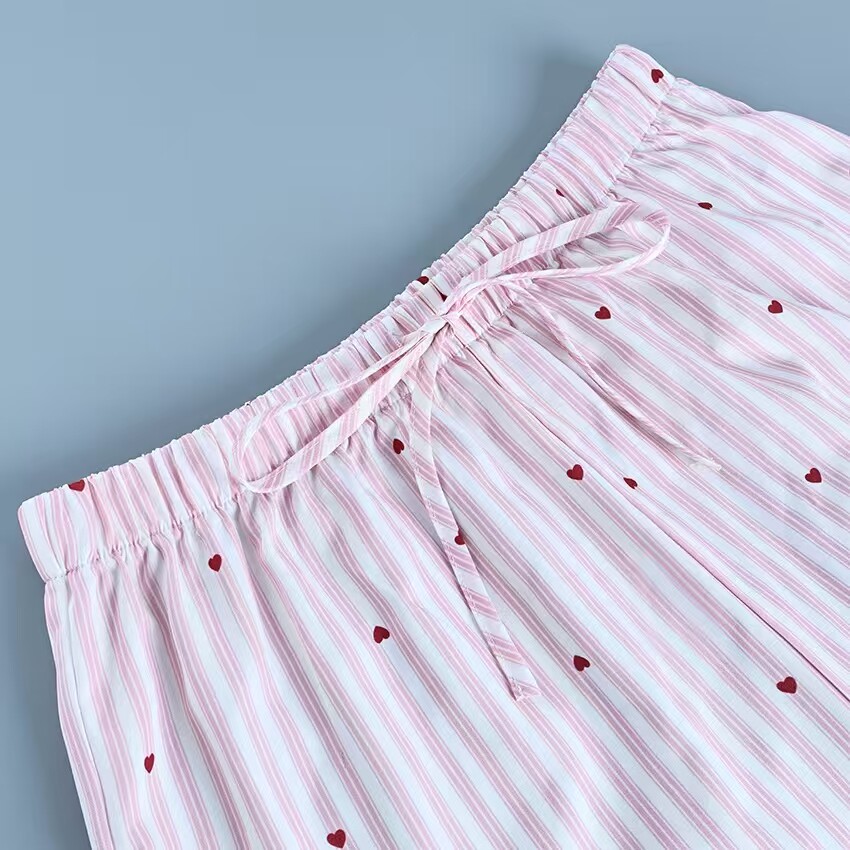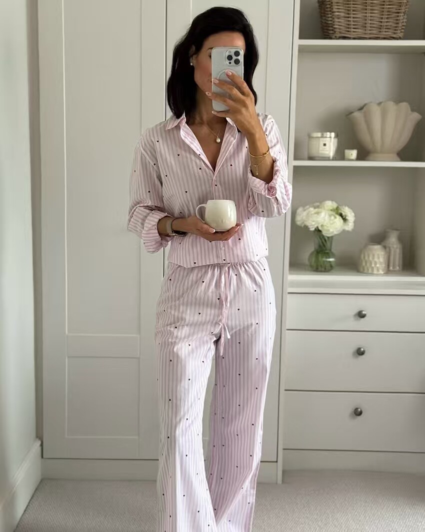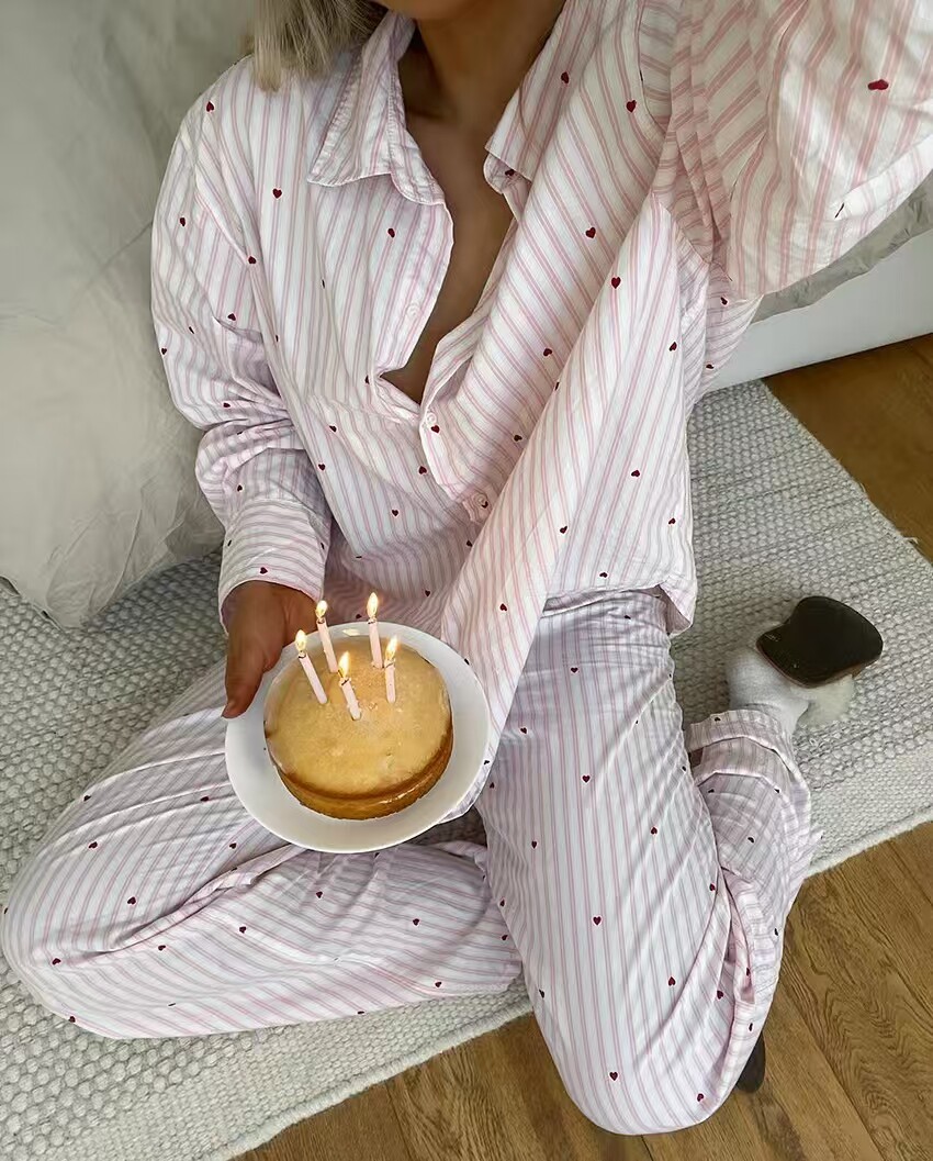 European and American Style New Casual Loose Striped Shirt and Pants Loungewear Set