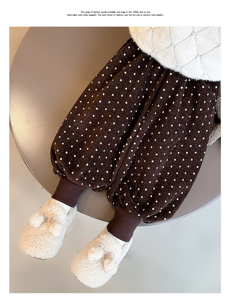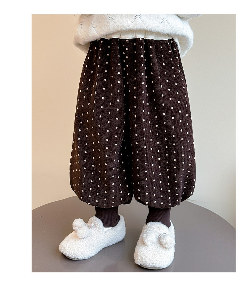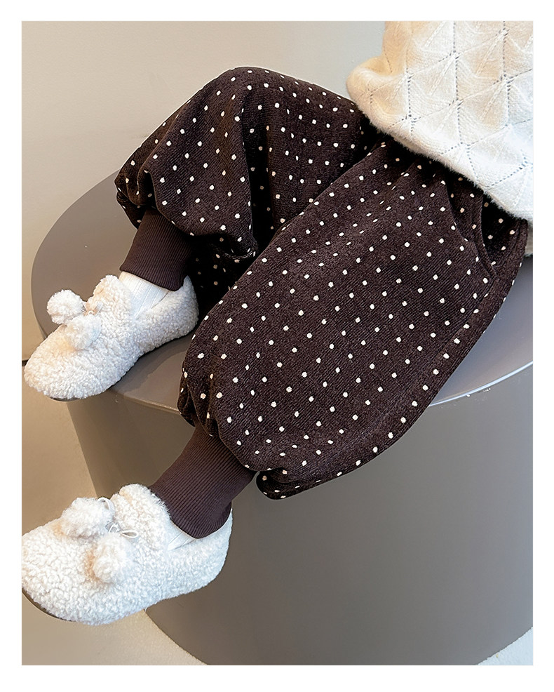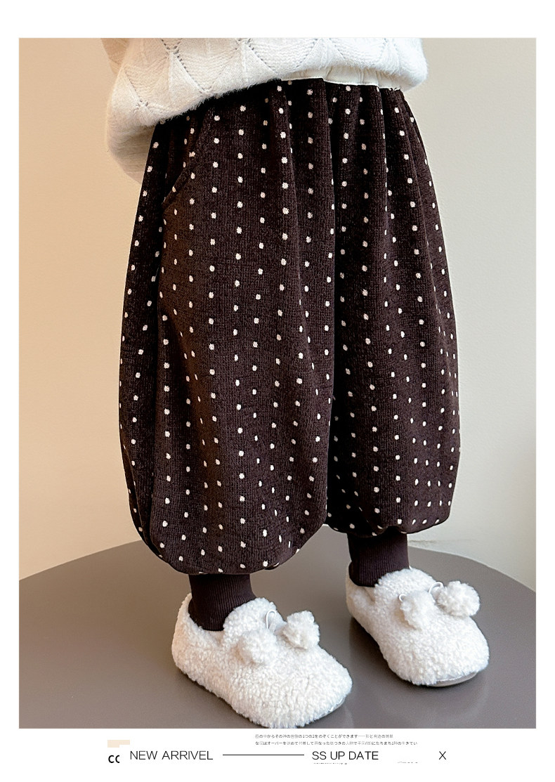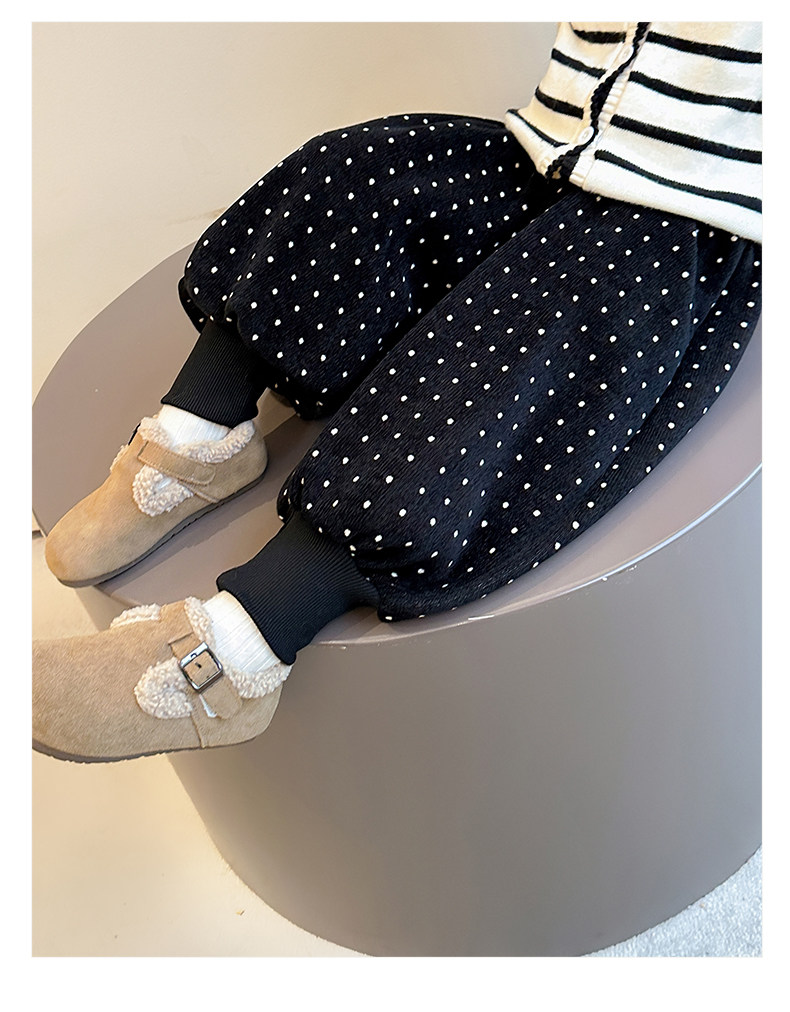 [One-Piece Fleece]Girls' Super Cute Fleece-Lined Pants 2025 Autumn and Winter New Stylish Thin Fleece Polka Dot Casual Sweatpants