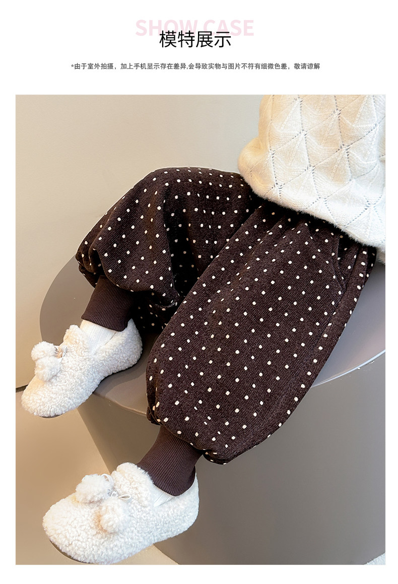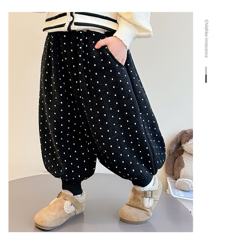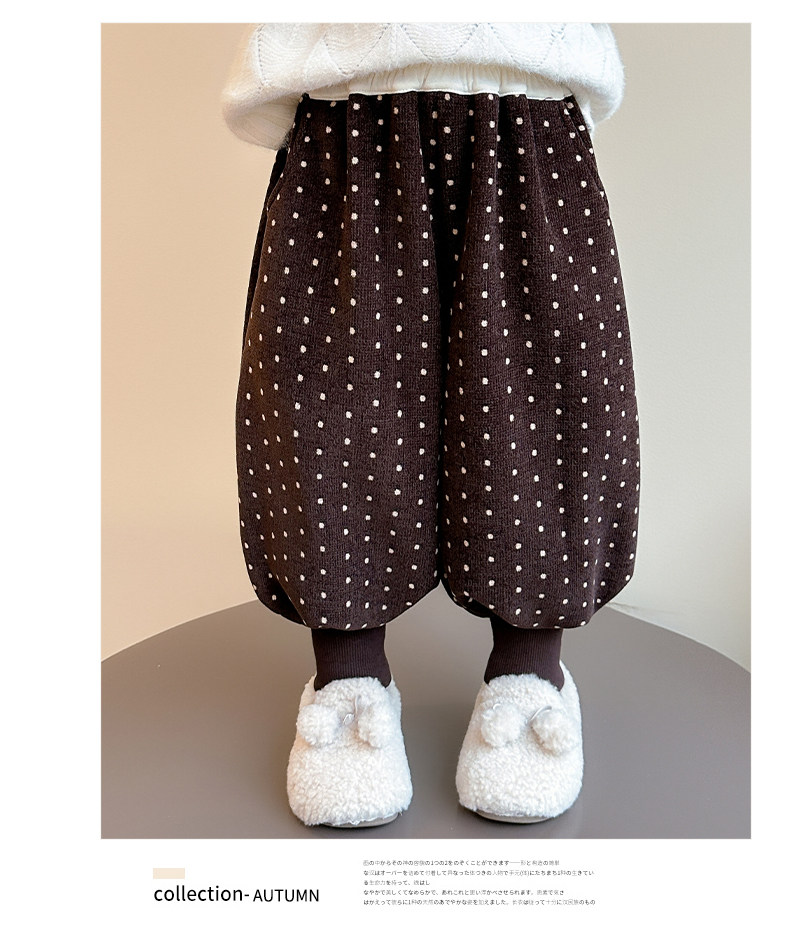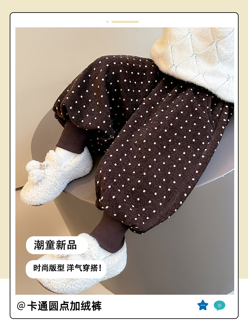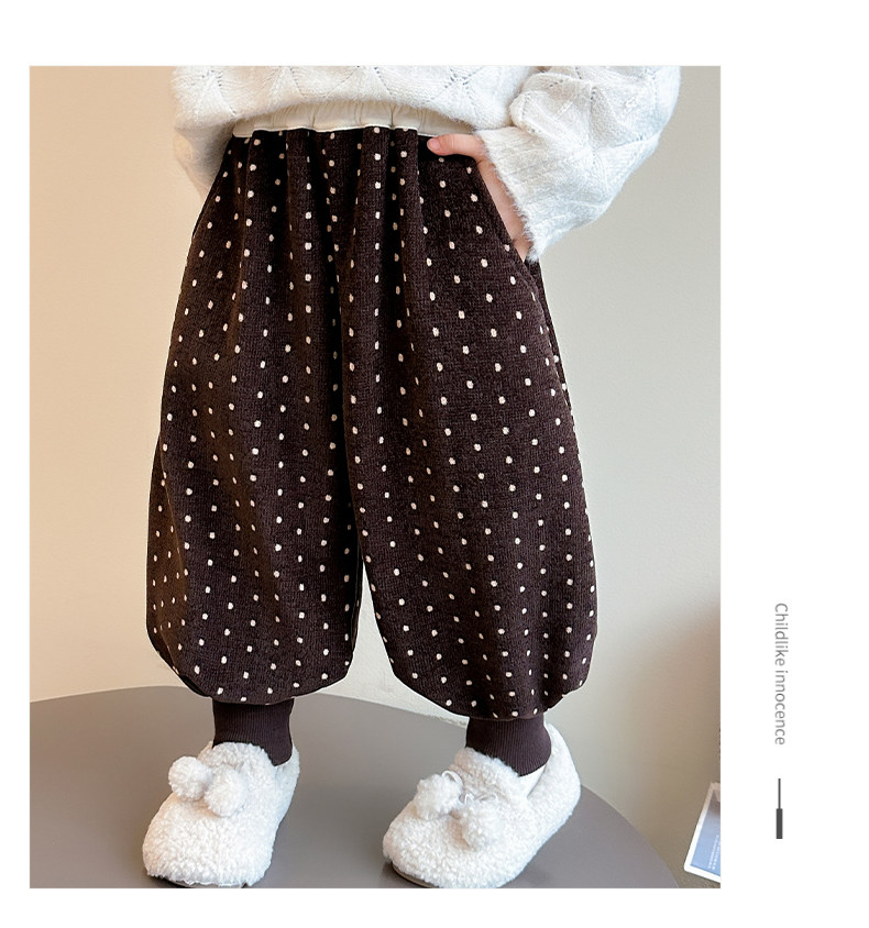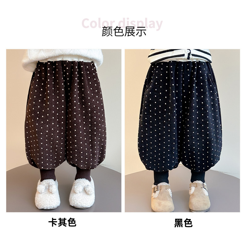 [One-Piece Fleece]Girls' Super Cute Fleece-Lined Pants 2025 Autumn and Winter New Stylish Thin Fleece Polka Dot Casual Sweatpants