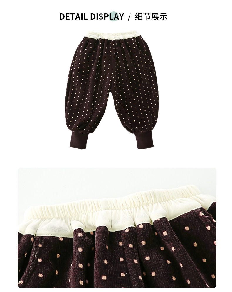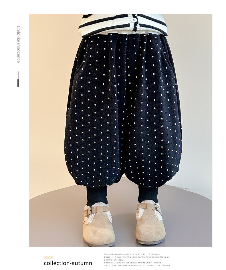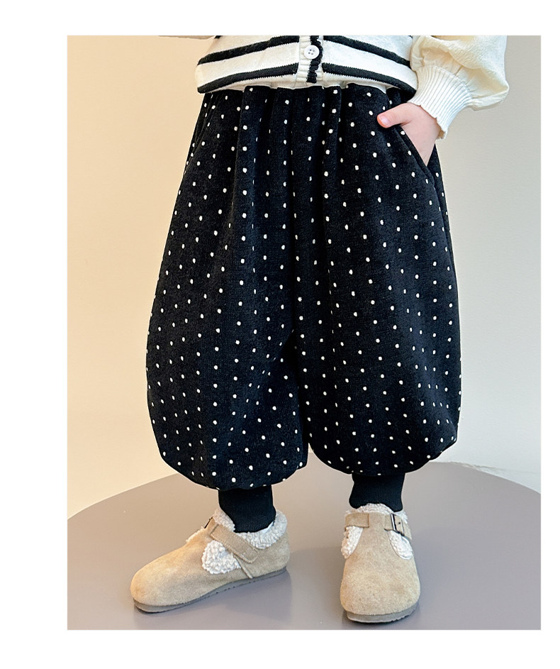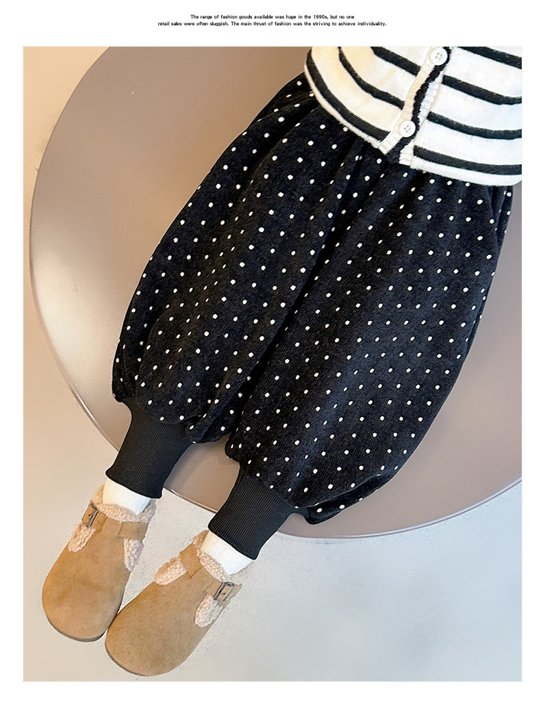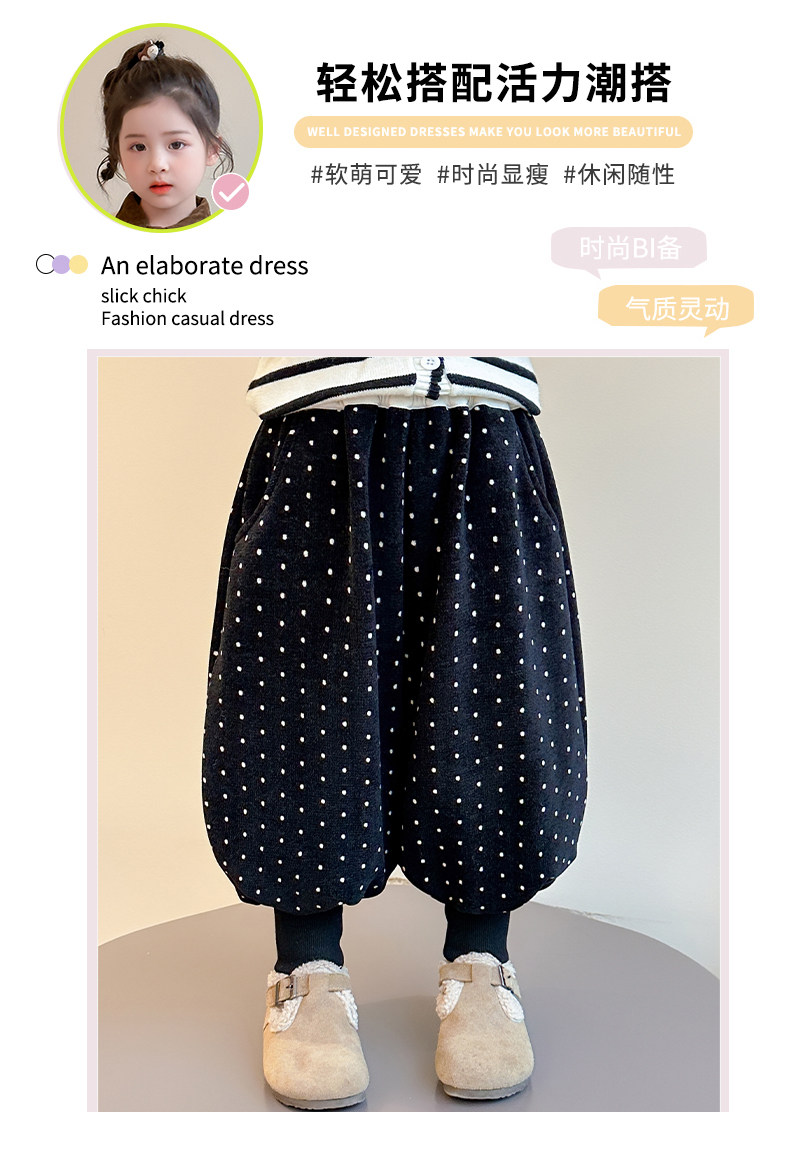 [One-Piece Fleece]Girls' Super Cute Fleece-Lined Pants 2025 Autumn and Winter New Stylish Thin Fleece Polka Dot Casual Sweatpants
