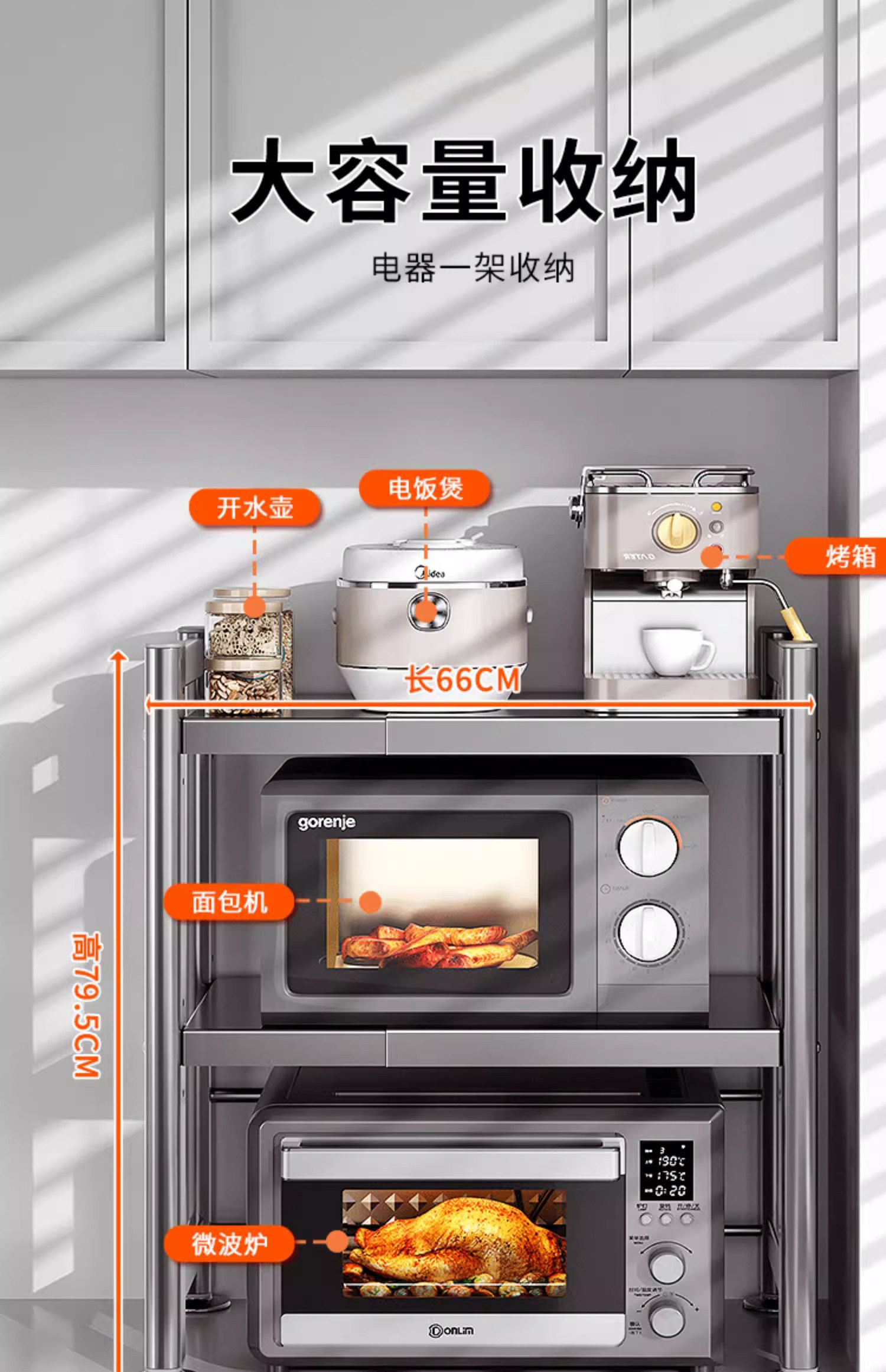 German microwave oven rack kitchen countertop multi-function rice cooker integrated telescopic bracket appliance oven storage