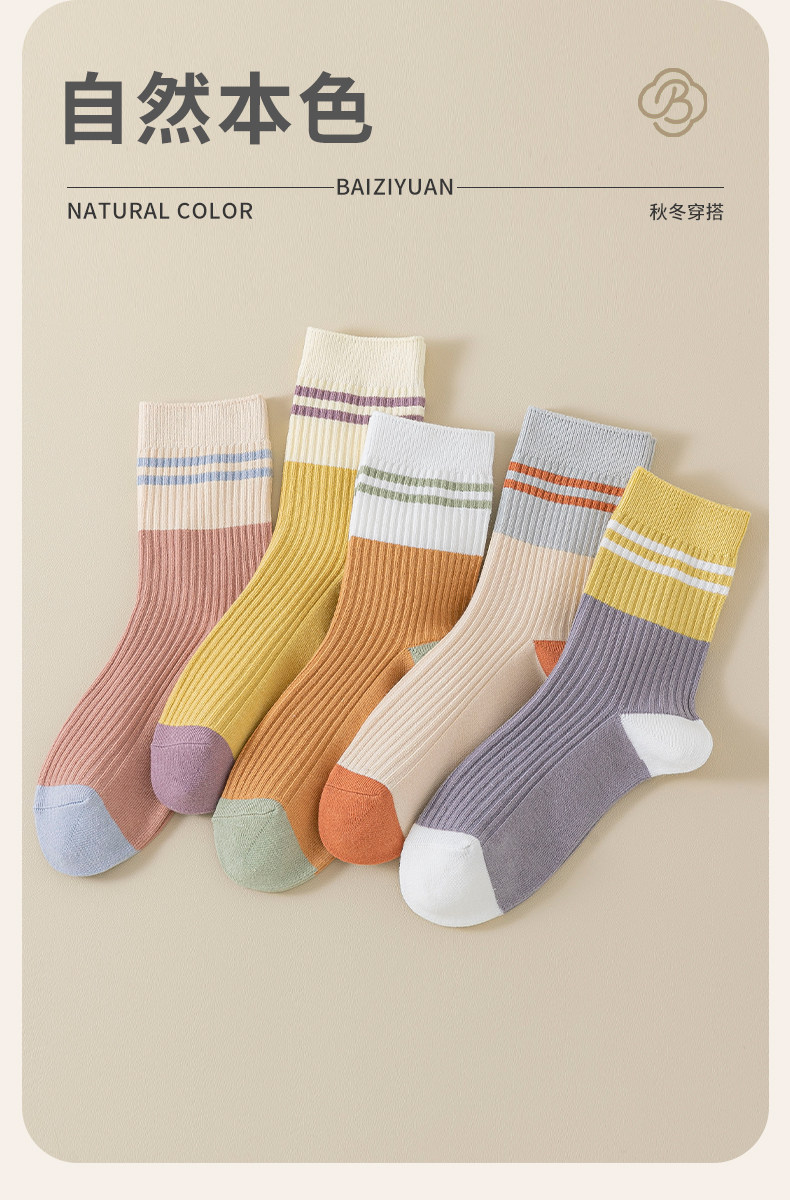 Women's Socks for Spring, Autumn, and Winter, Mid-Calf Socks, Pure Cotton, Odor-Resistant Maternity Socks, Women's Socks, Xinjiang Cotton, Men's Striped Sports Long Socks