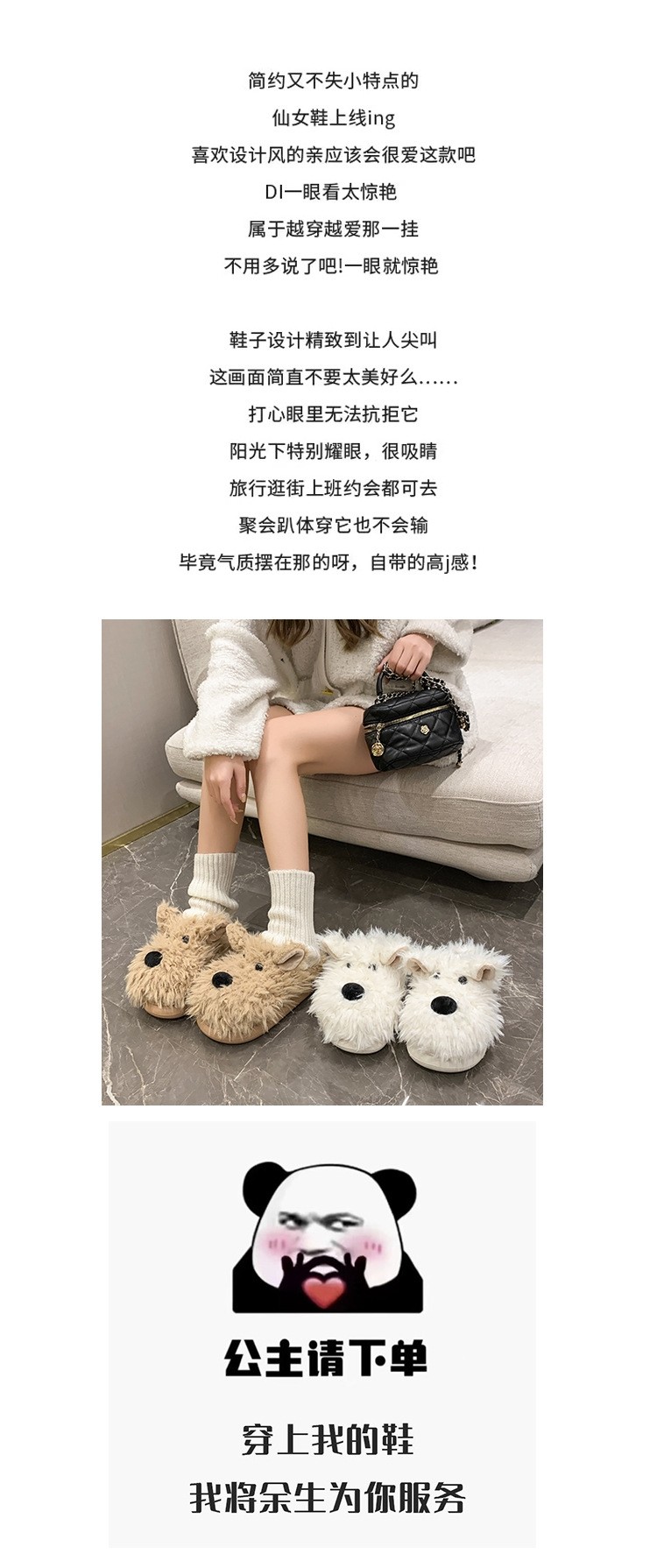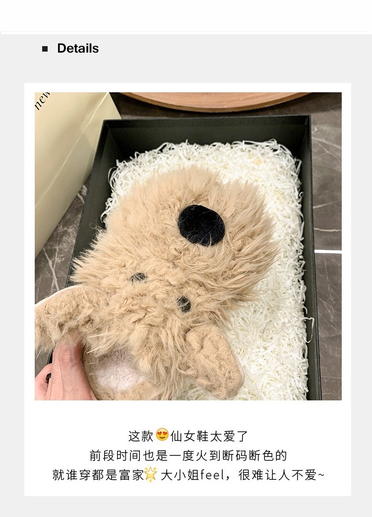 Cute Puppy-Style Fluffy Cotton Slippers, Winter 2025 New Indoor Home Non-Slip Long Plush Warm Temperature-Locking Low-Top