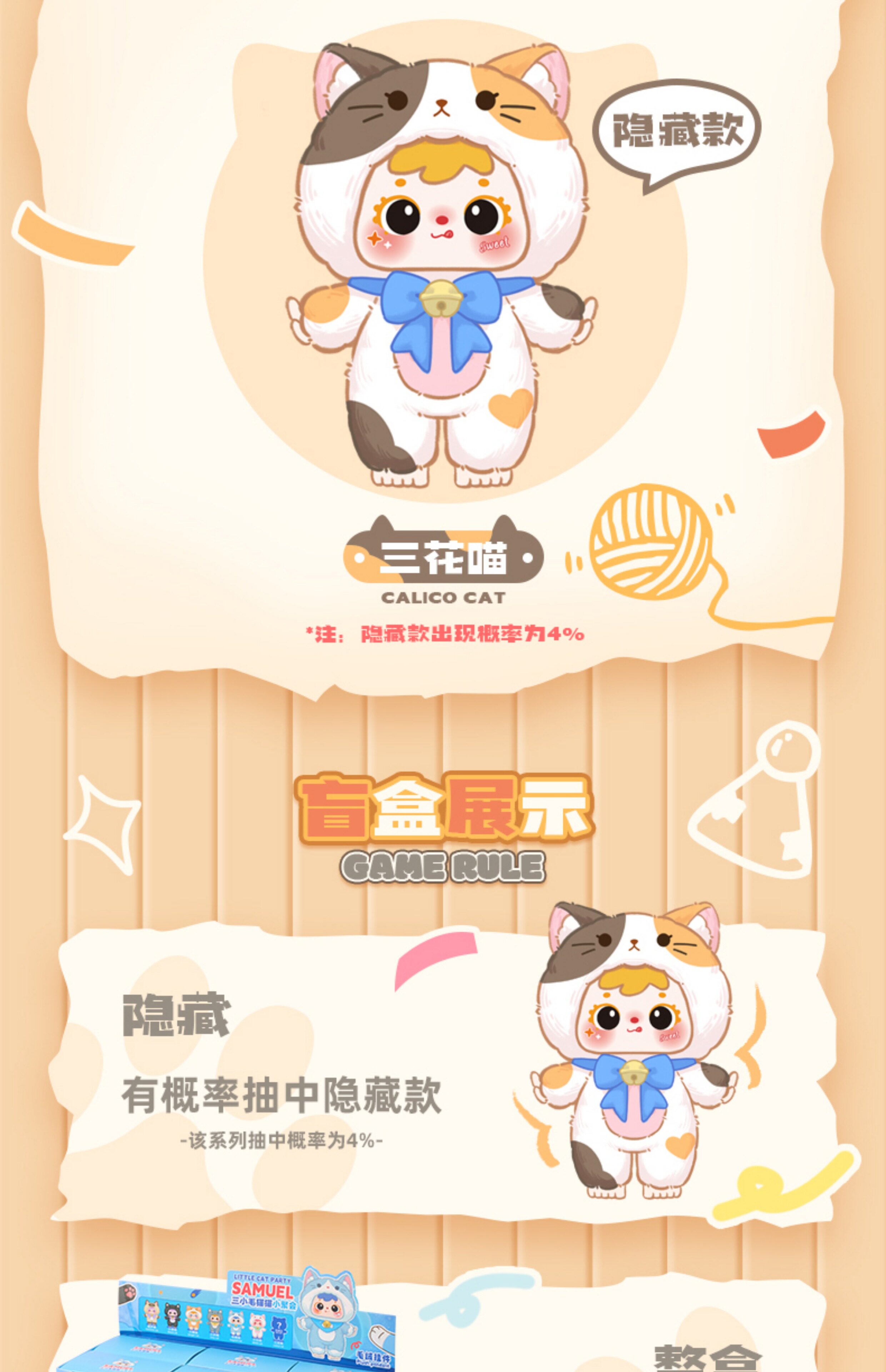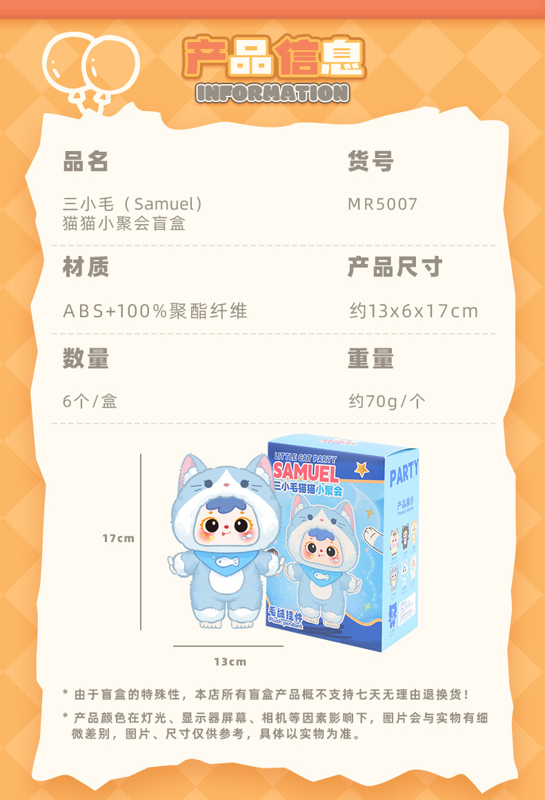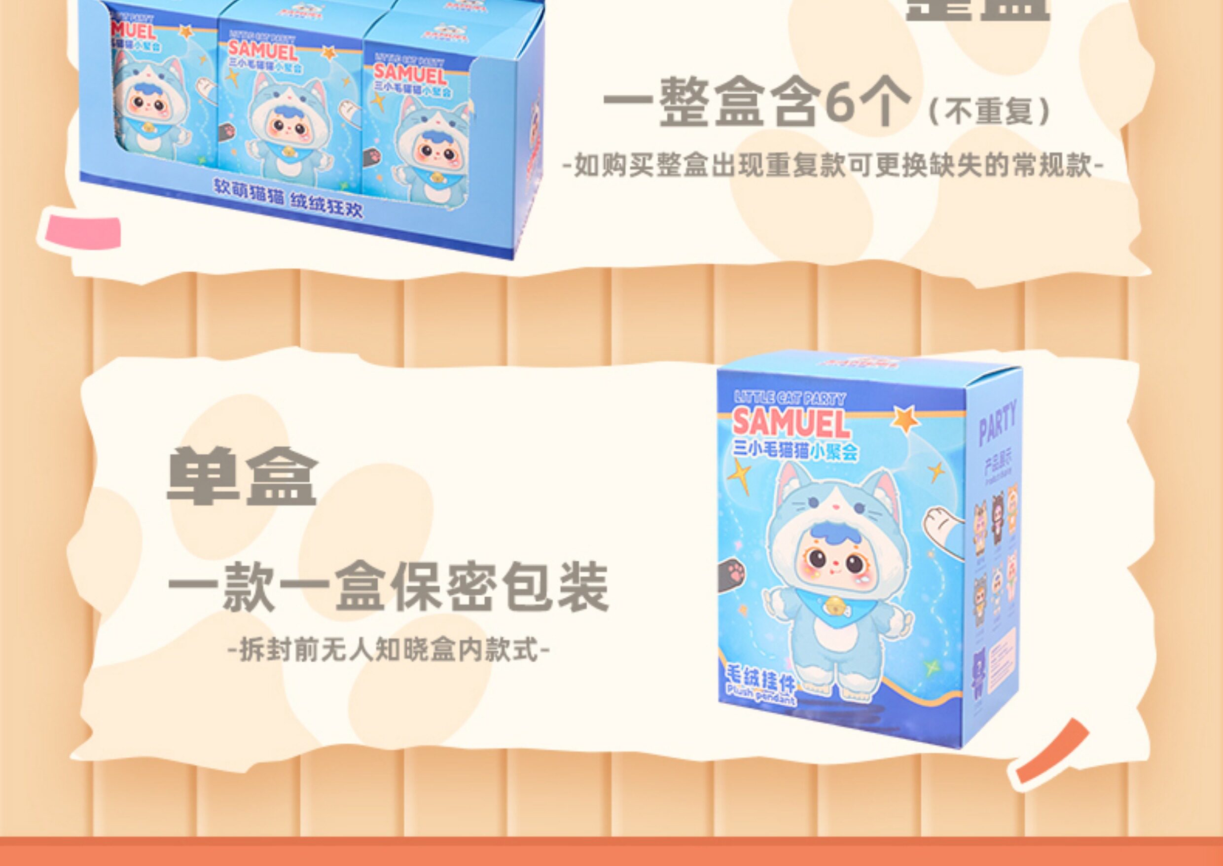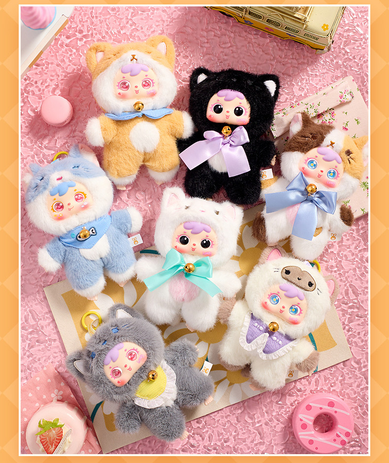Samuel Three Little Furry Cats Miniature Party Vinyl Plush Pendant Blind Box Girl's Gift Doll Figurine