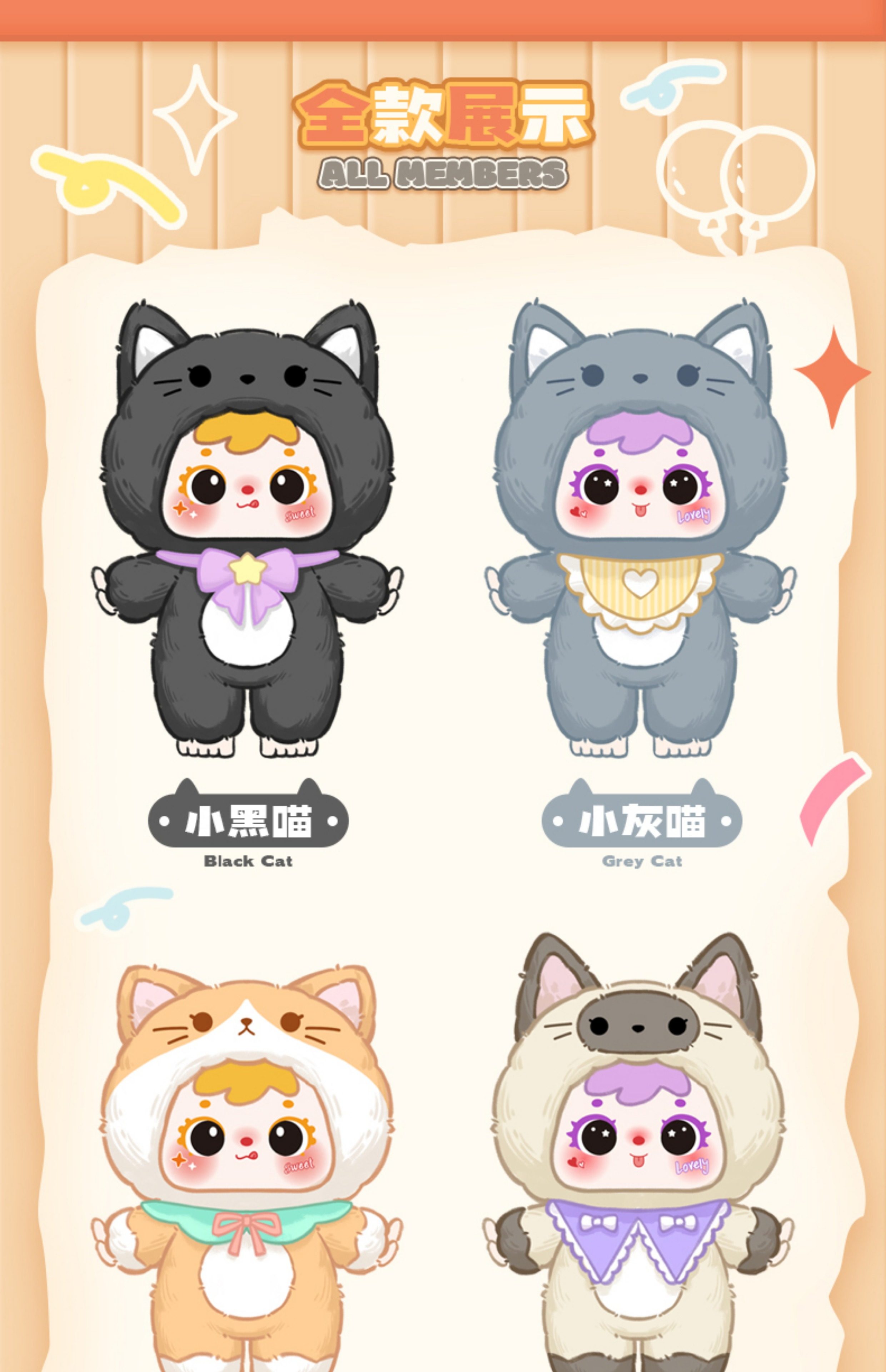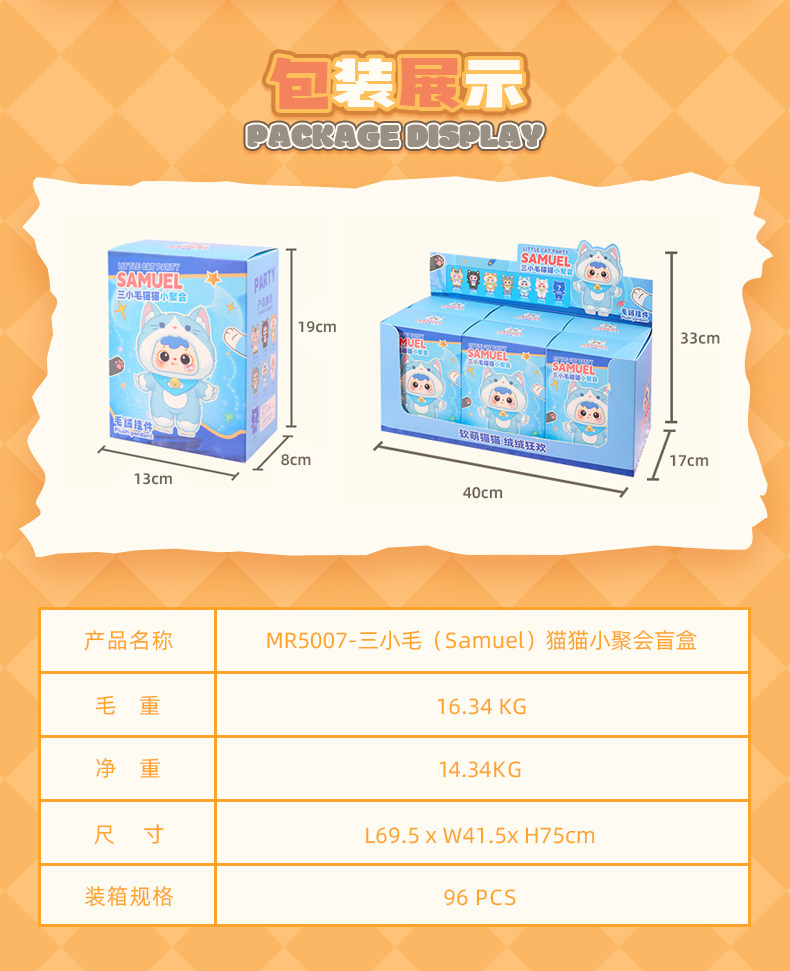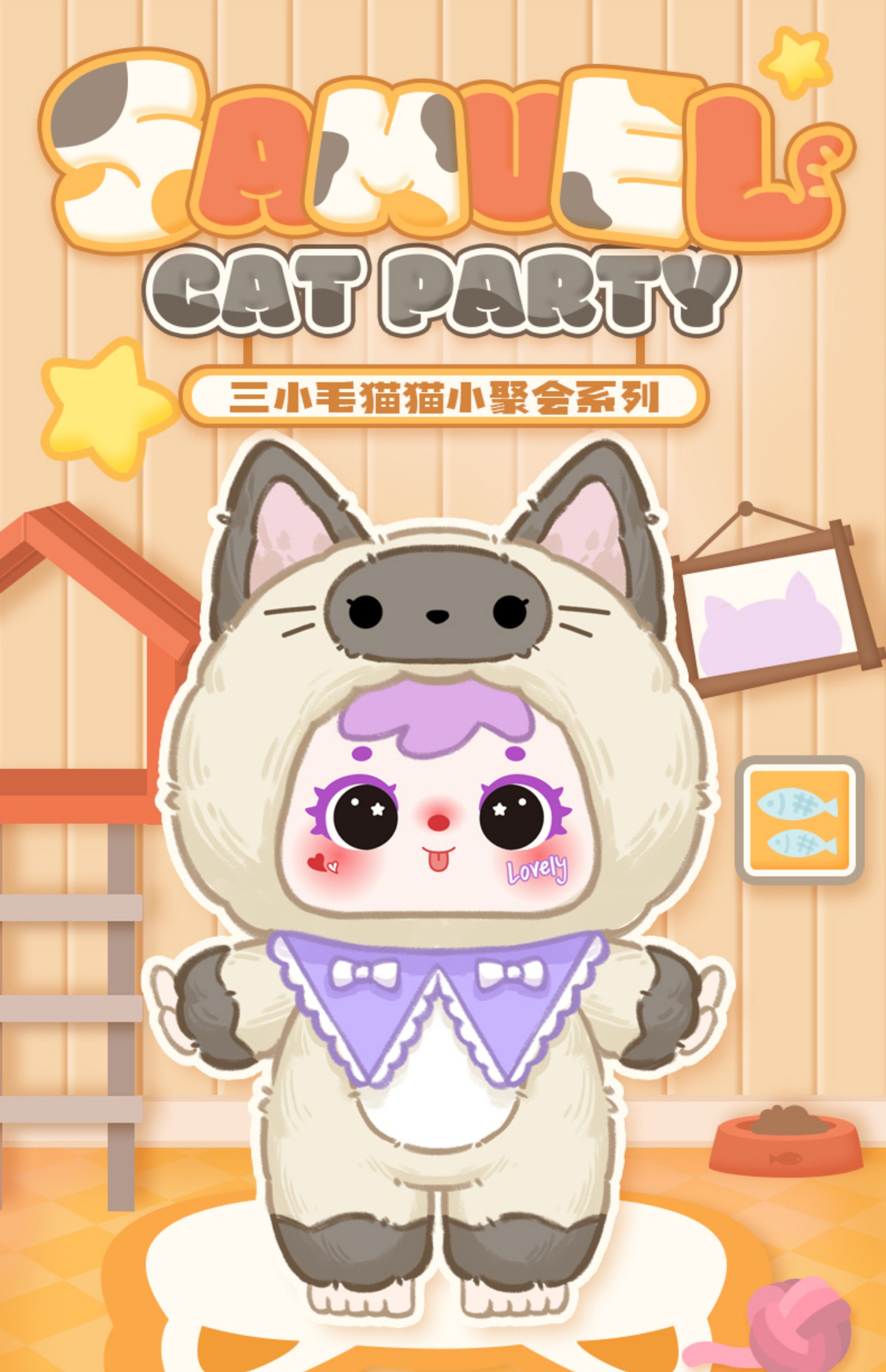 Samuel Three Little Furry Cats Miniature Party Vinyl Plush Pendant Blind Box Girl's Gift Doll Figurine
