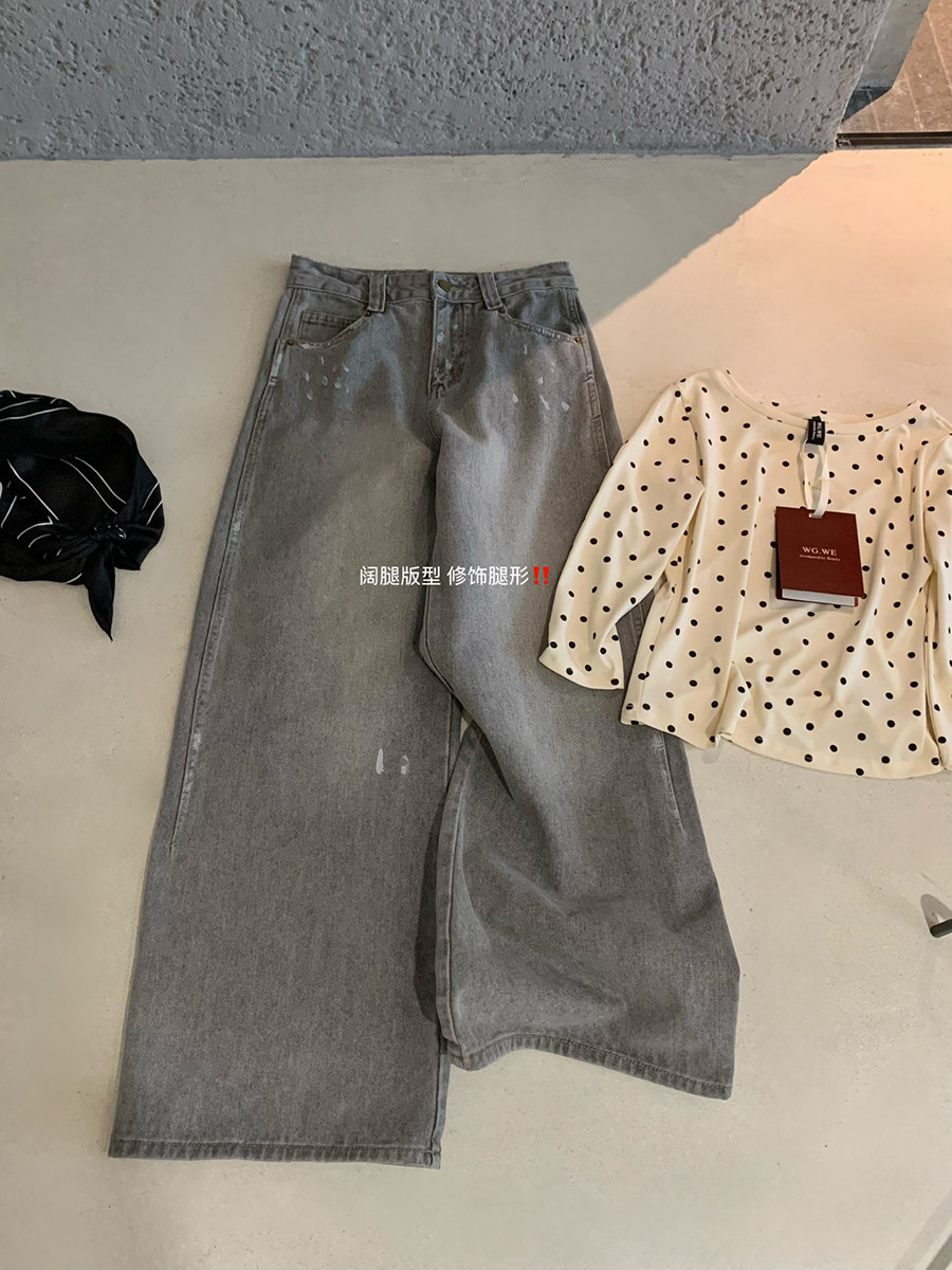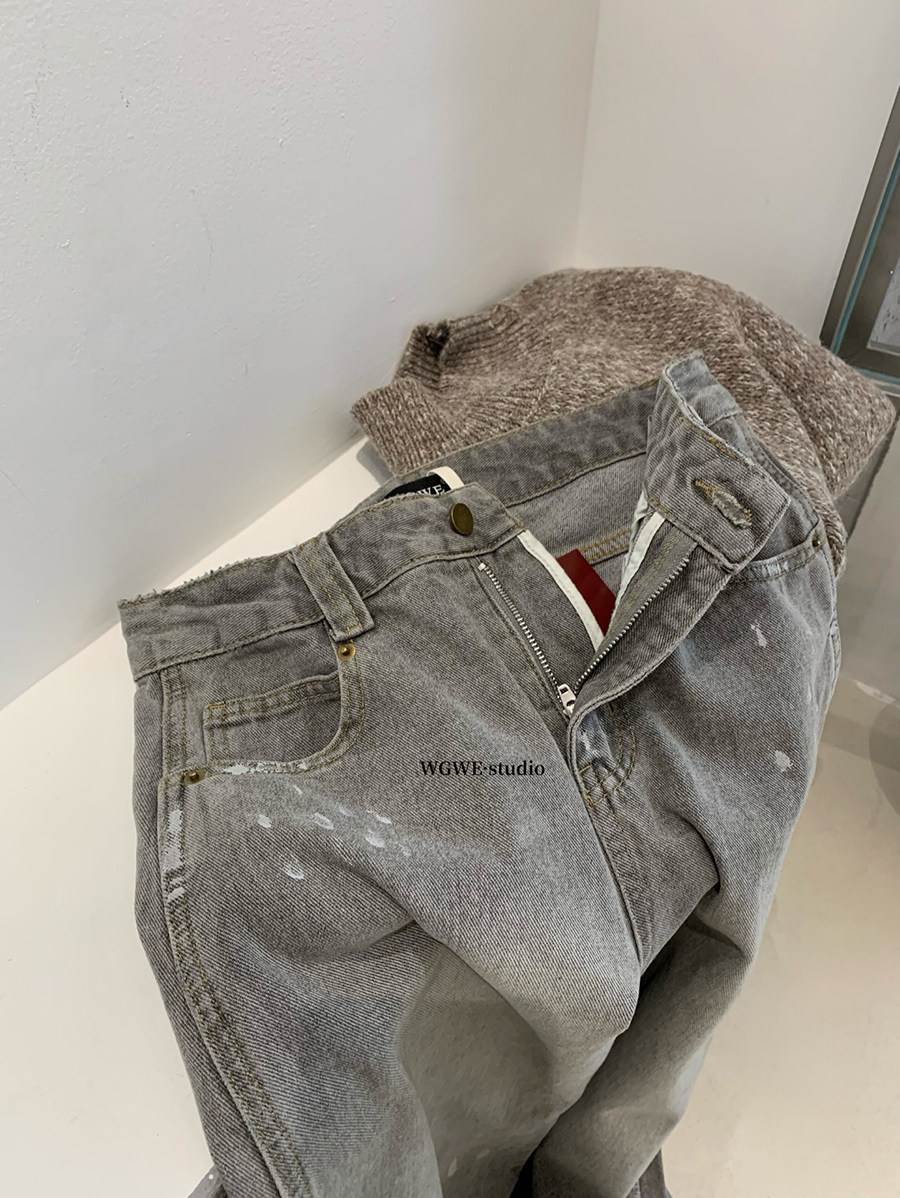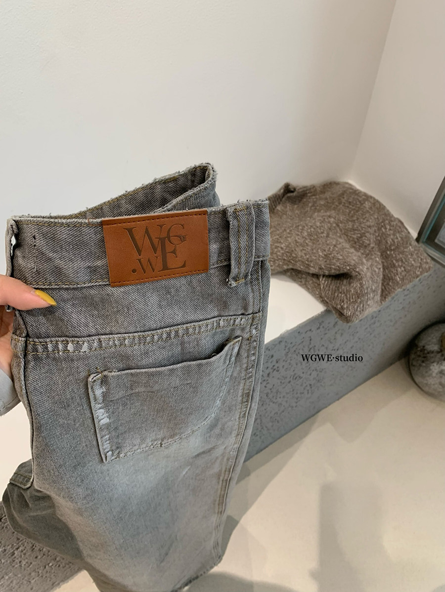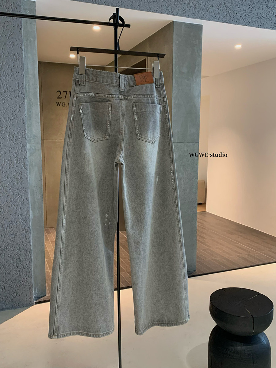 Lin Xi Xi Gray-Toned Distressed Vintage Dirty Wash Wide-Leg Jeans