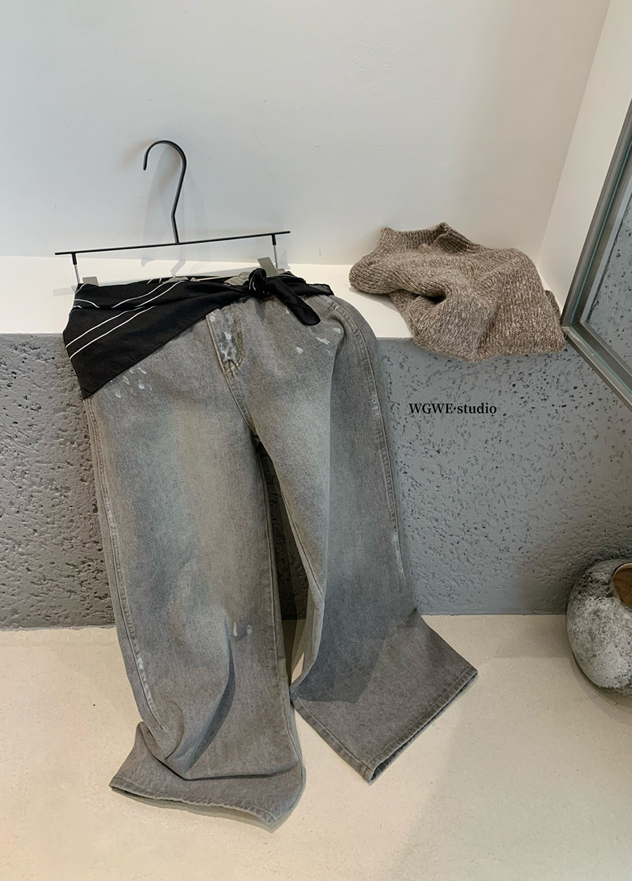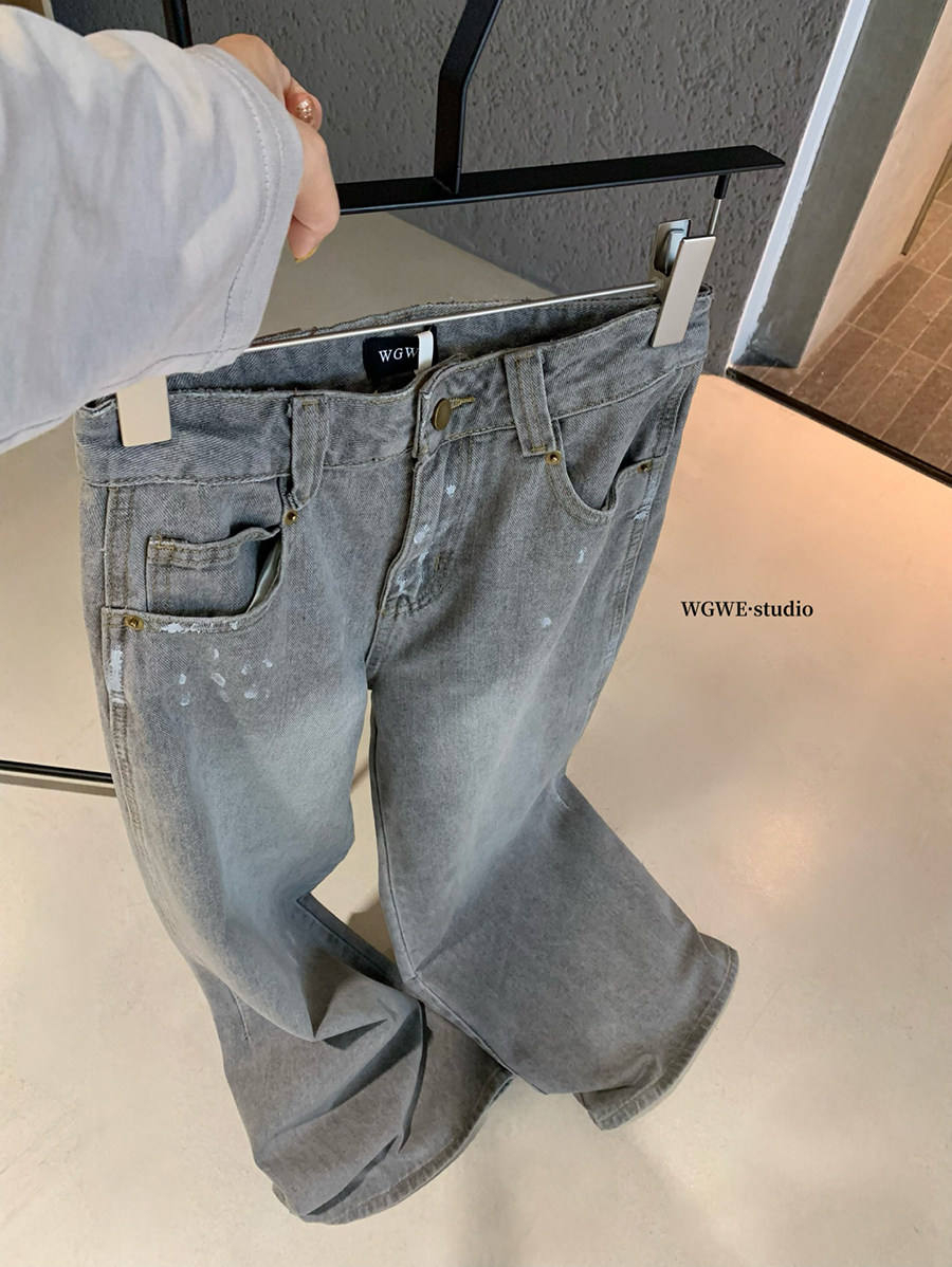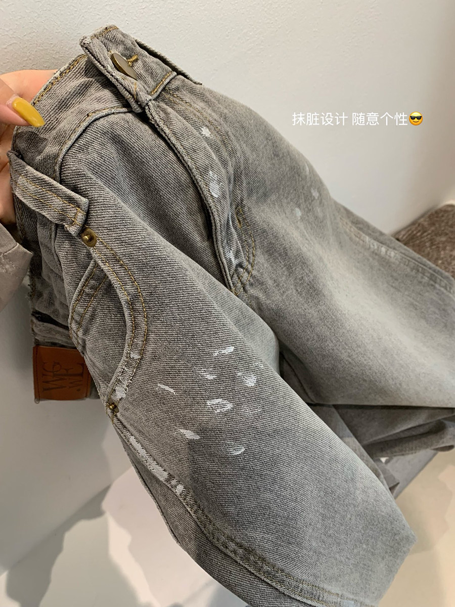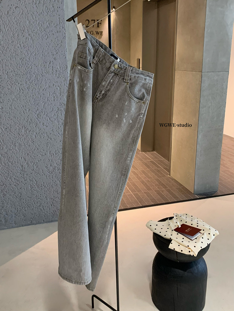 Lin Xi Xi Gray-Toned Distressed Vintage Dirty Wash Wide-Leg Jeans