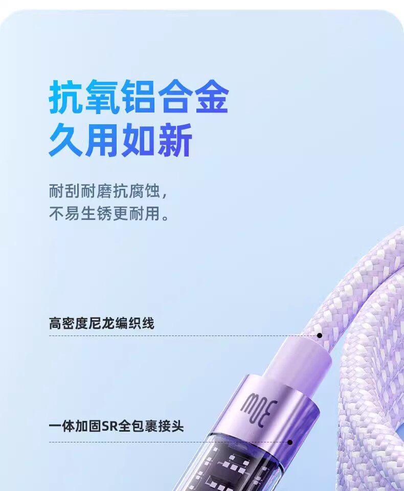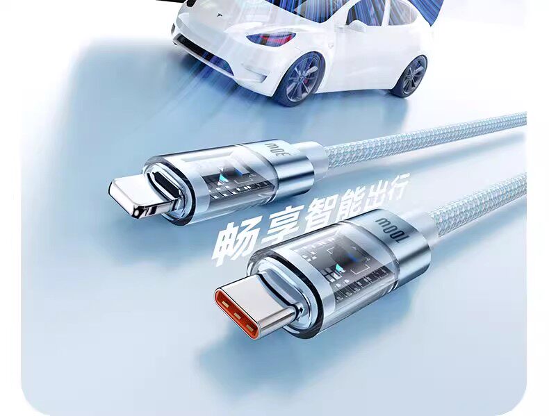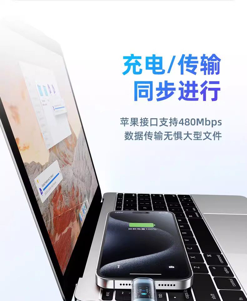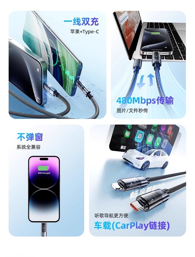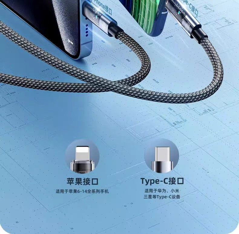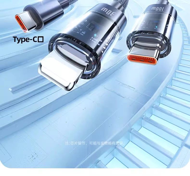 Suitable for Apple 16 Huawei vivo iPhone 15 transparent typec and Apple C port Typec data cable two-in-one double-ended pd30w charging cable tpyec super one-to-two 100W fast charging