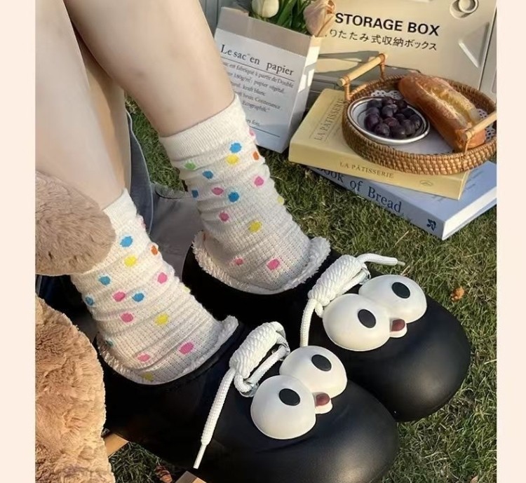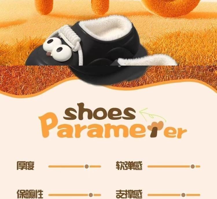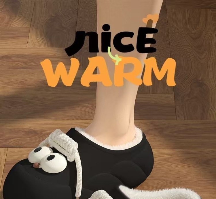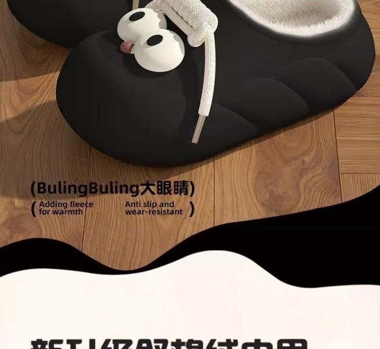 Cotton Slippers for Women, Slip-On Style, Outdoor Use, Fleece-Lined, Anti-Freeze, Waterproof, Cute Big-Eyed Cotton Slippers for Women