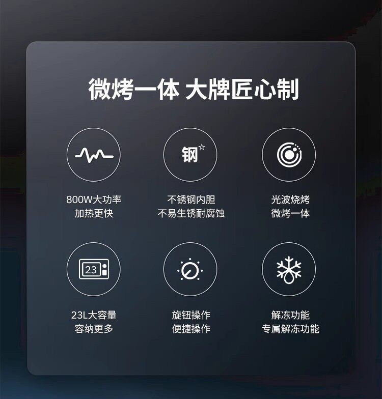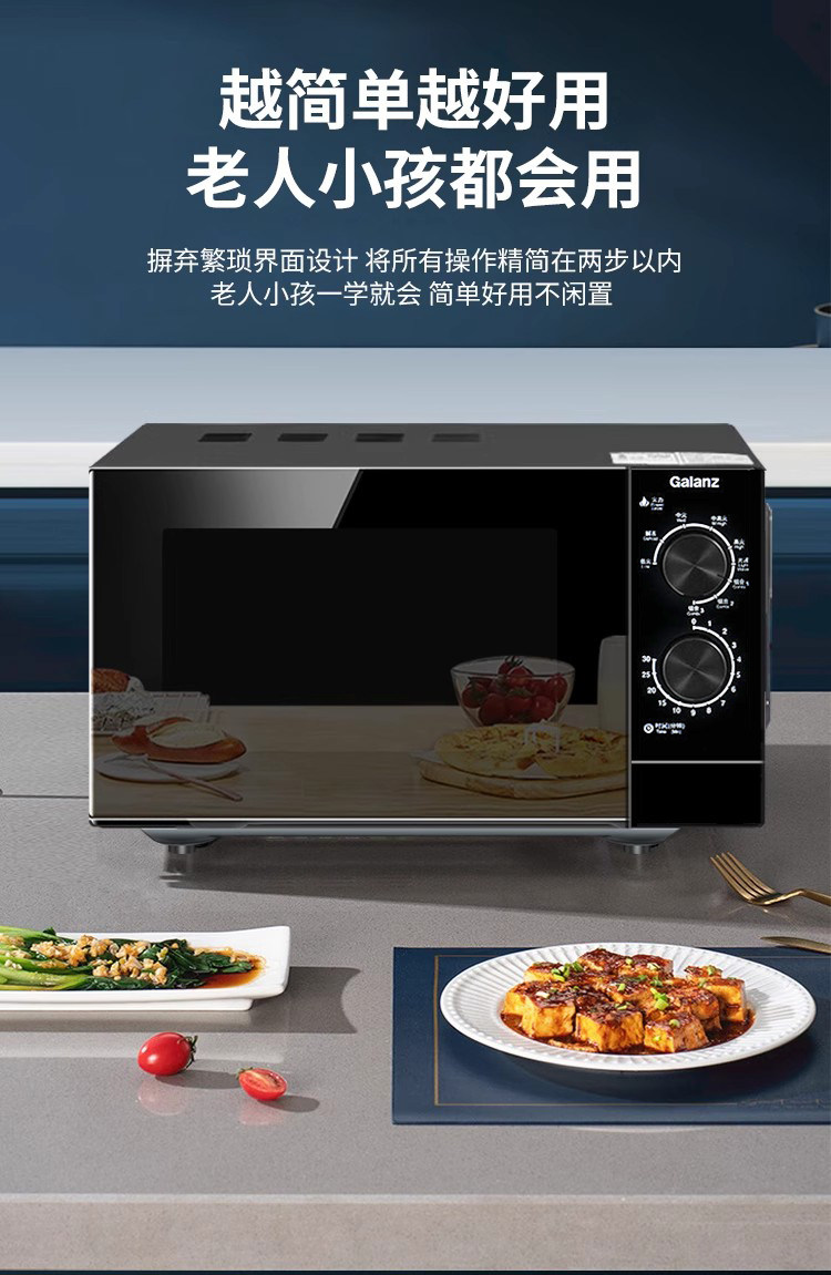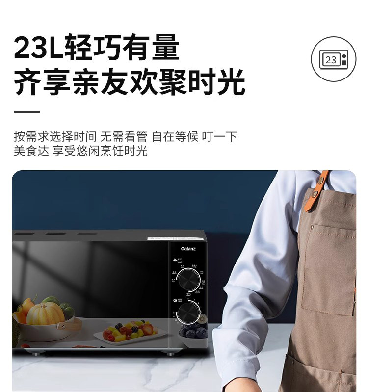 Galanz Microwave Oven for Home Use, 23-Liter Flat-Panel Stainless Steel Inner Tank Electric Oven, Lightwave Oven, Micro-Steaming and Baking All-In-One Machine