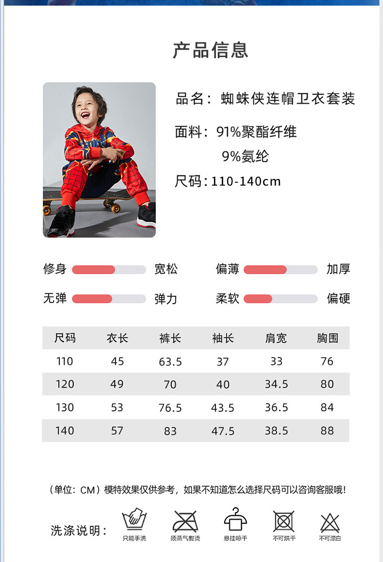 Marvel Genuine Spider-Man Suit for Boys, Early Autumn Outfit, Children's Disney Cosplay Performance Hoodie
