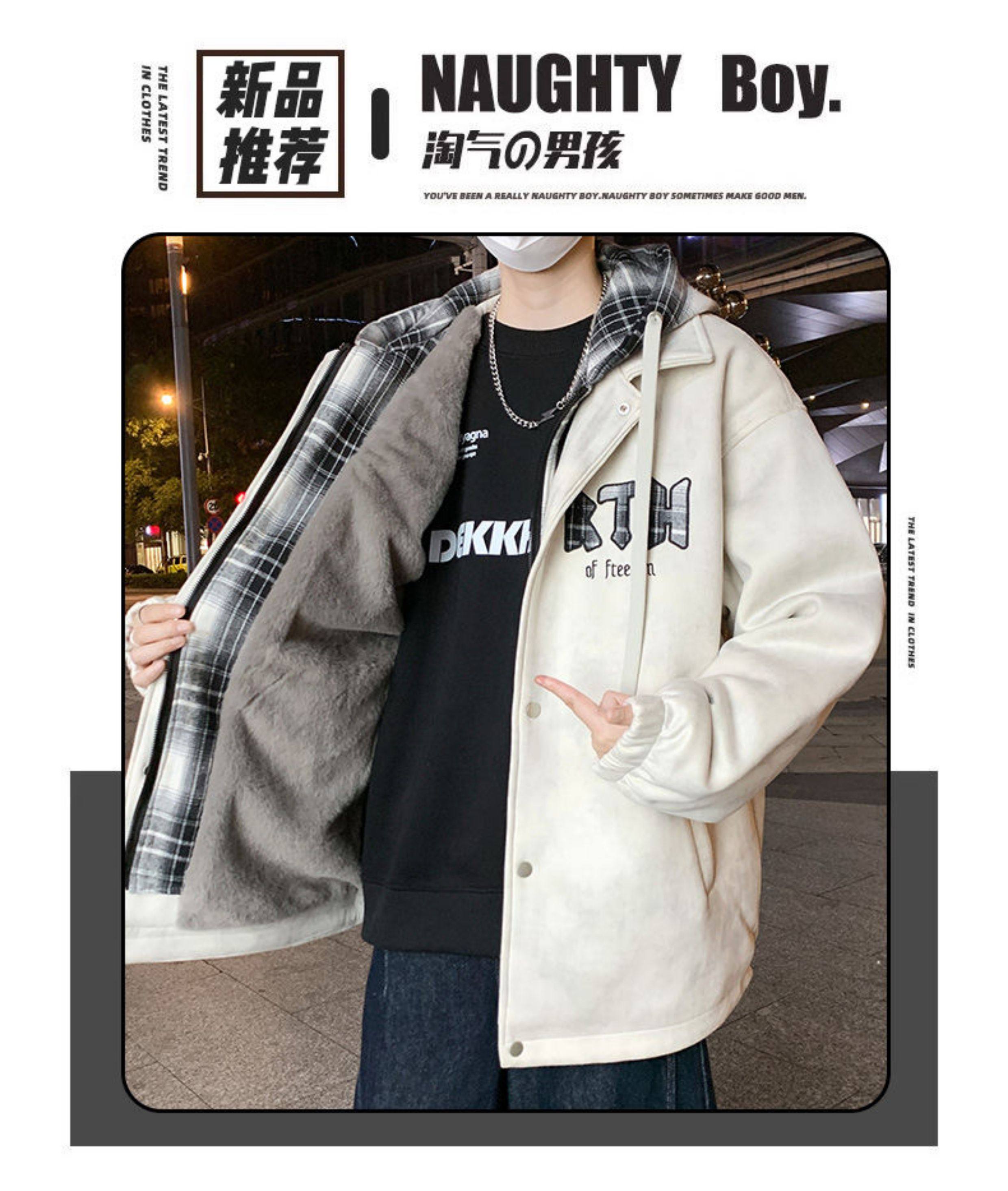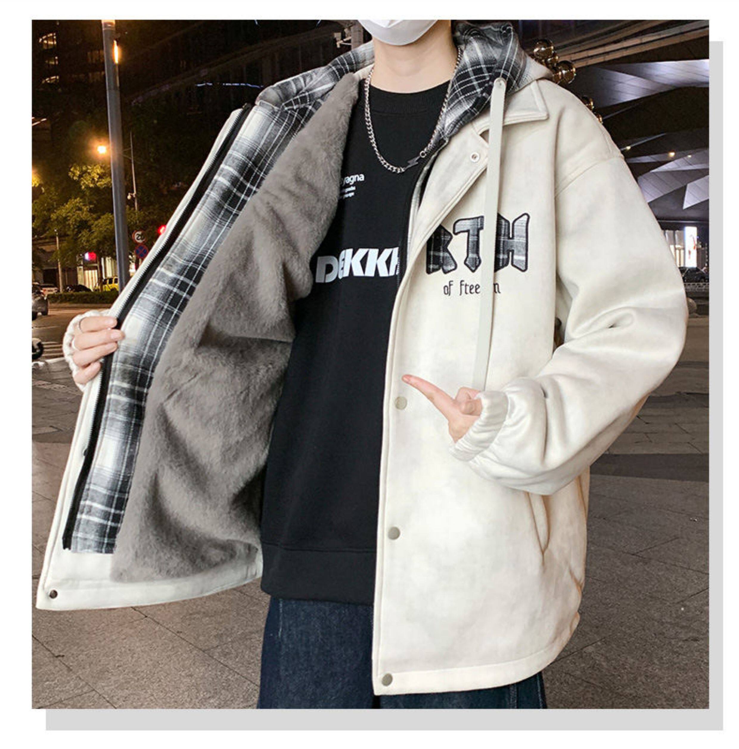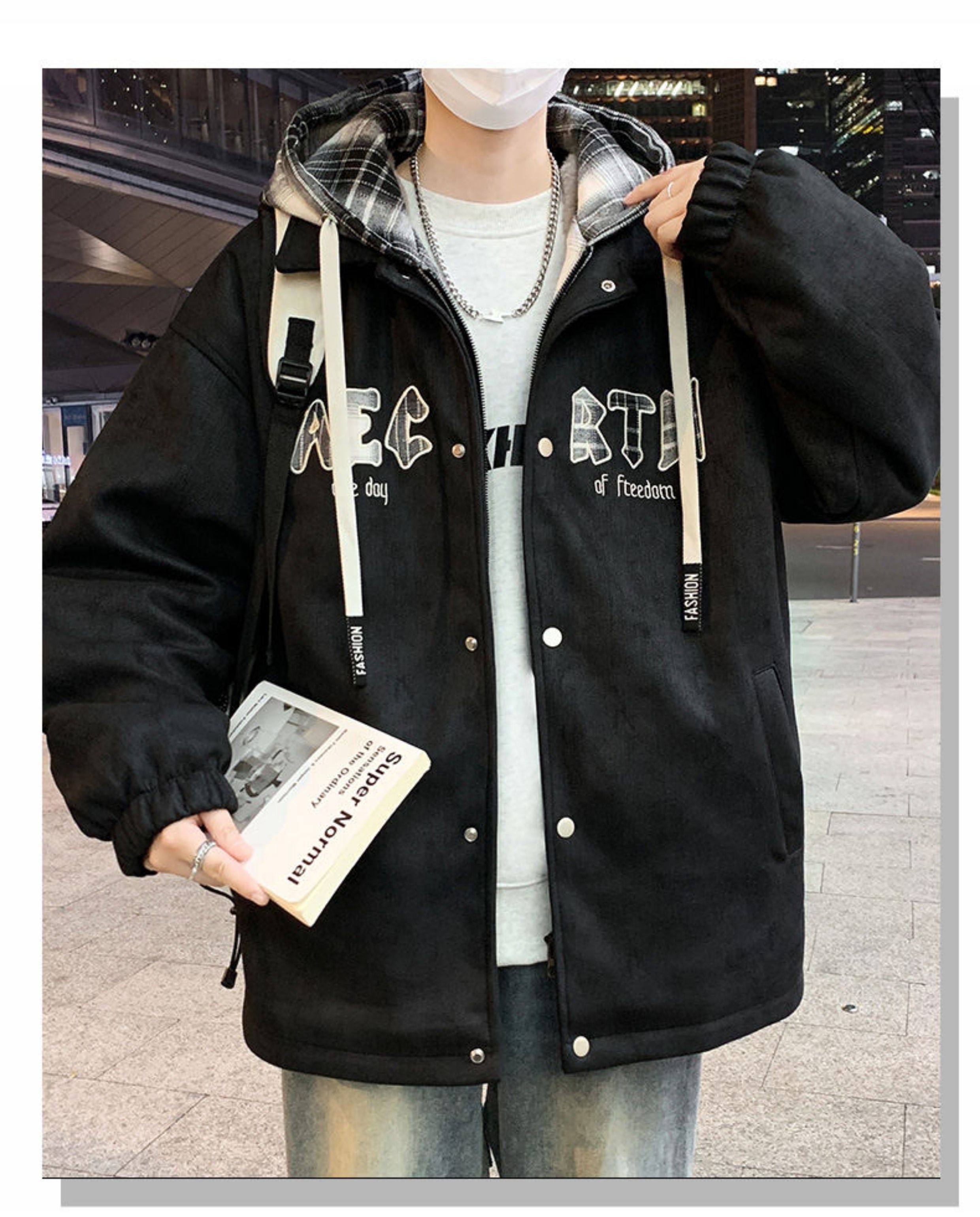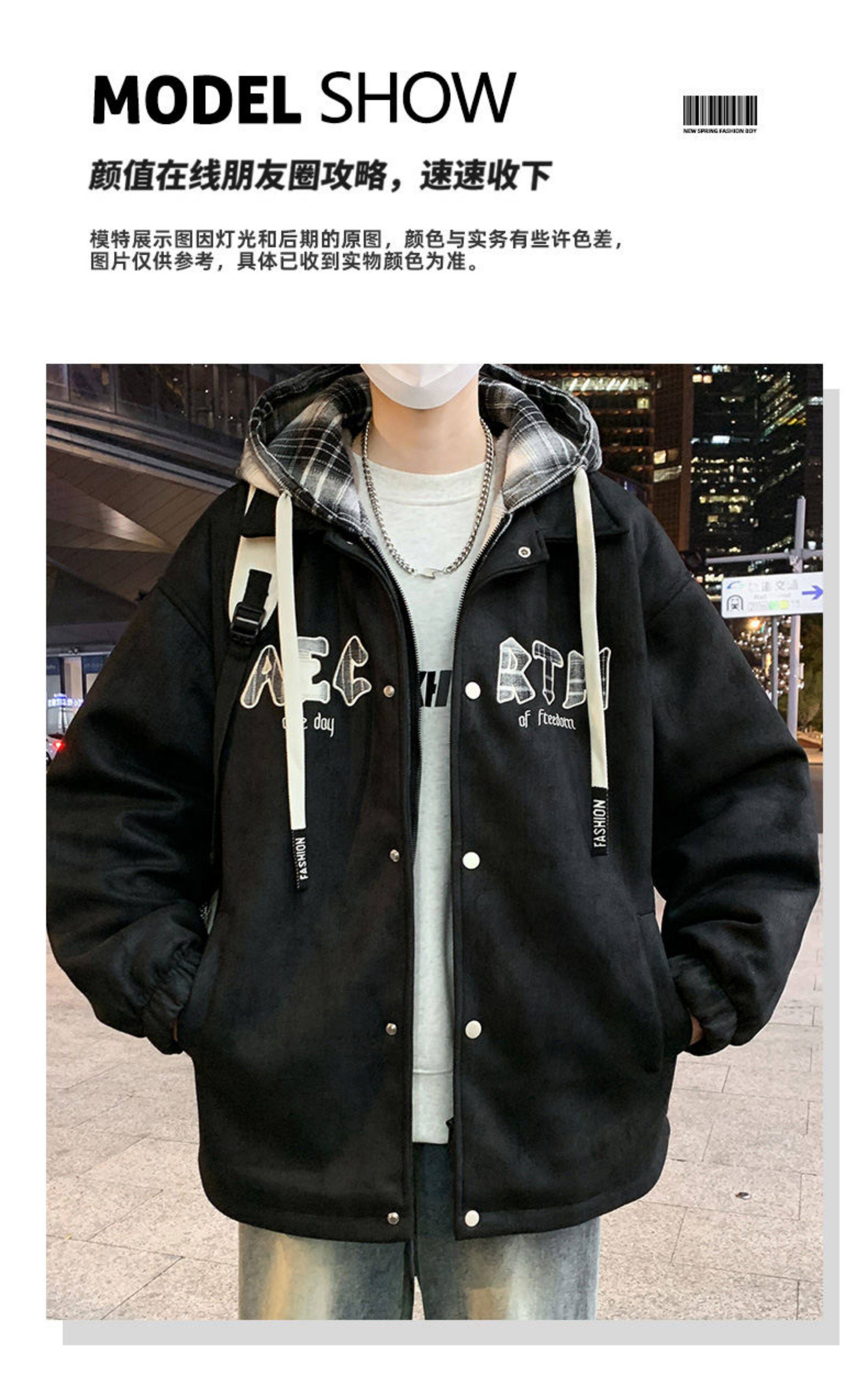 2025 winter hooded Hong Kong style velvet thickened jacket for male teenagers and students warm parka coat