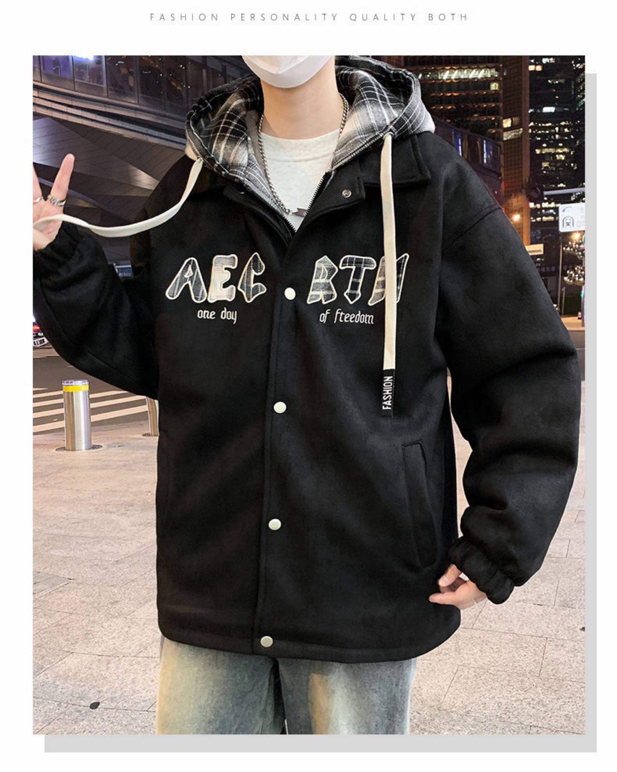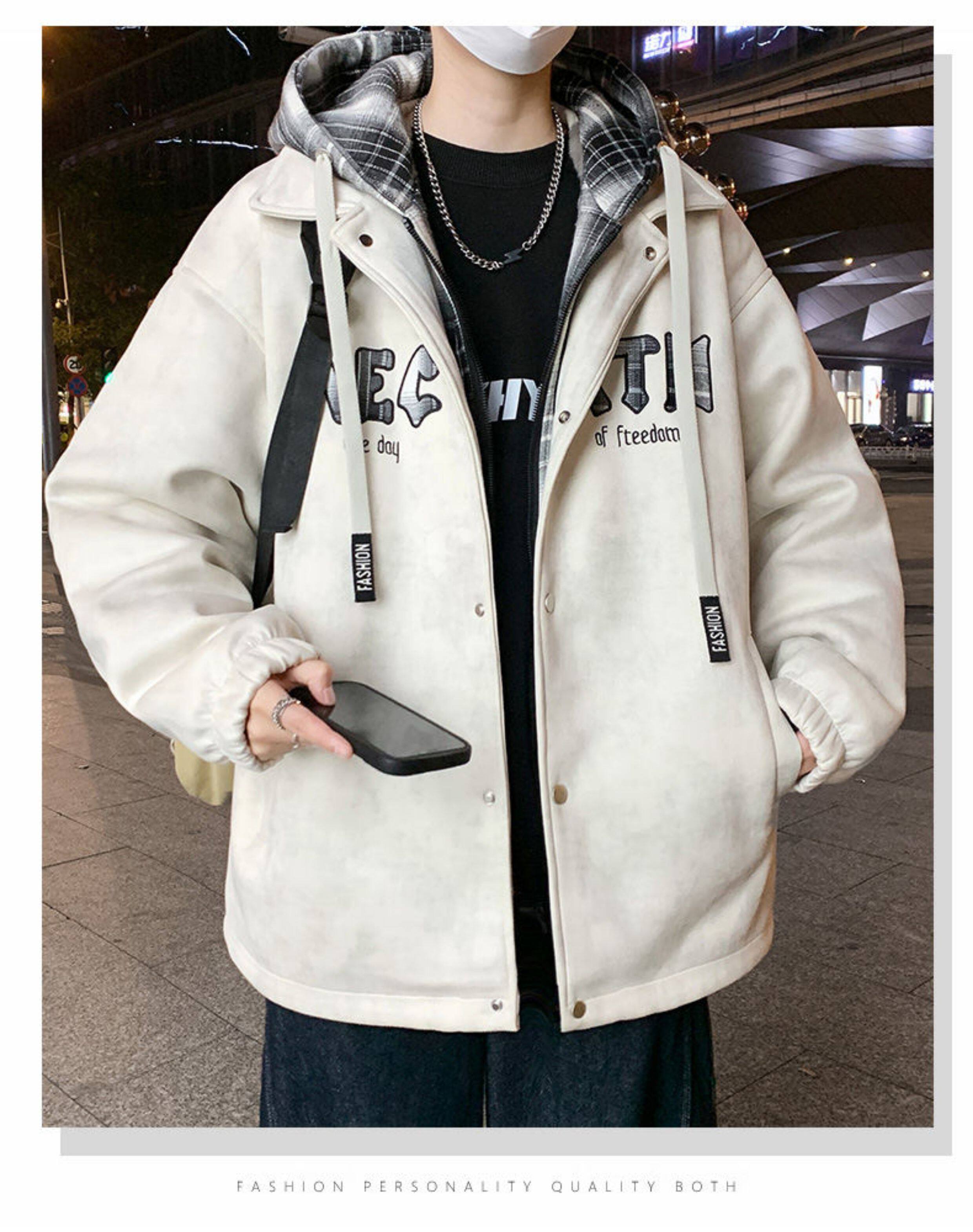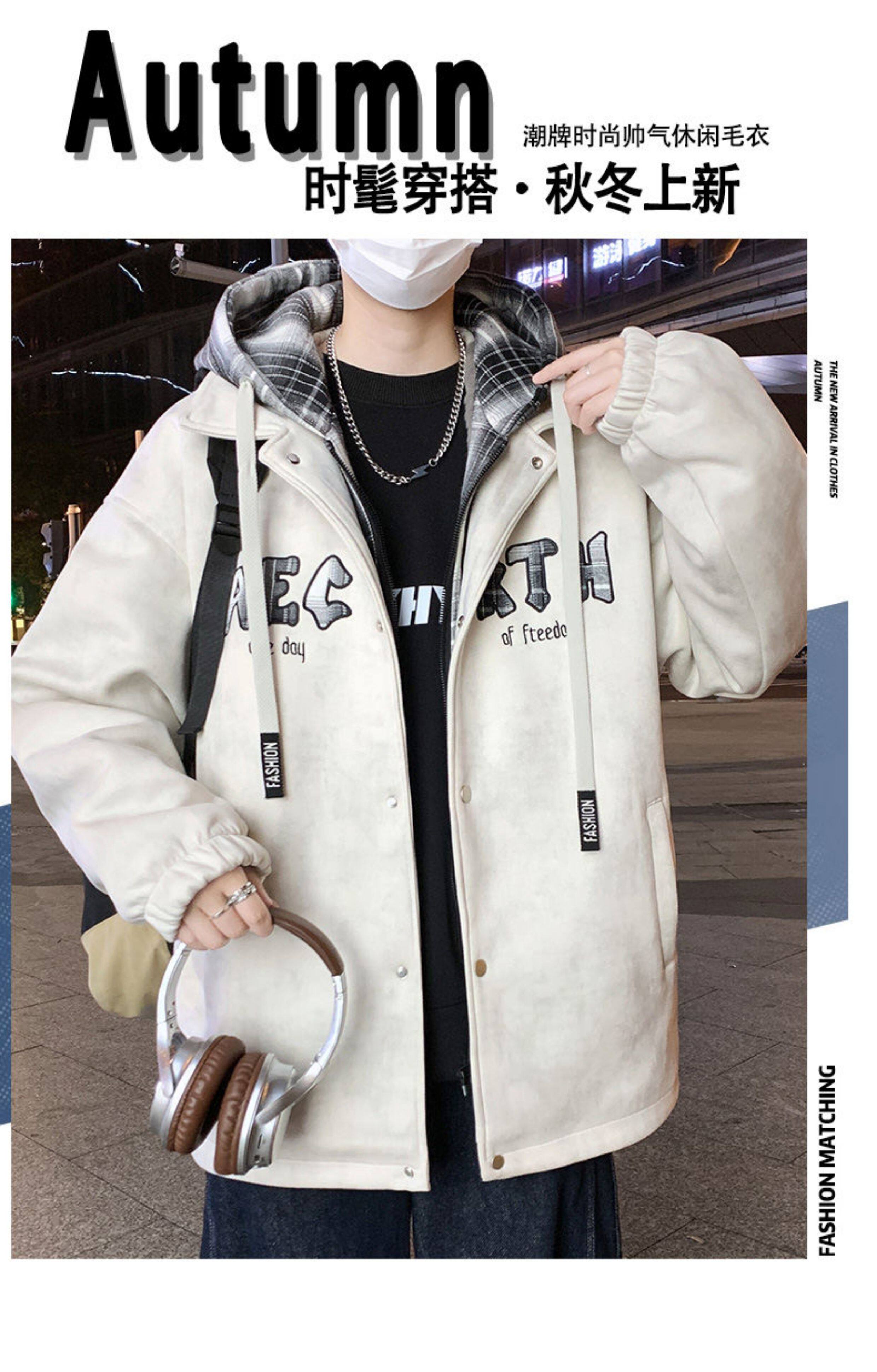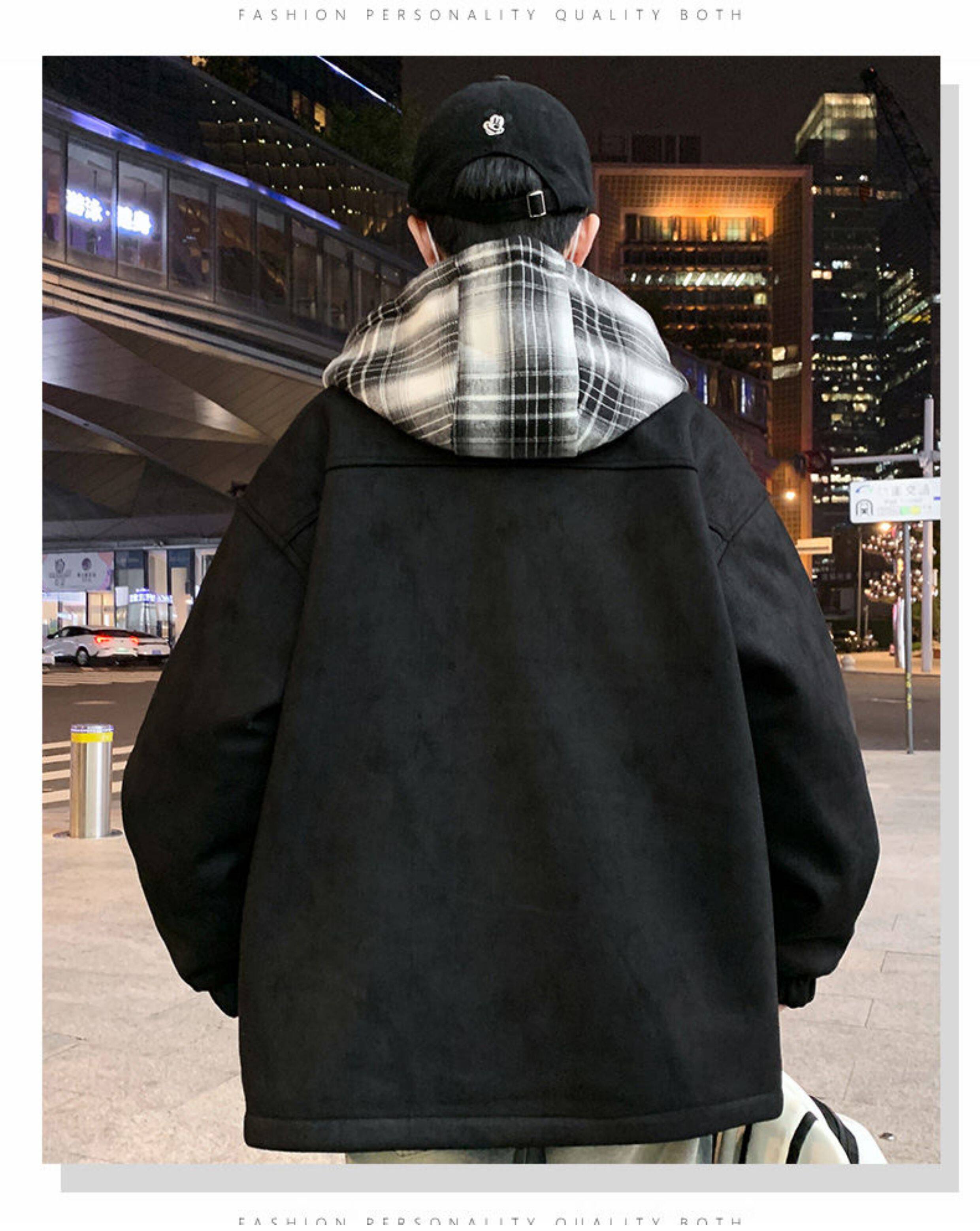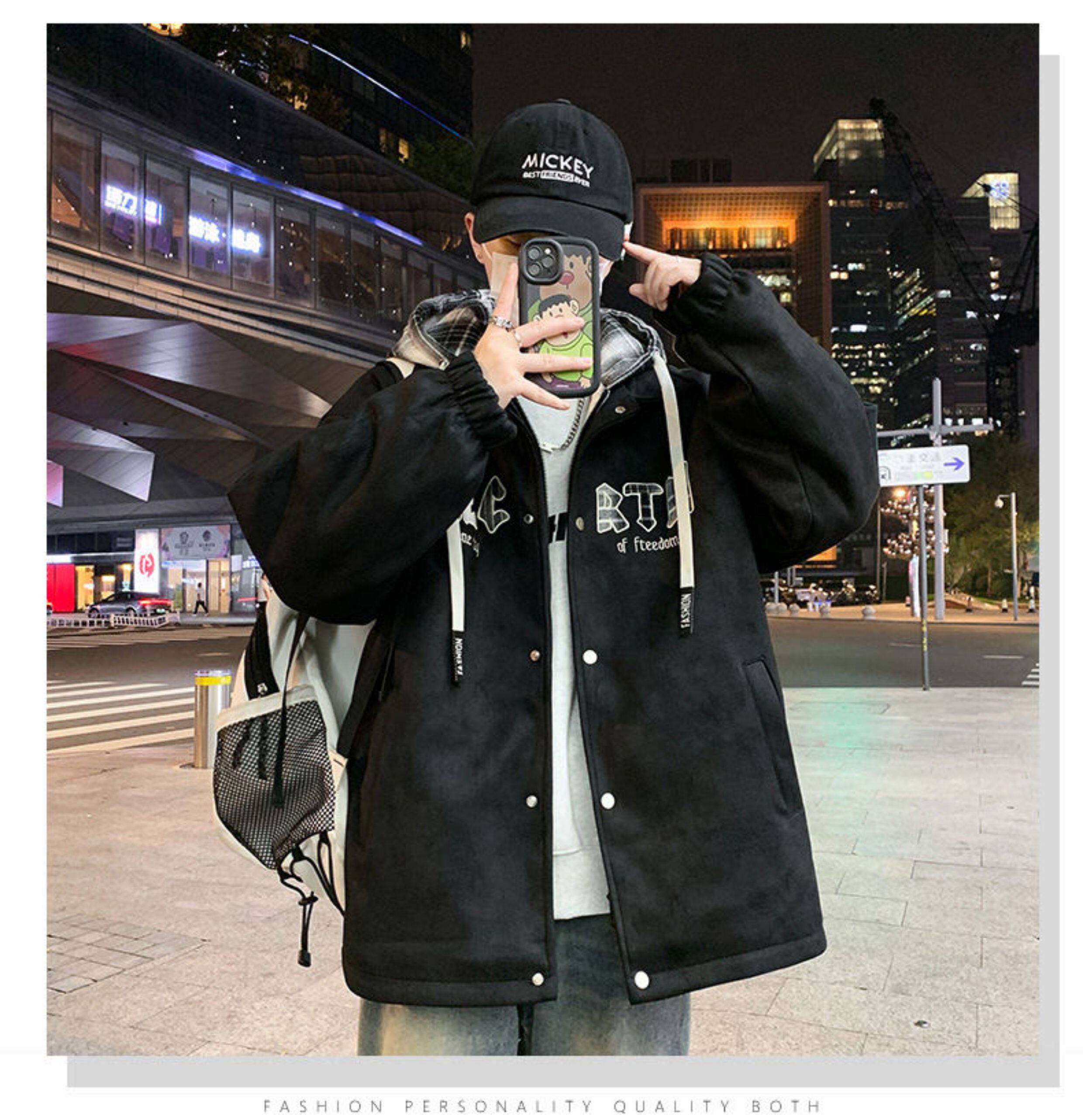 2025 winter hooded Hong Kong style velvet thickened jacket for male teenagers and students warm parka coat