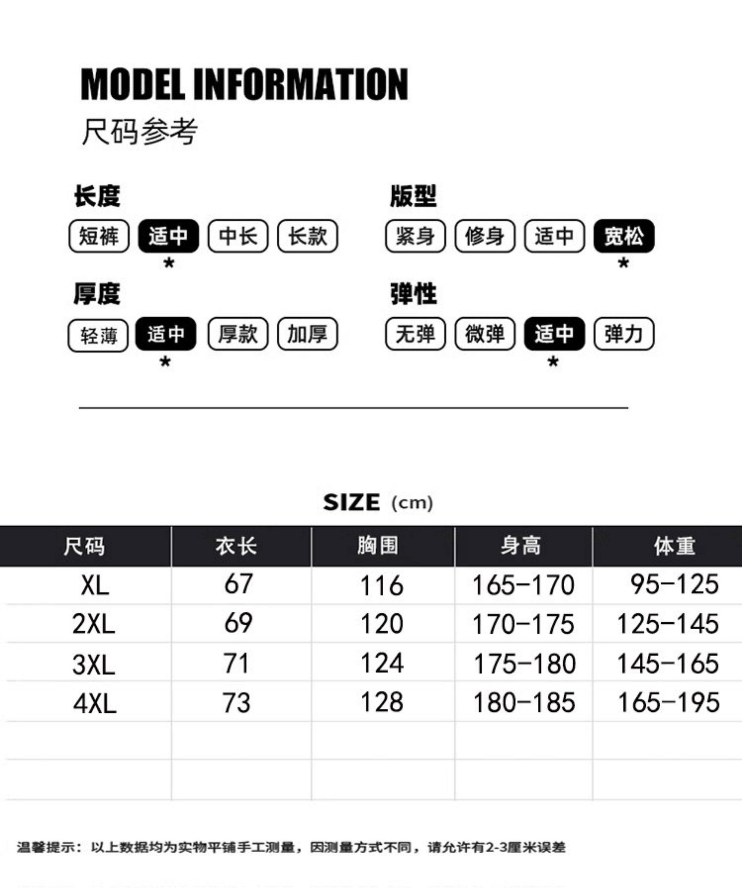 Size 3XL,2XL,XL,4XL