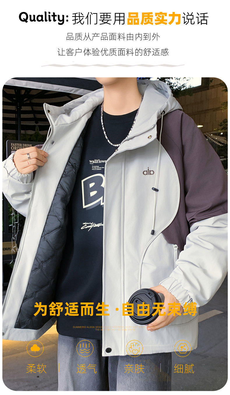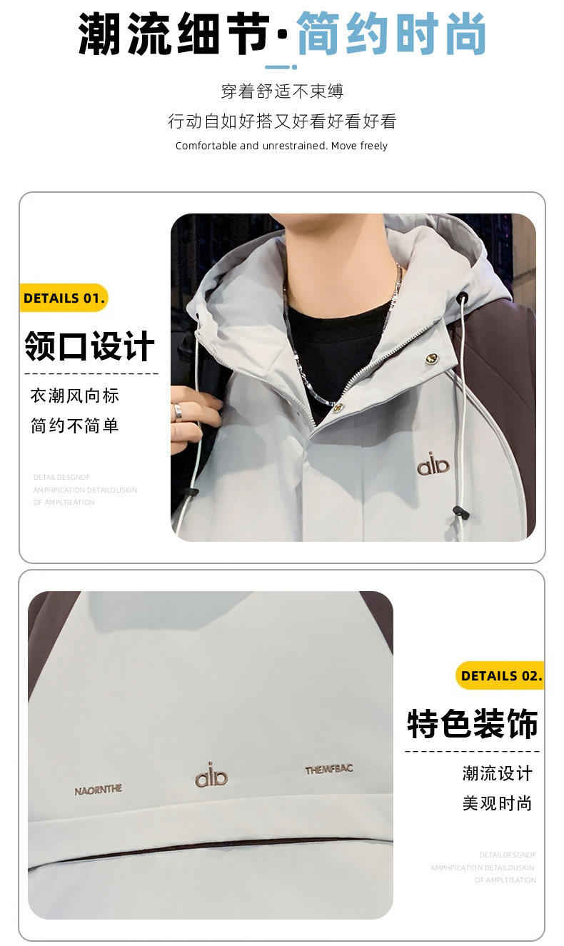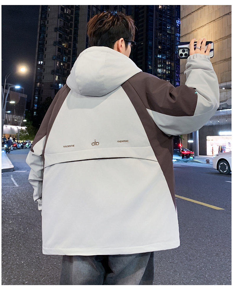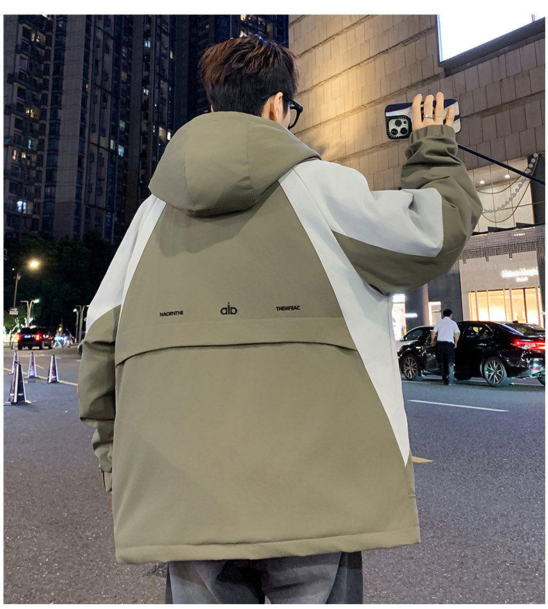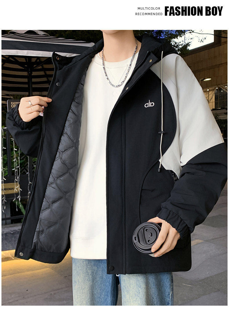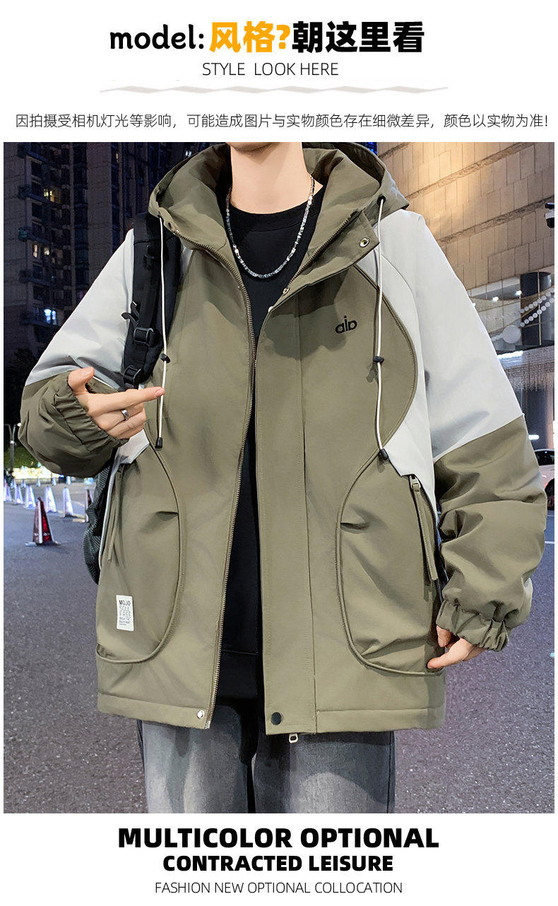 Work jackets for men and teenagers 2025 new autumn and winter hooded quilted thickened jackets for boys spliced jackets