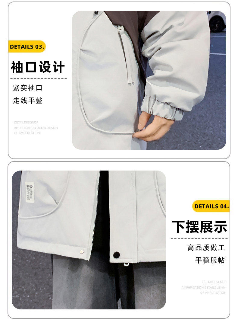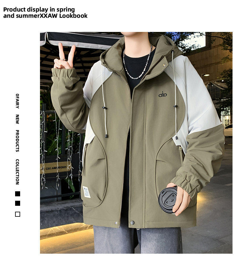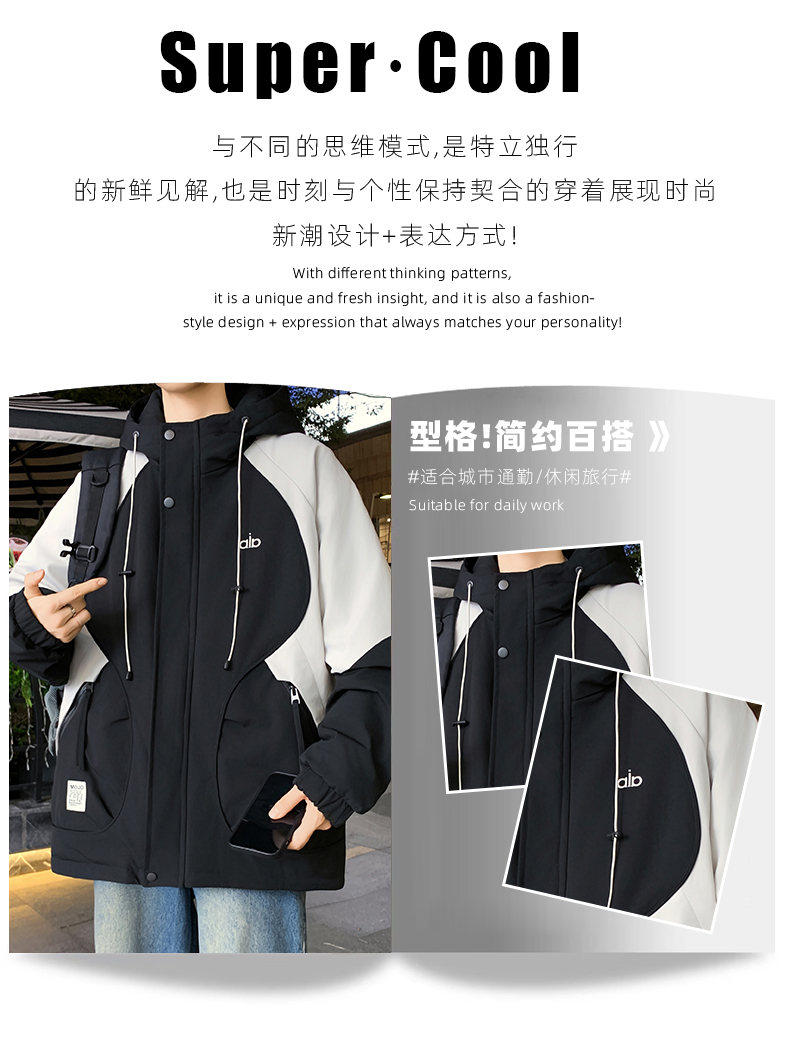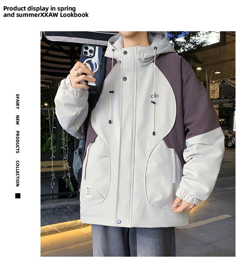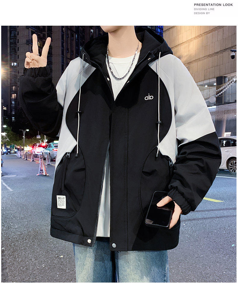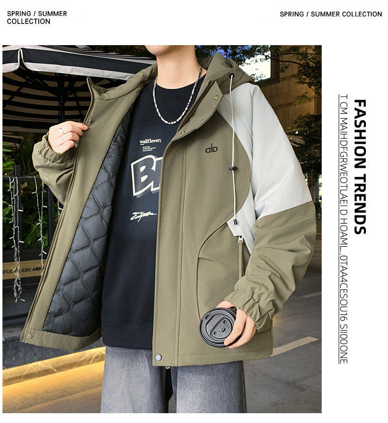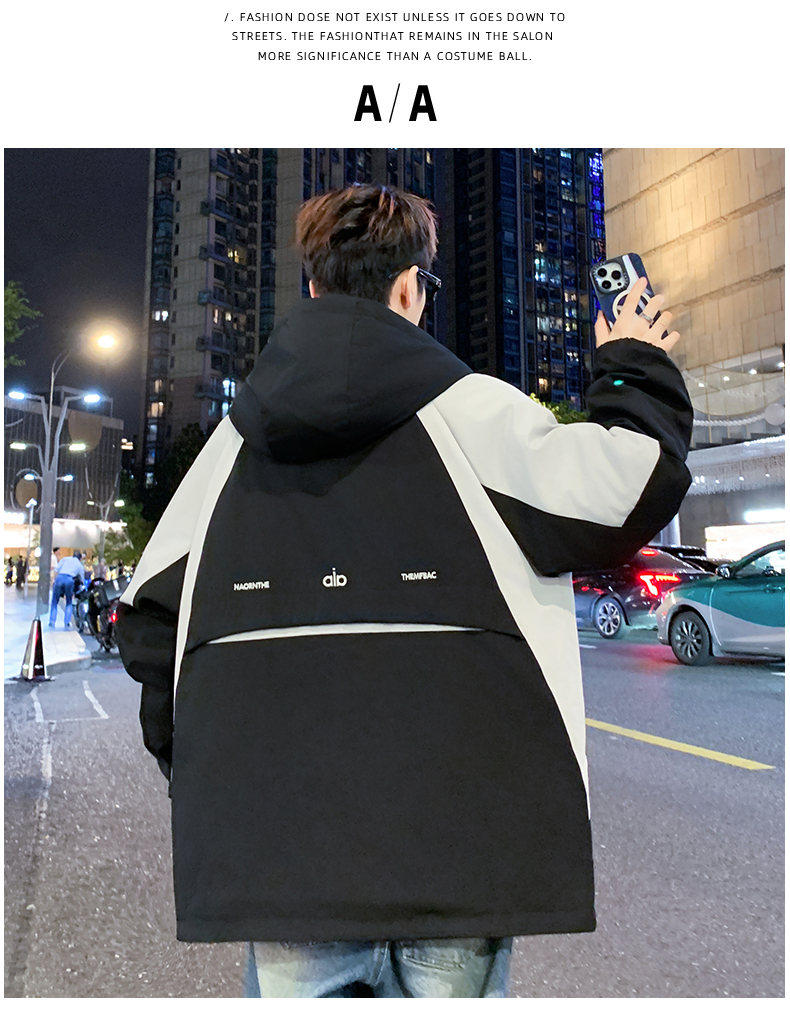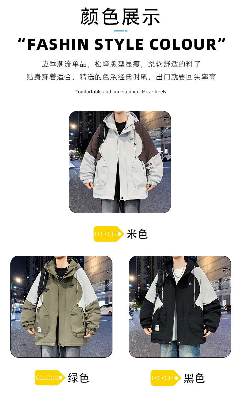 Work jackets for men and teenagers 2025 new autumn and winter hooded quilted thickened jackets for boys spliced jackets