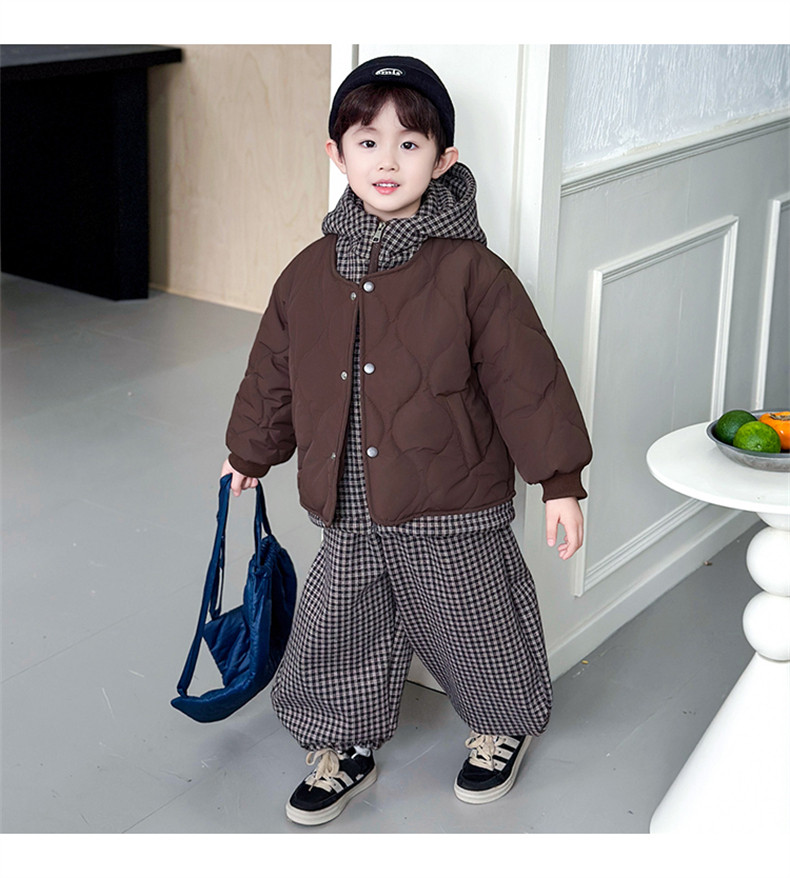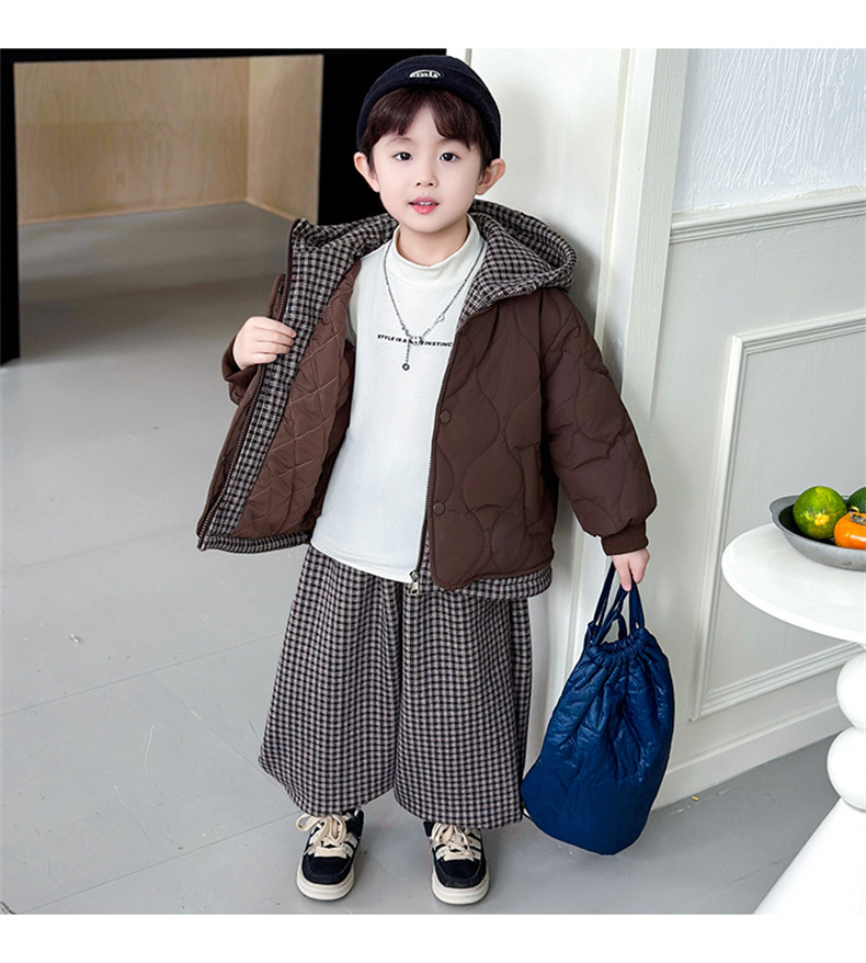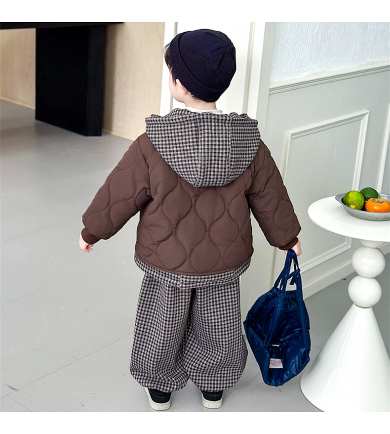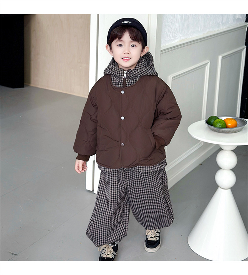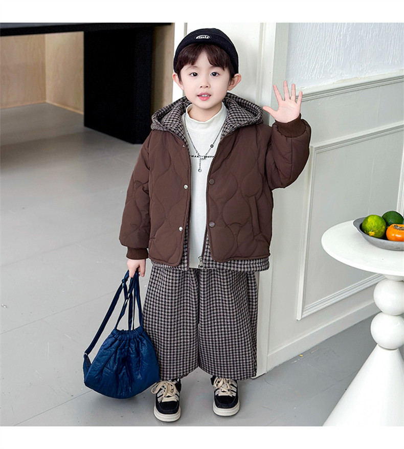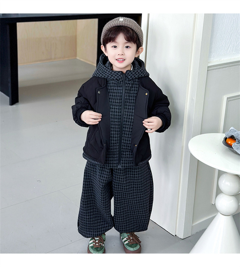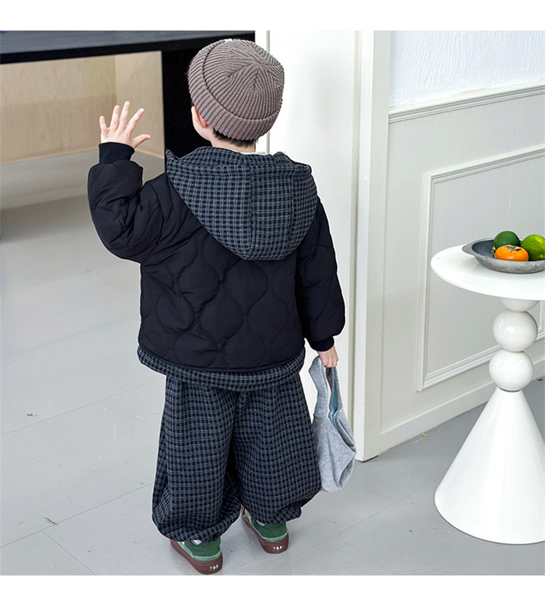 Boys' Autumn and Winter Fleece-Lined Suit 2025 New Style Children's Fake Two-Piece Cotton Coat Jacket Fashionable Boys' Pants Two-Piece Set