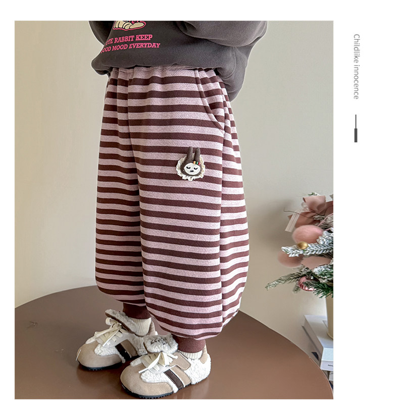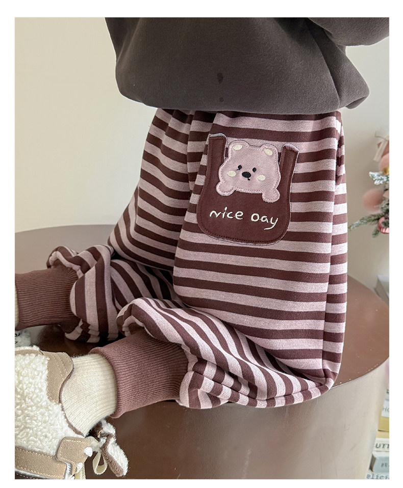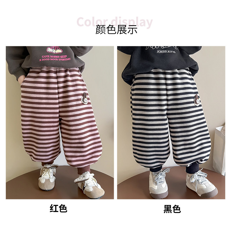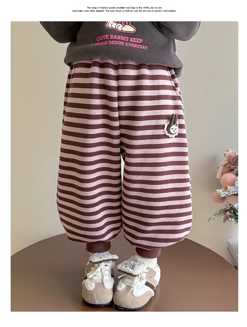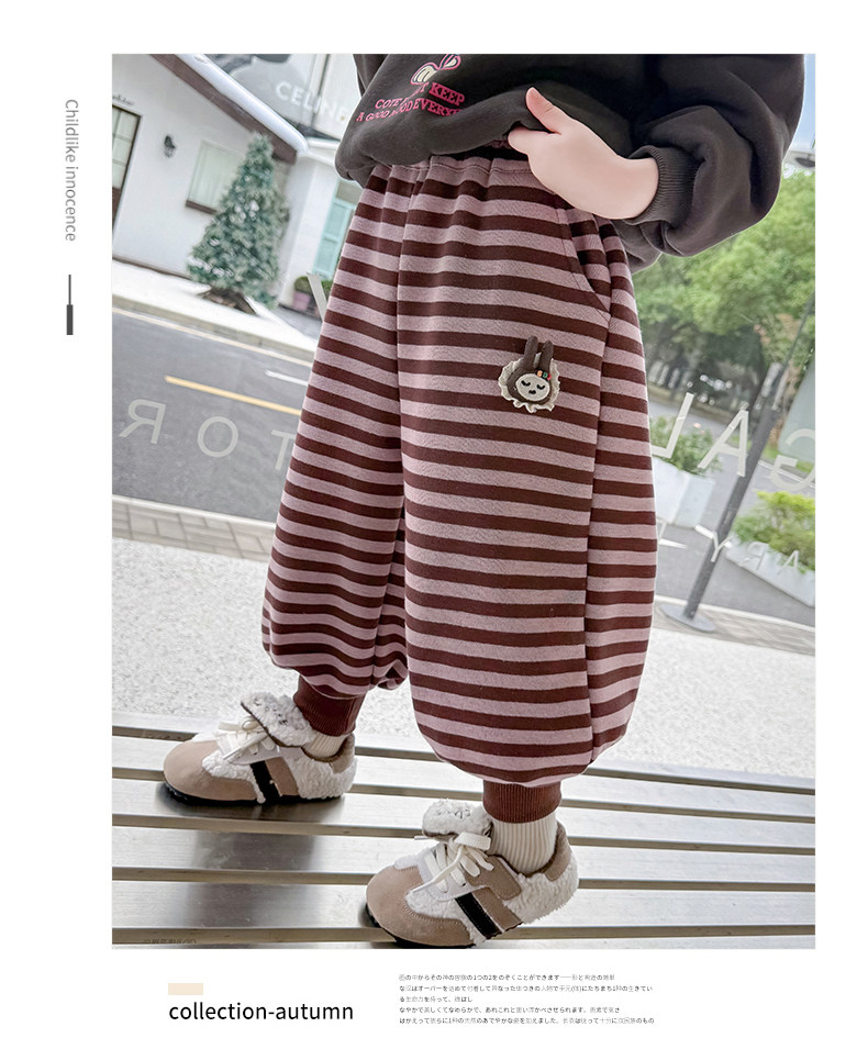 Girls' Fleece-Lined Sweatpants Autumn and Winter 2025 New Stylish Children's Fleece Pants Thick Striped Long Pants for Girls