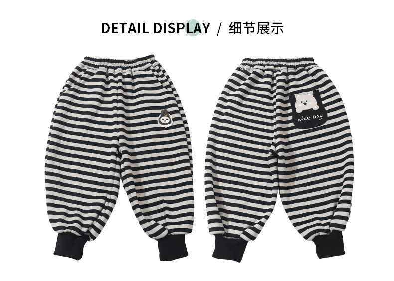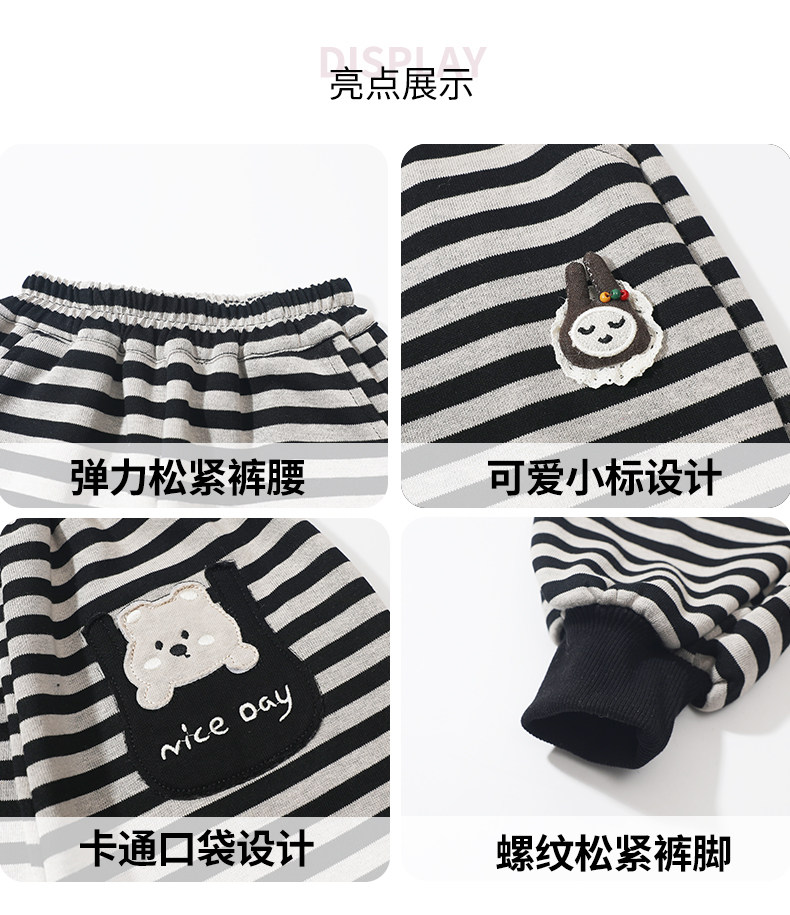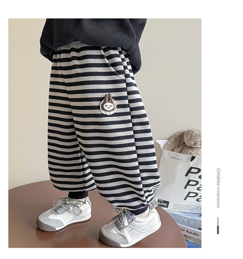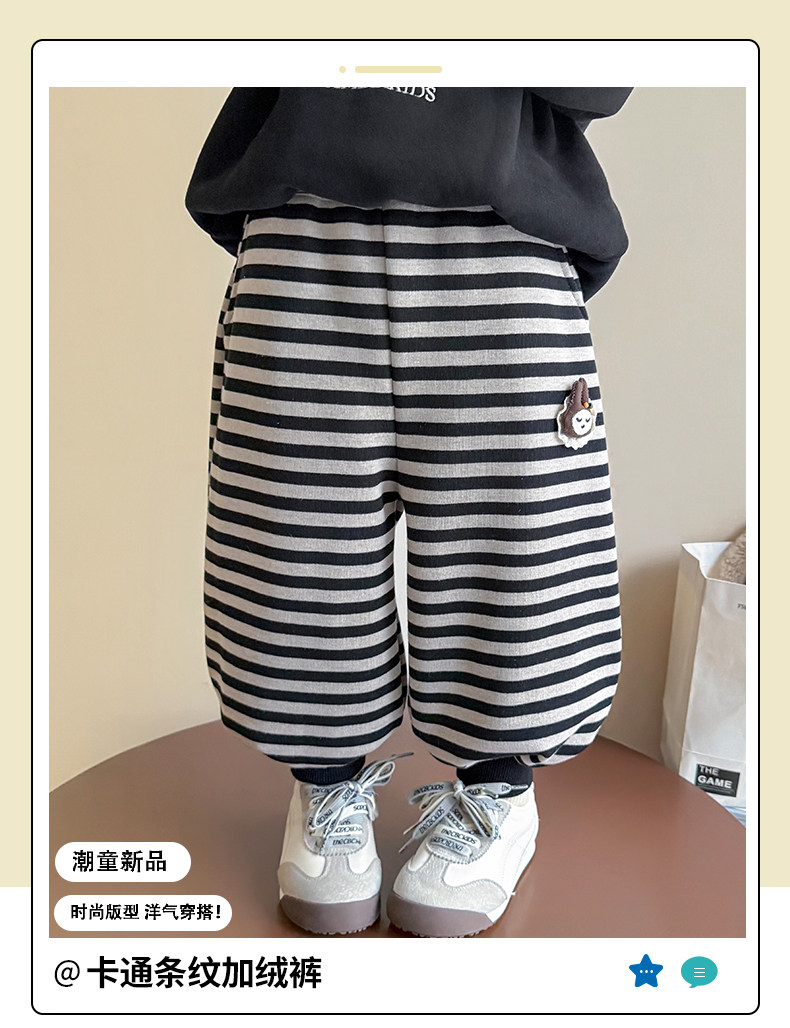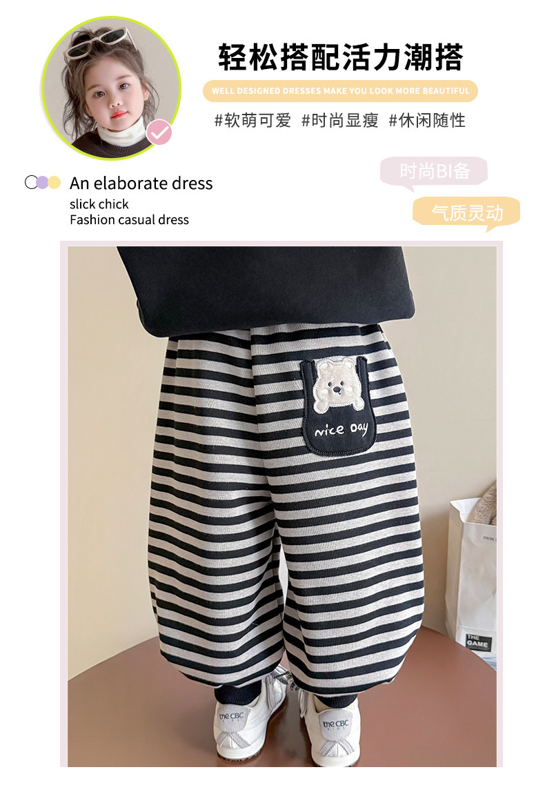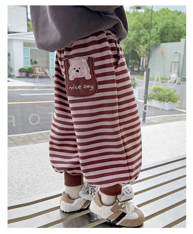 Girls' Fleece-Lined Sweatpants Autumn and Winter 2025 New Stylish Children's Fleece Pants Thick Striped Long Pants for Girls