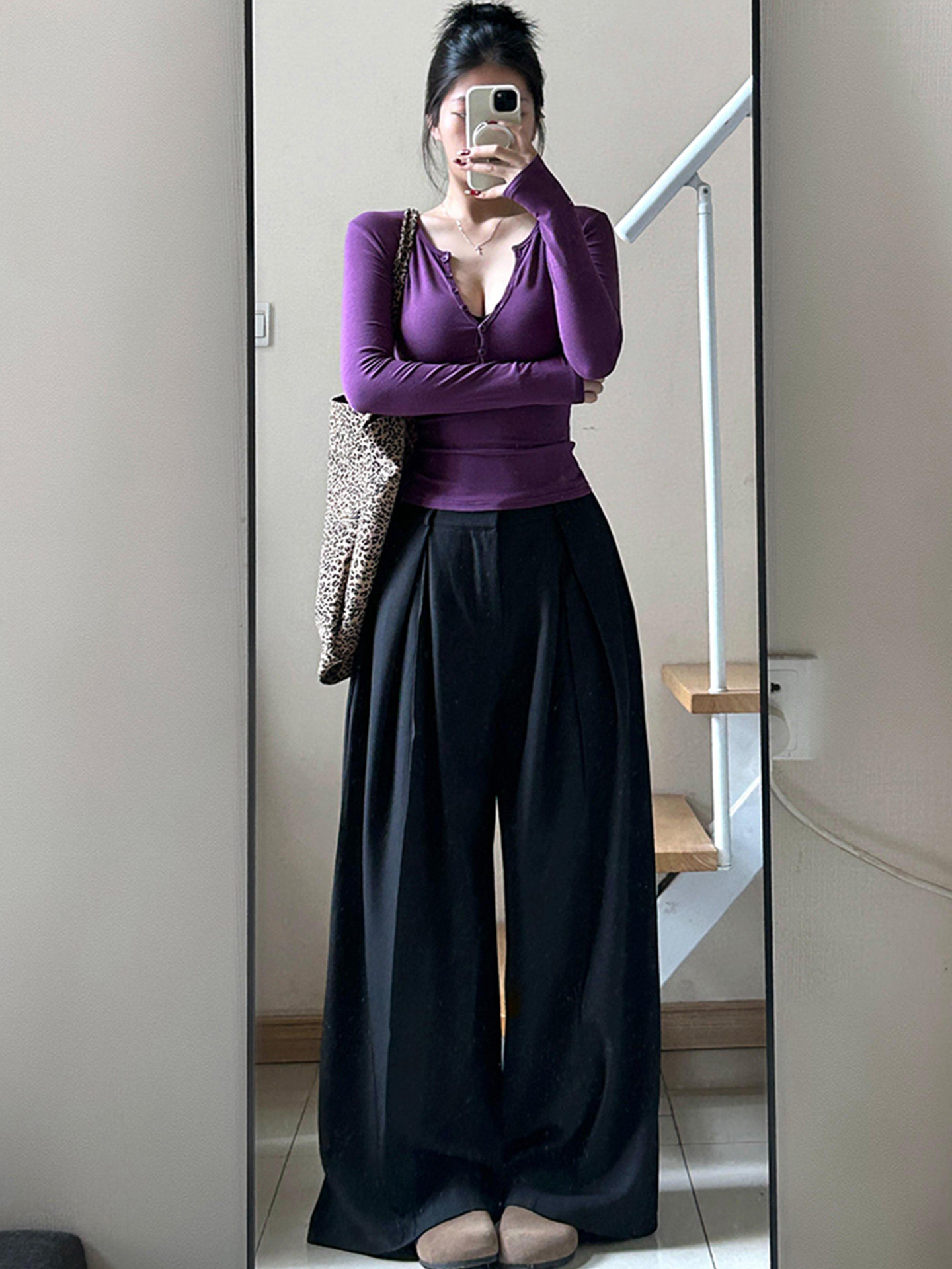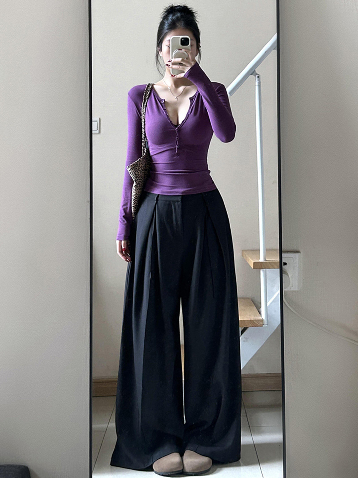 Purely Alluring Purple Half-Open Collar Long-Sleeve T-Shirt for Women, Autumn and Winter, High-End, Tight-Fitting, Sexy V-Neck Inner Layer Top