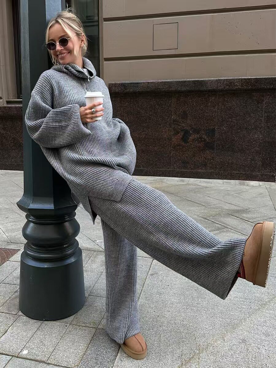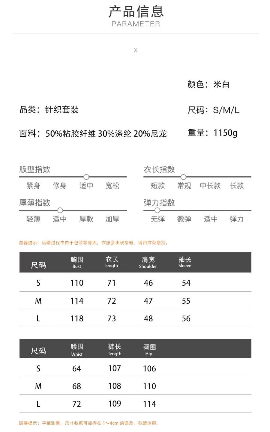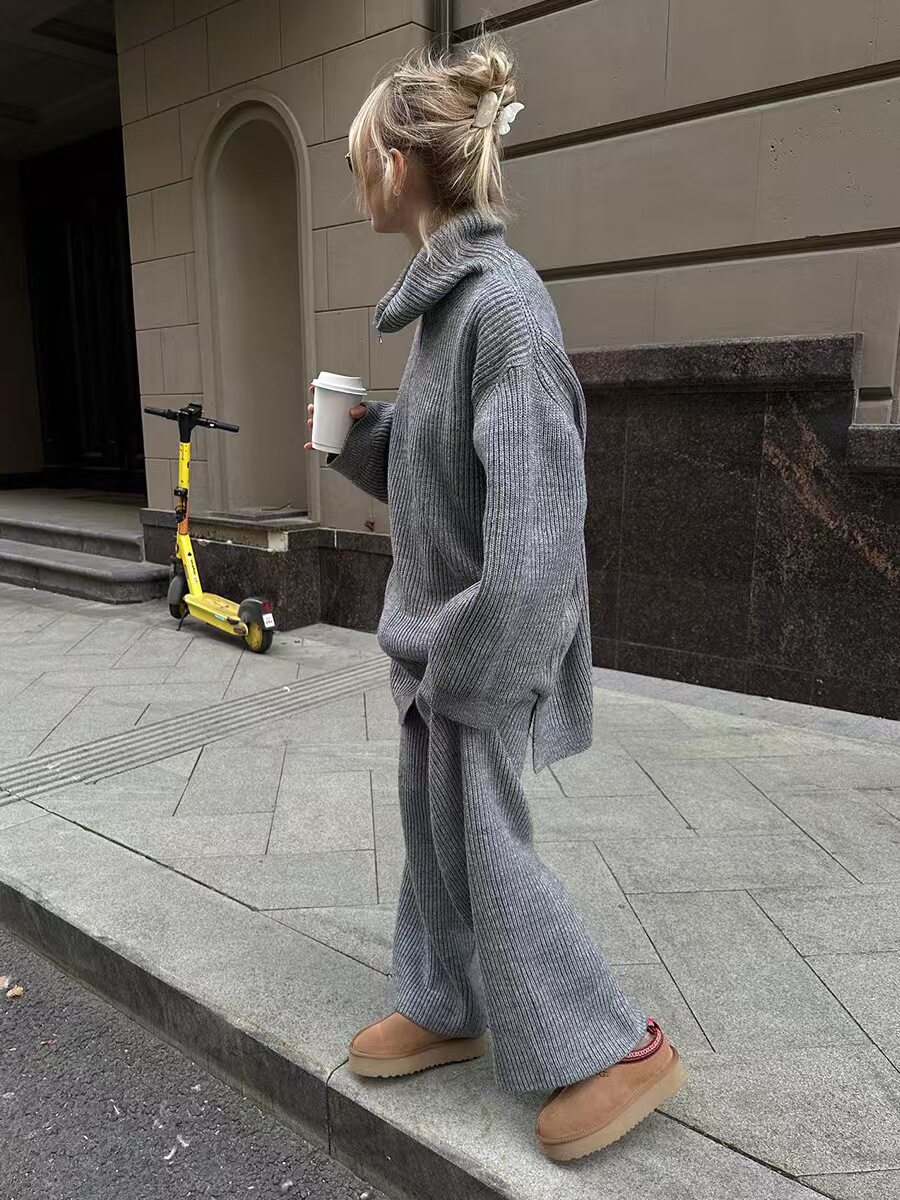 European and American Style New Half-Zip Knitted Lapel Sweater Wide-Leg Pants Set Sweater and Pants Set
