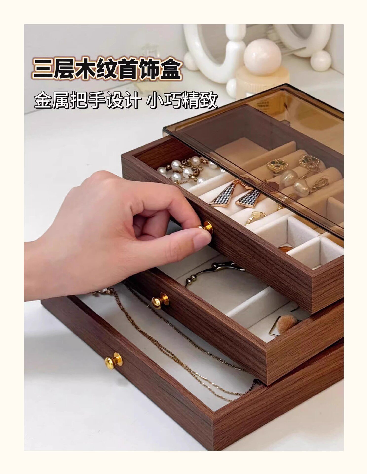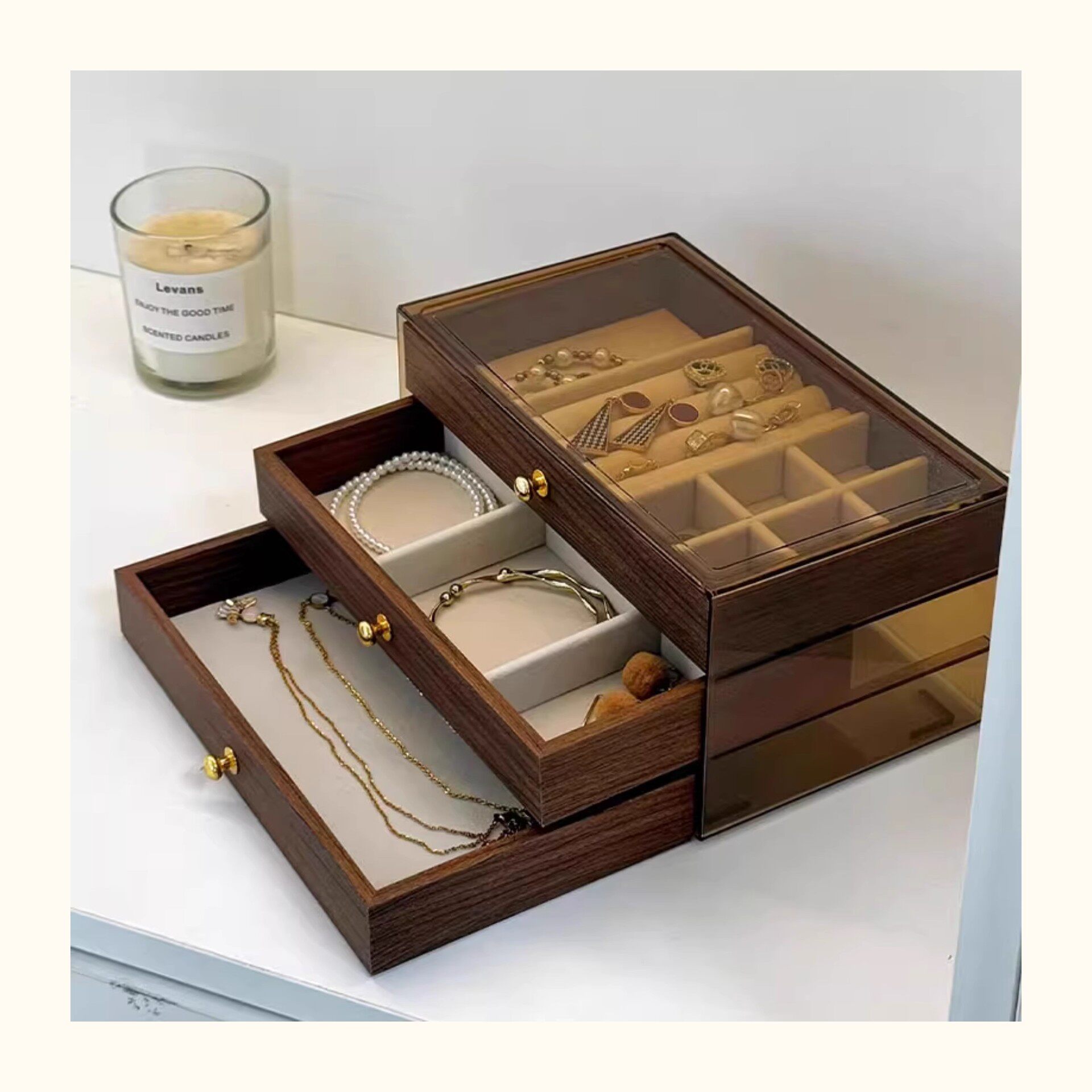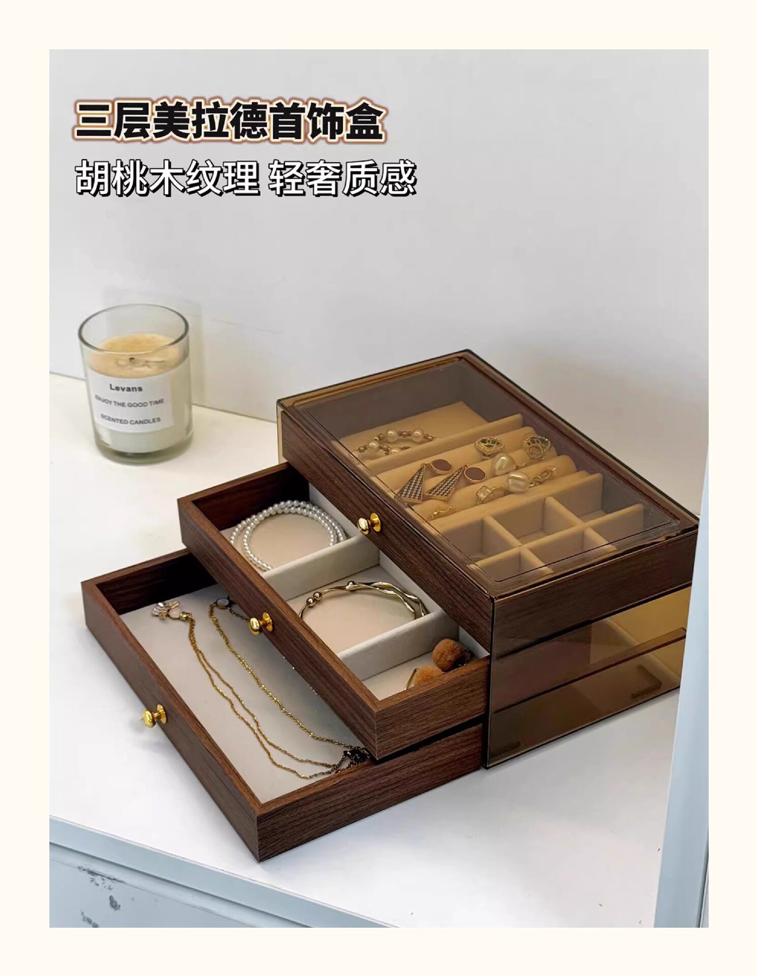 High-End Walnut Jewelry Box for Rings, Necklaces, Bracelets, Jewelry Storage Box, Five-Layer Large-Capacity Jewelry Box, Exquisite