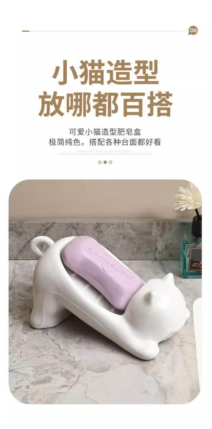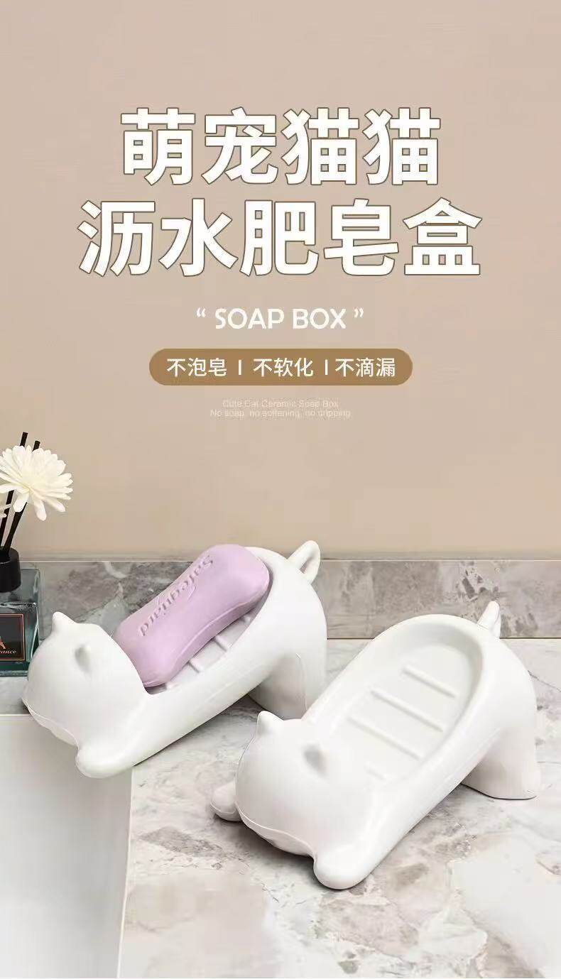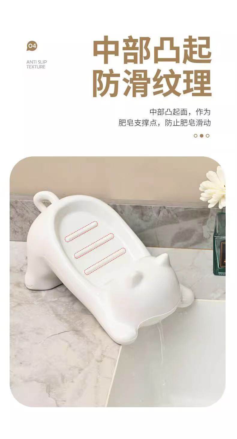 Cartoon Cat Imitation Ceramic Plastic Soap Dish Creative Cute Bathroom Soap Holder Storage Rack Sink Drain Rack