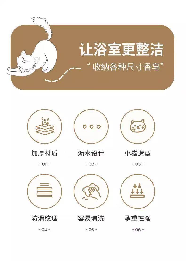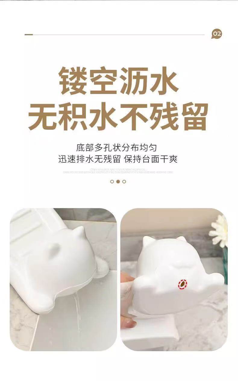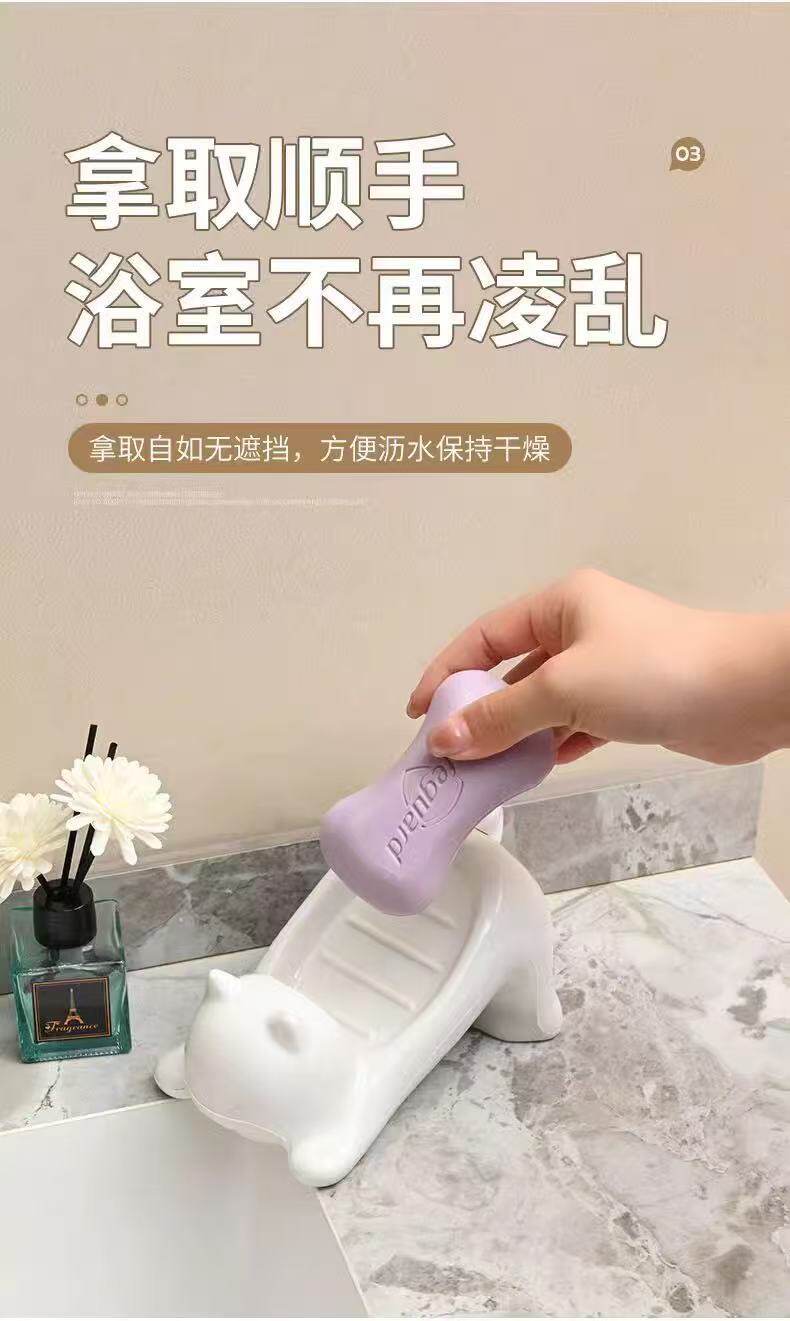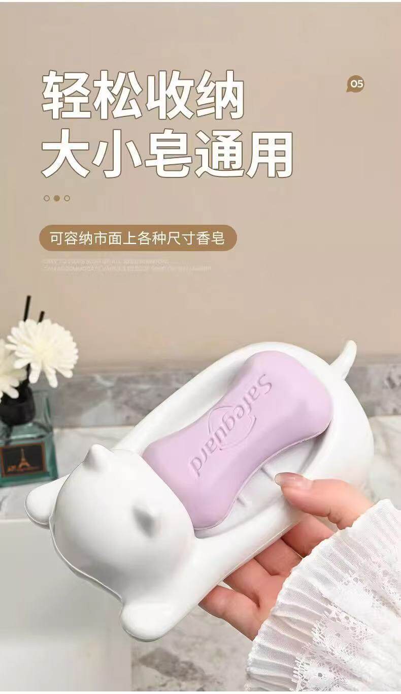 Cartoon Cat Imitation Ceramic Plastic Soap Dish Creative Cute Bathroom Soap Holder Storage Rack Sink Drain Rack
