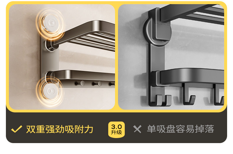 Japanese Suction Cup Towel Rack Bathroom No-Drill Storage Shelf Shower Room Integrated Toilet Storage Towel Rack
