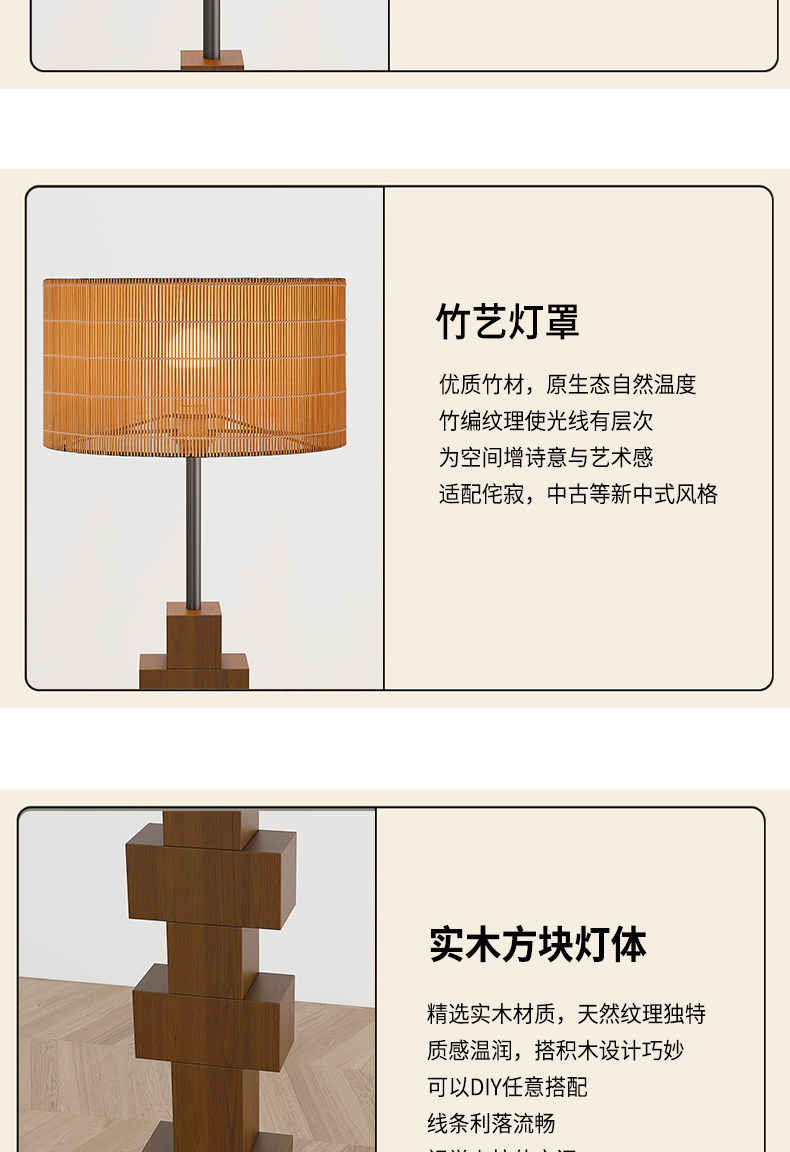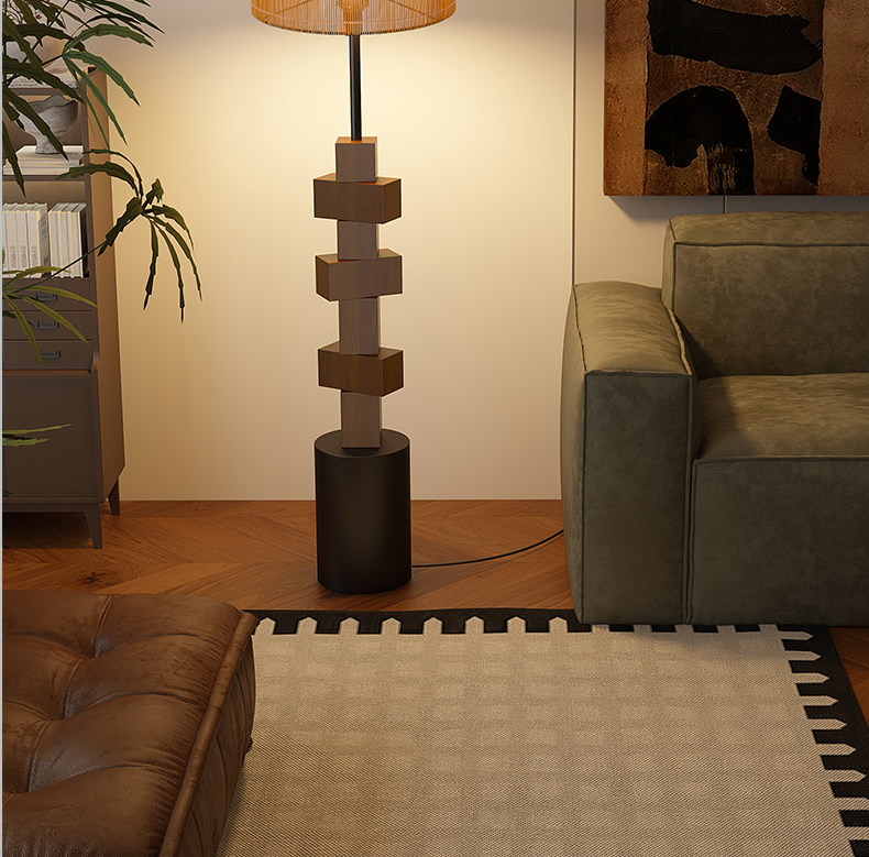 French Mid-Century Style Floor Lamp 2025 New Model Geometric Building Block Creative Personality Bedroom Bedside Lamp Next to the Sofa in the Living Room