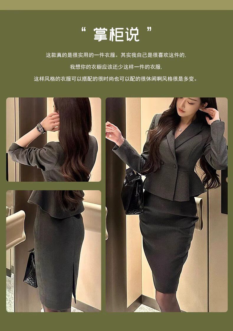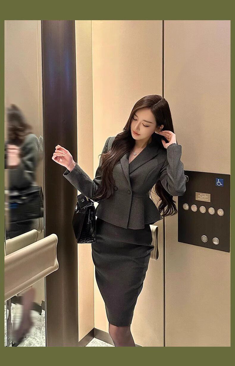 High-End Salt-Style Light Mature Gray Suit Set with Skirt, Professional Slimming Suit, Workwear, Half Skirt Two-Piece Set for Women