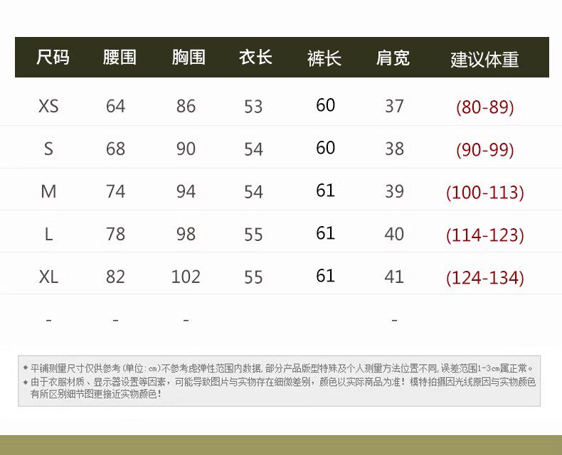 China (cm) 165 / 88-90 170 / 96-98 175 / 108-110 180 / 118-122 185 / 126-130