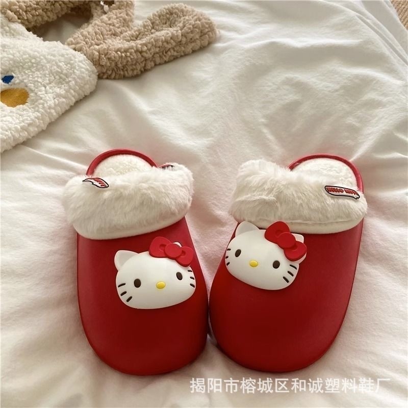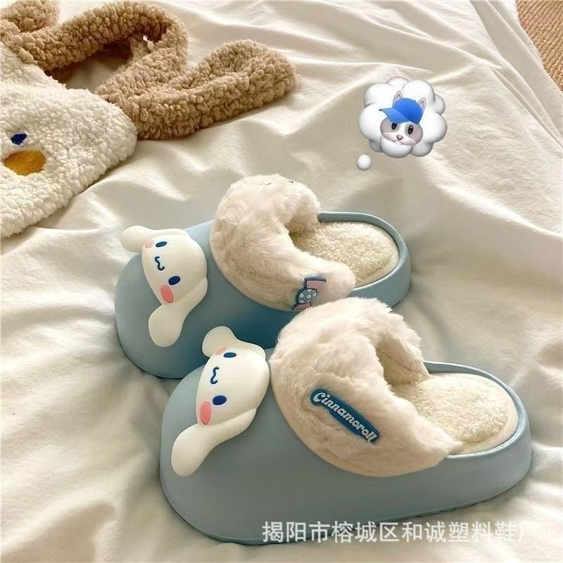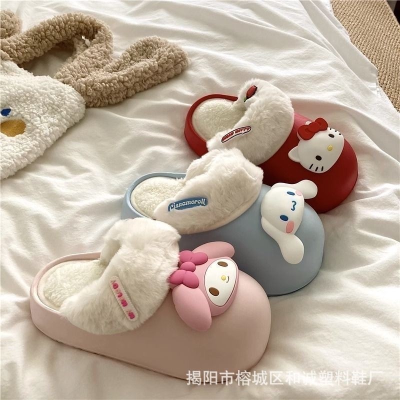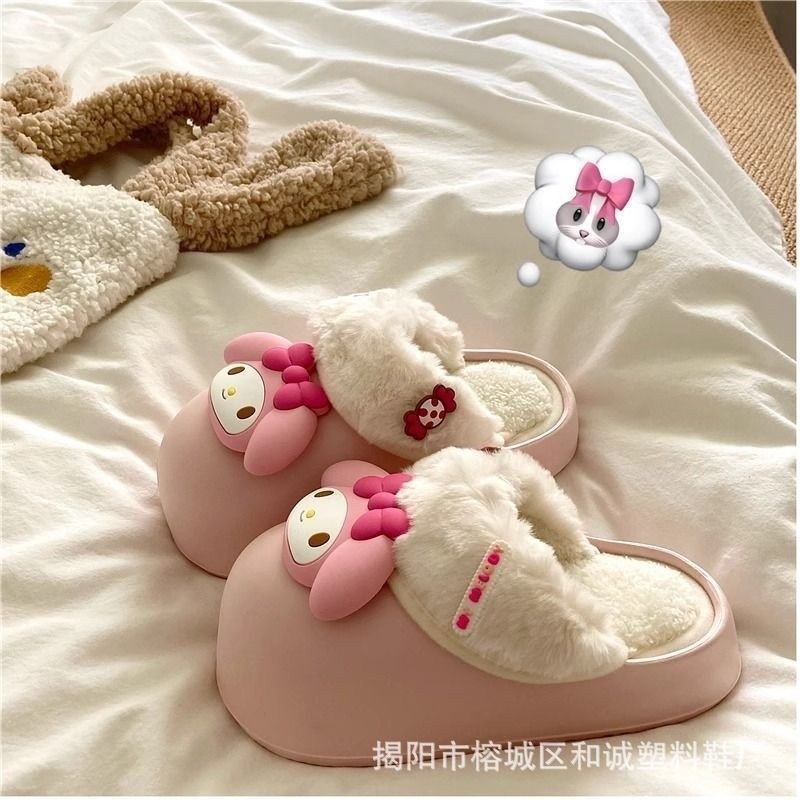 Cute Cartoon My Melody Waterproof Cotton Slippers for Women 2025 Autumn and Winter New Style Outdoor Thick-Soled Home Warm Closed-Toe Slippers