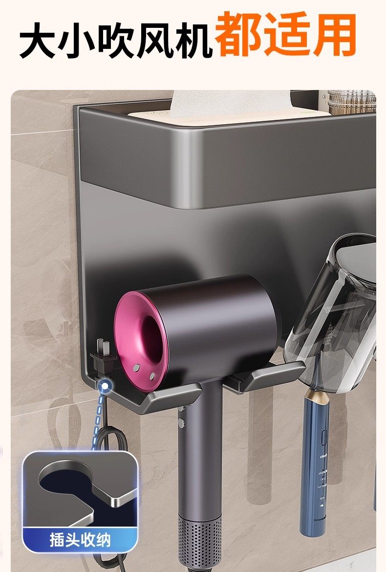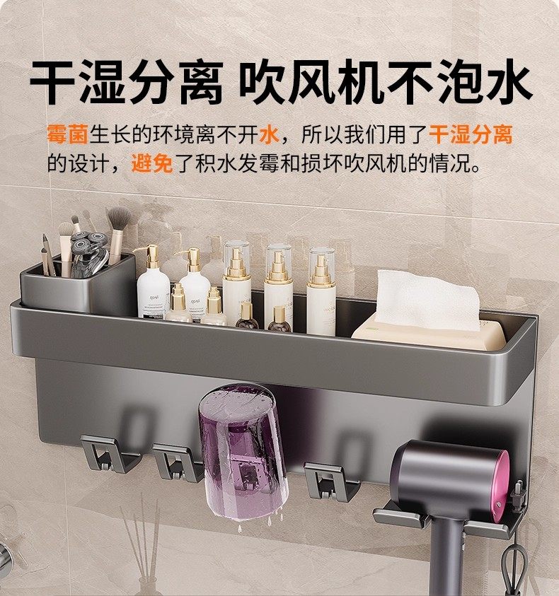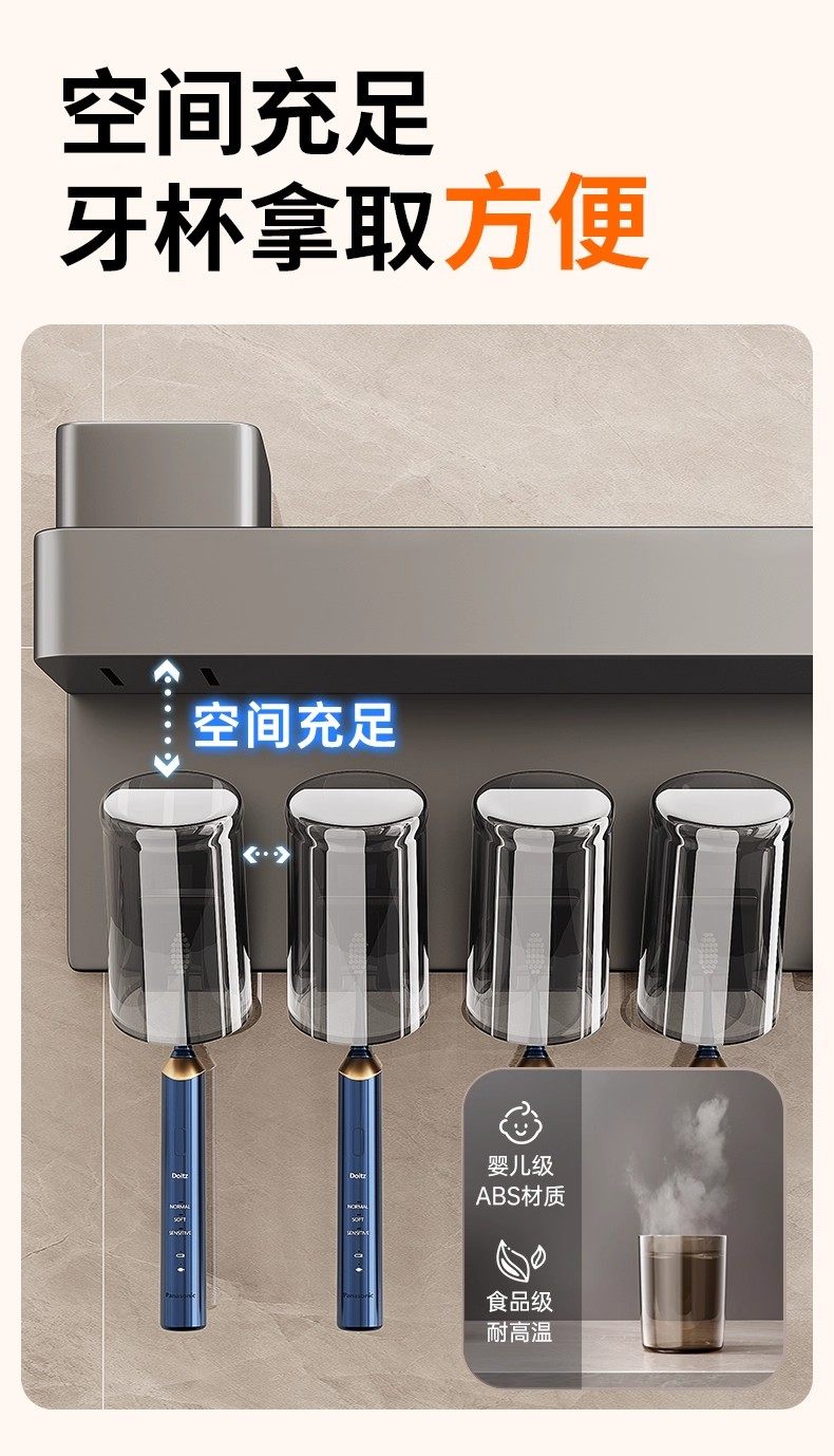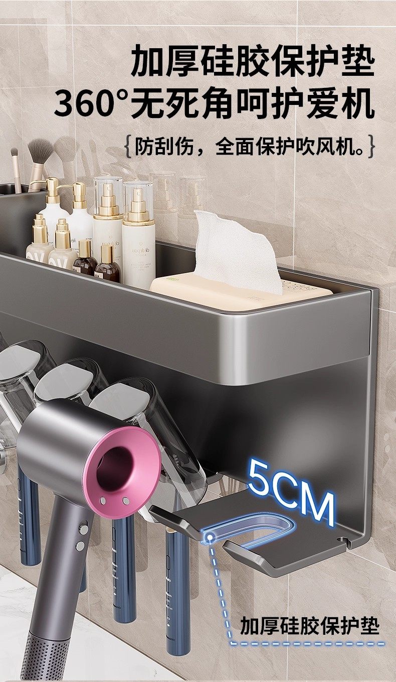 German Precision Toothbrush Holder Bathroom Multifunctional No-Drill Wall-Mounted Mouthwash Cup Hair Dryer Rack