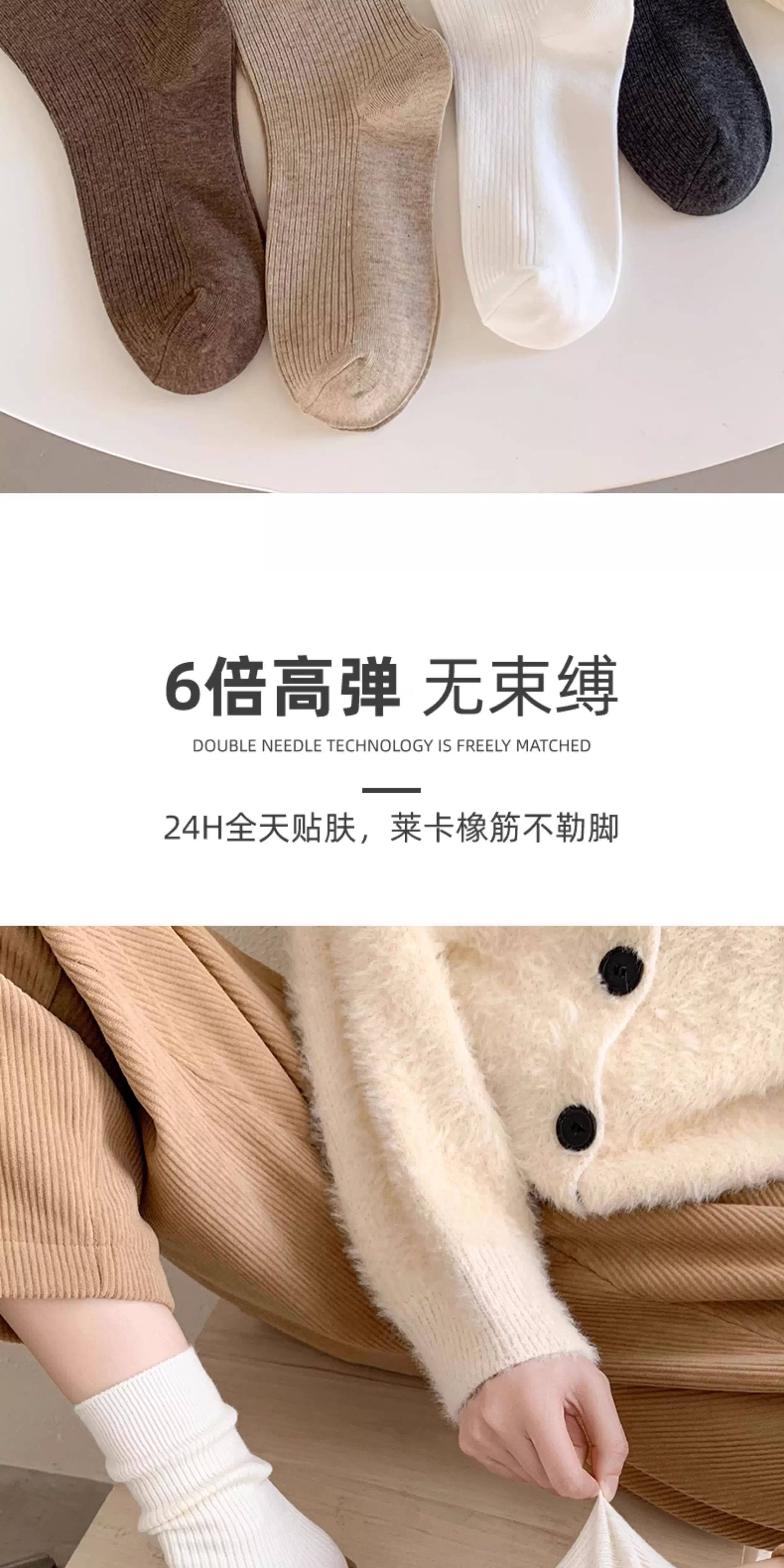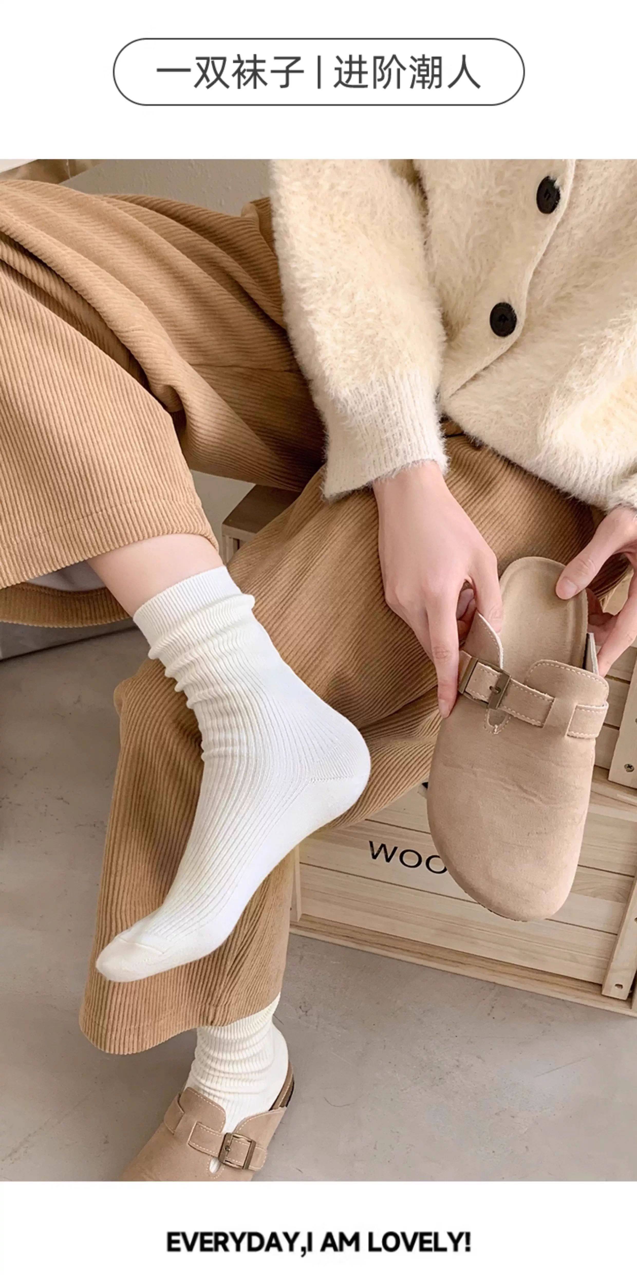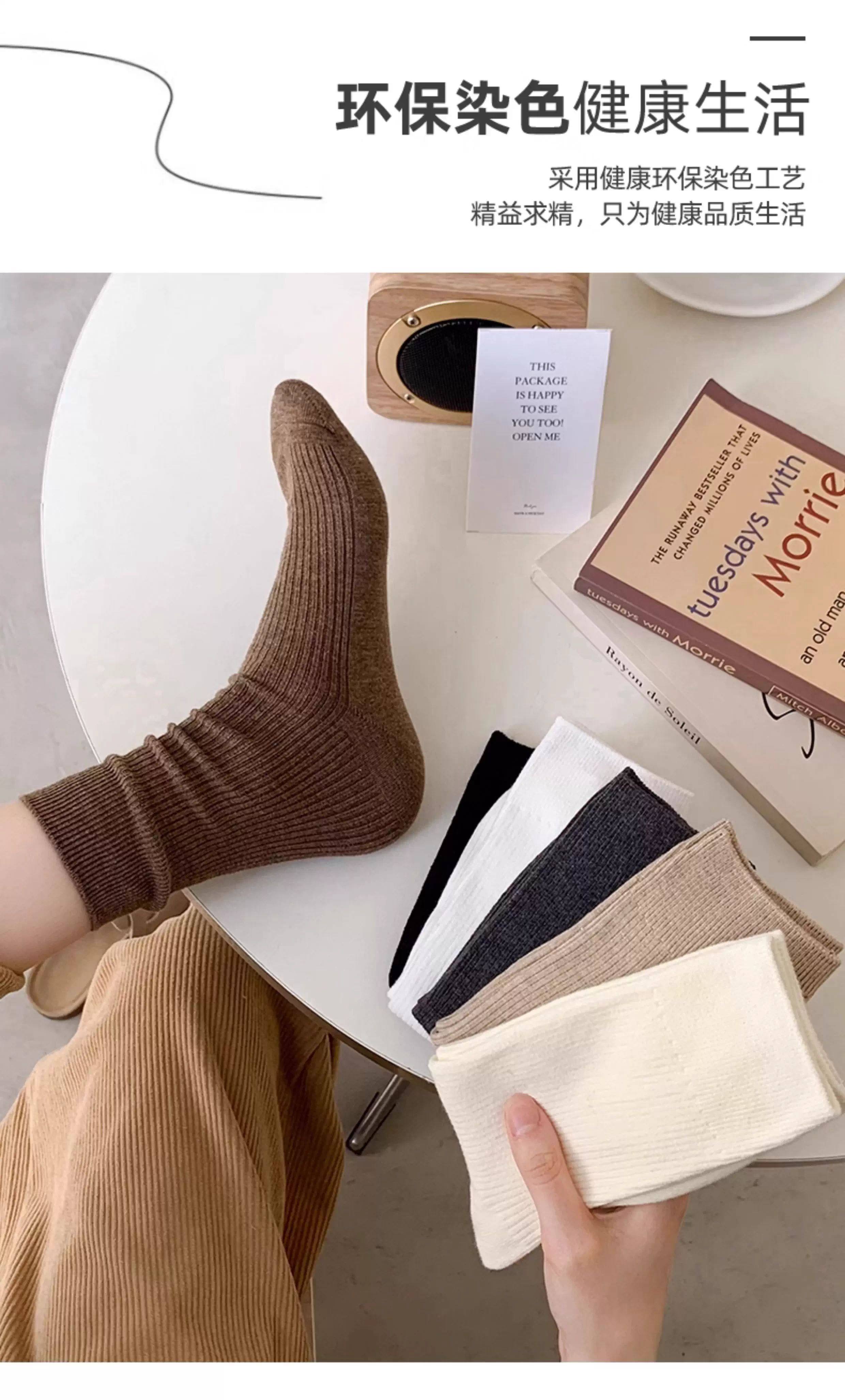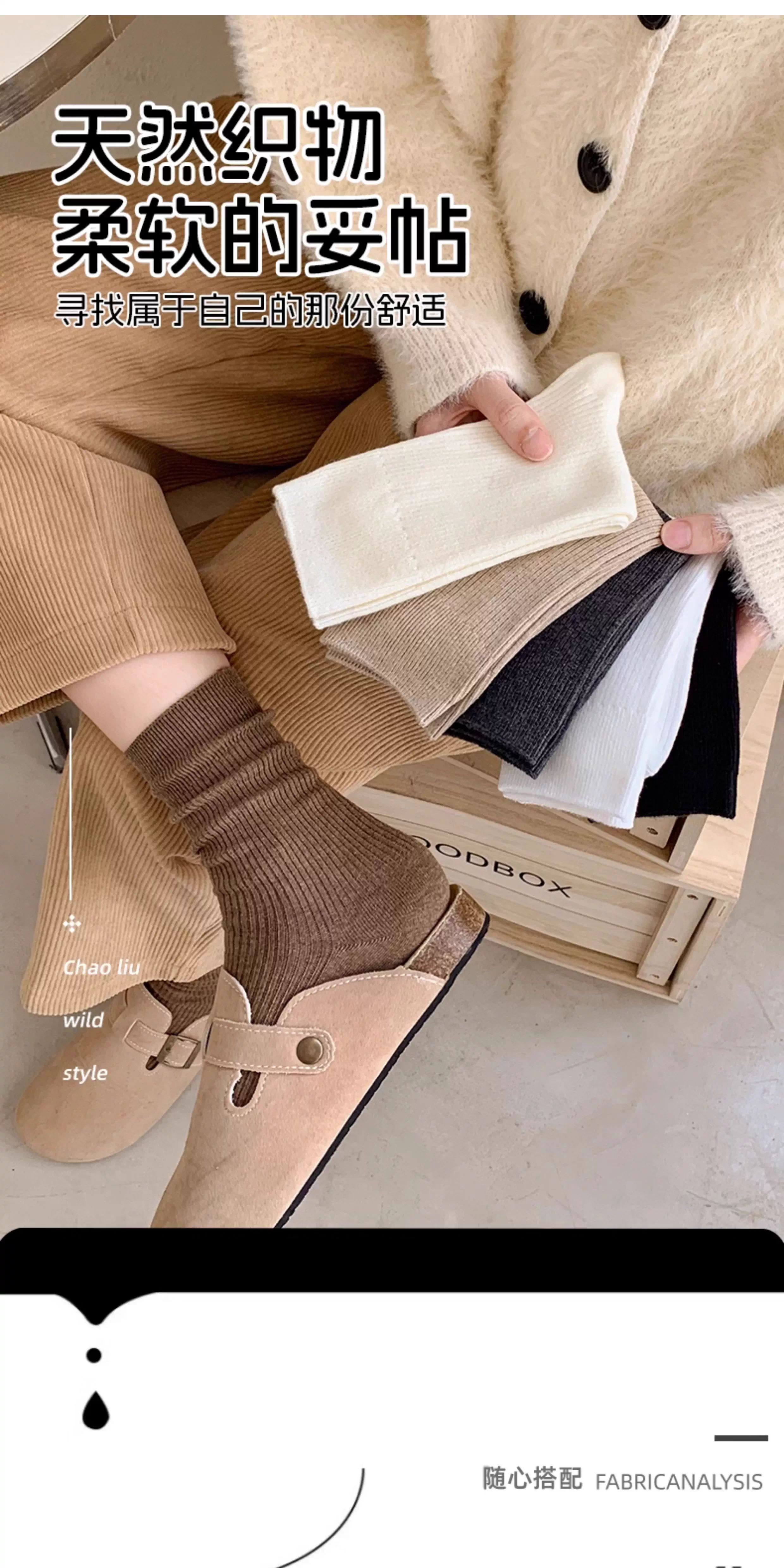 Brown Socks for Women, Pure Cotton Mid-Calf Socks, Autumn and Winter Style, Melard Brown Seamless Xinjiang Cotton Socks, Suitable for Birkenstock Shoes, Slouch Socks