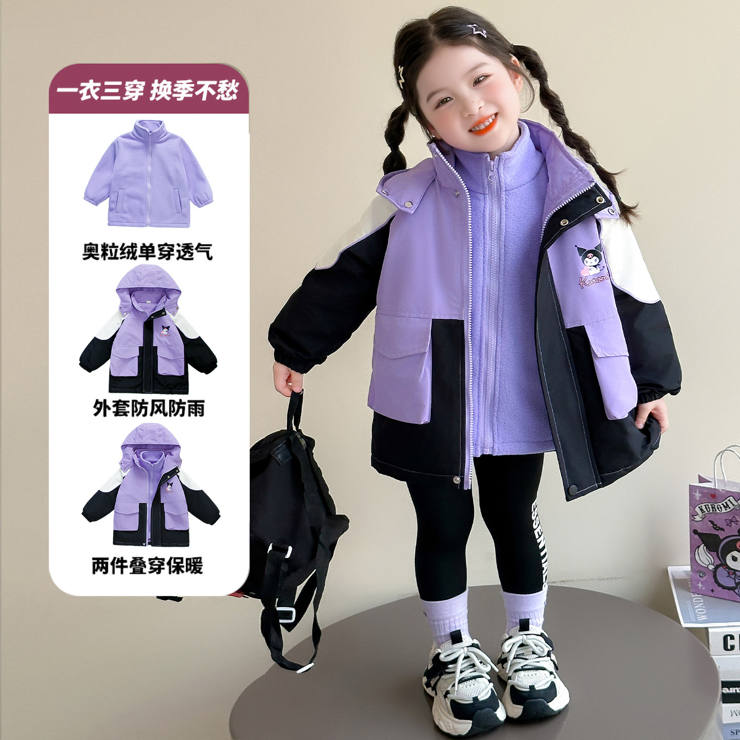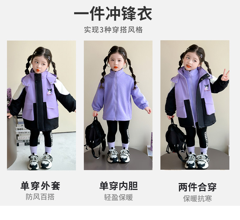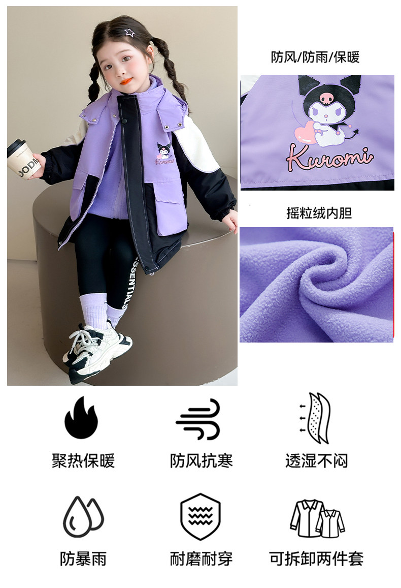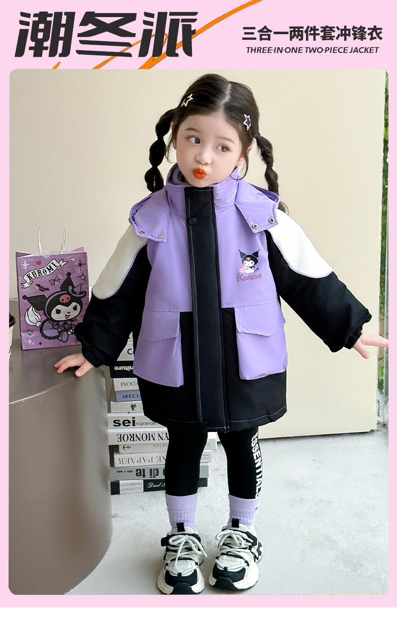 Kuromi Girls' 3-in-1 Detachable Windbreaker 2025 New Model Children's Baby Girl Windbreaker Padded Jacket Trendy