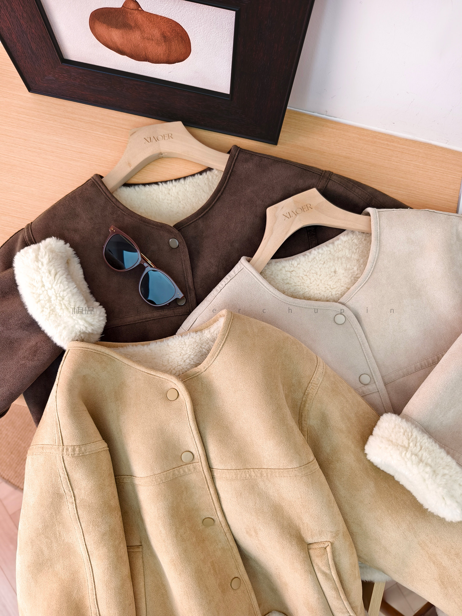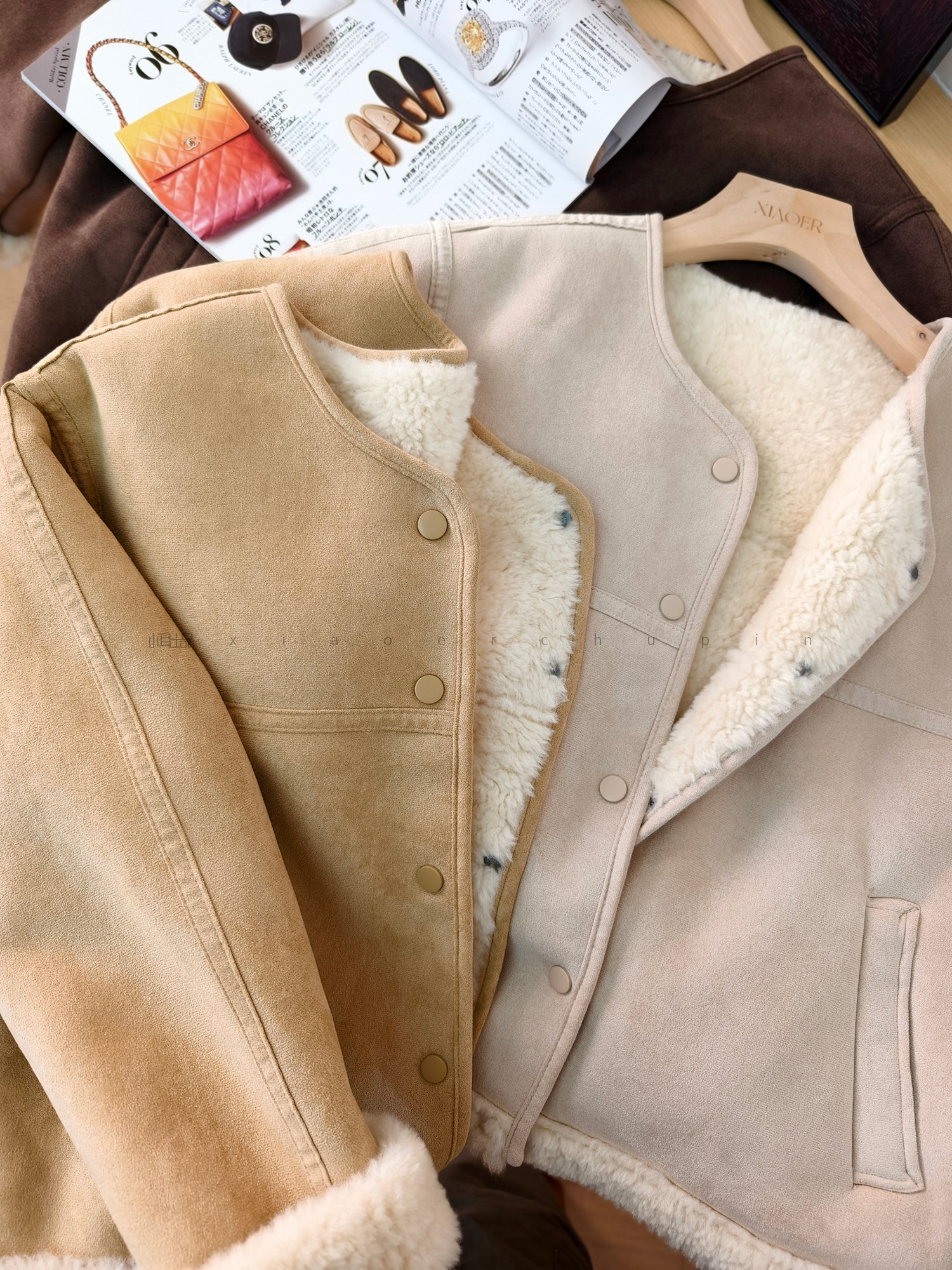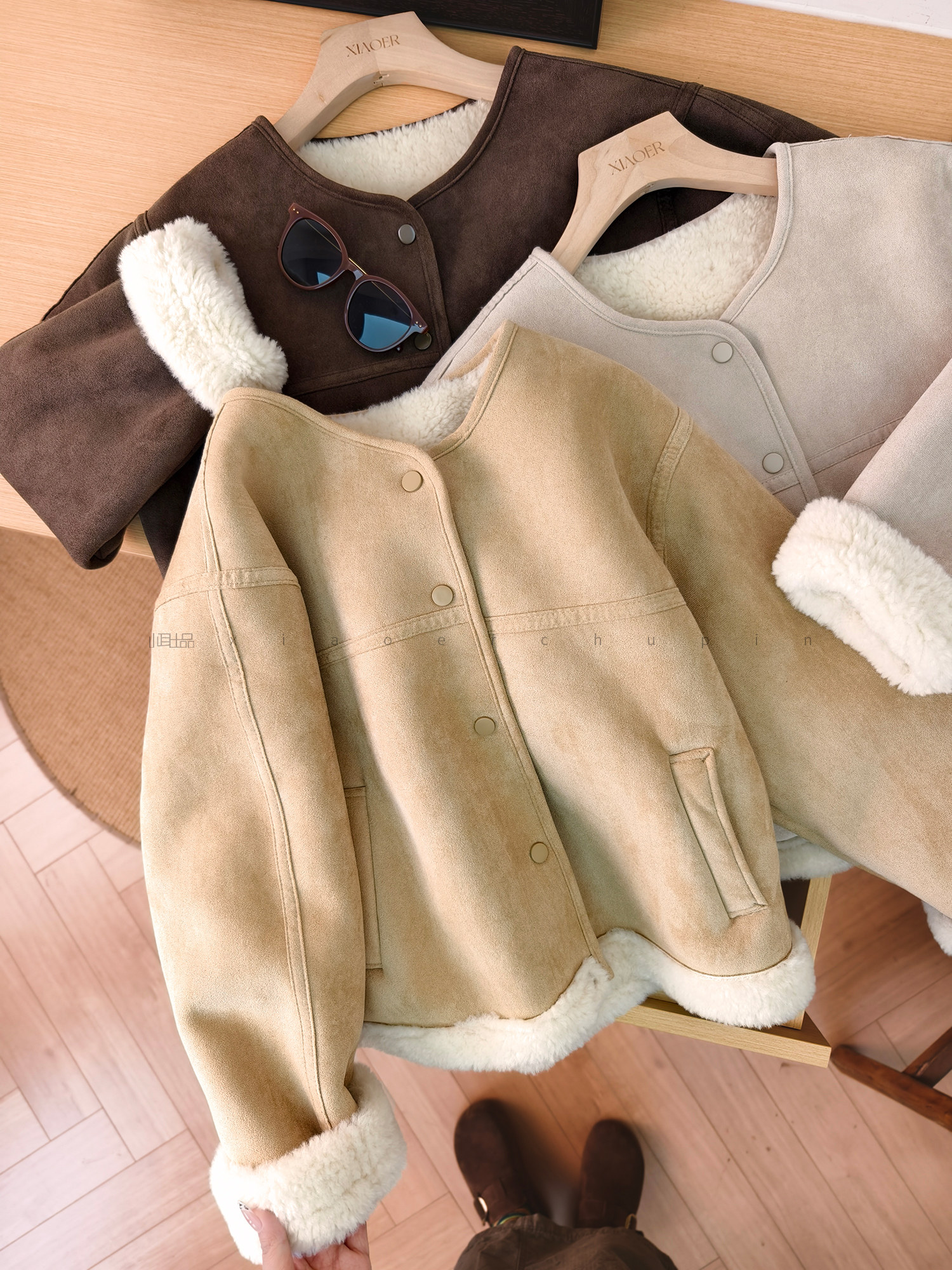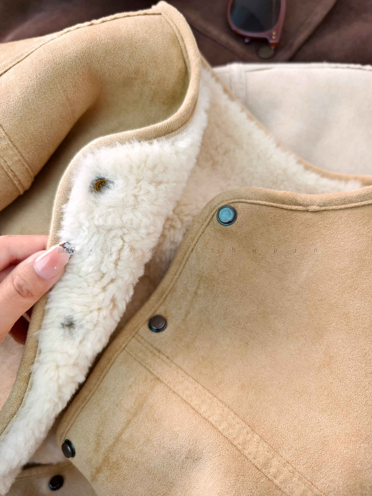 Produced by Xiaoer, Korean sister~Peng gram heavy soft suede/large grain lamb velvet lining, warm and slimming jacket for women
