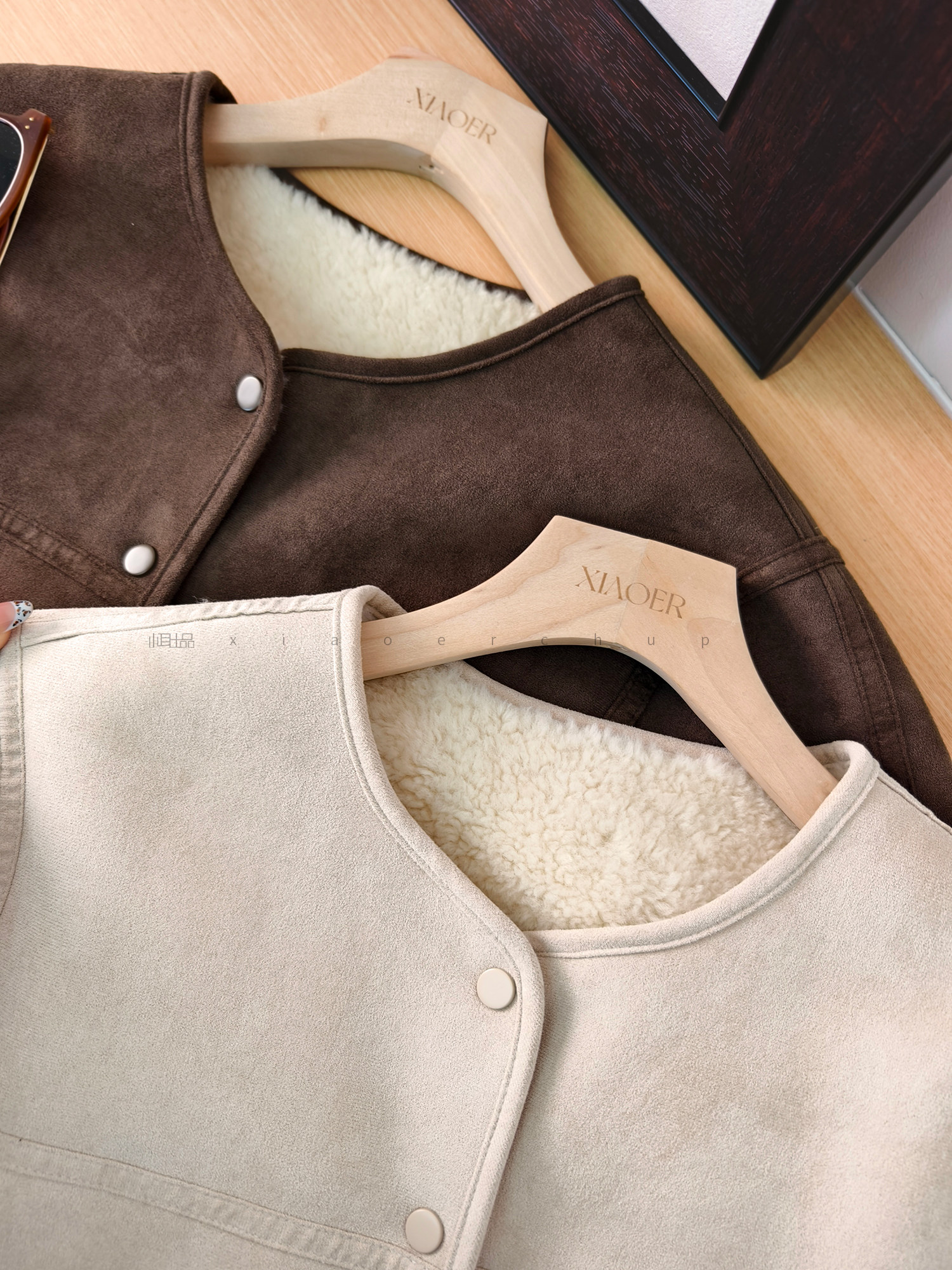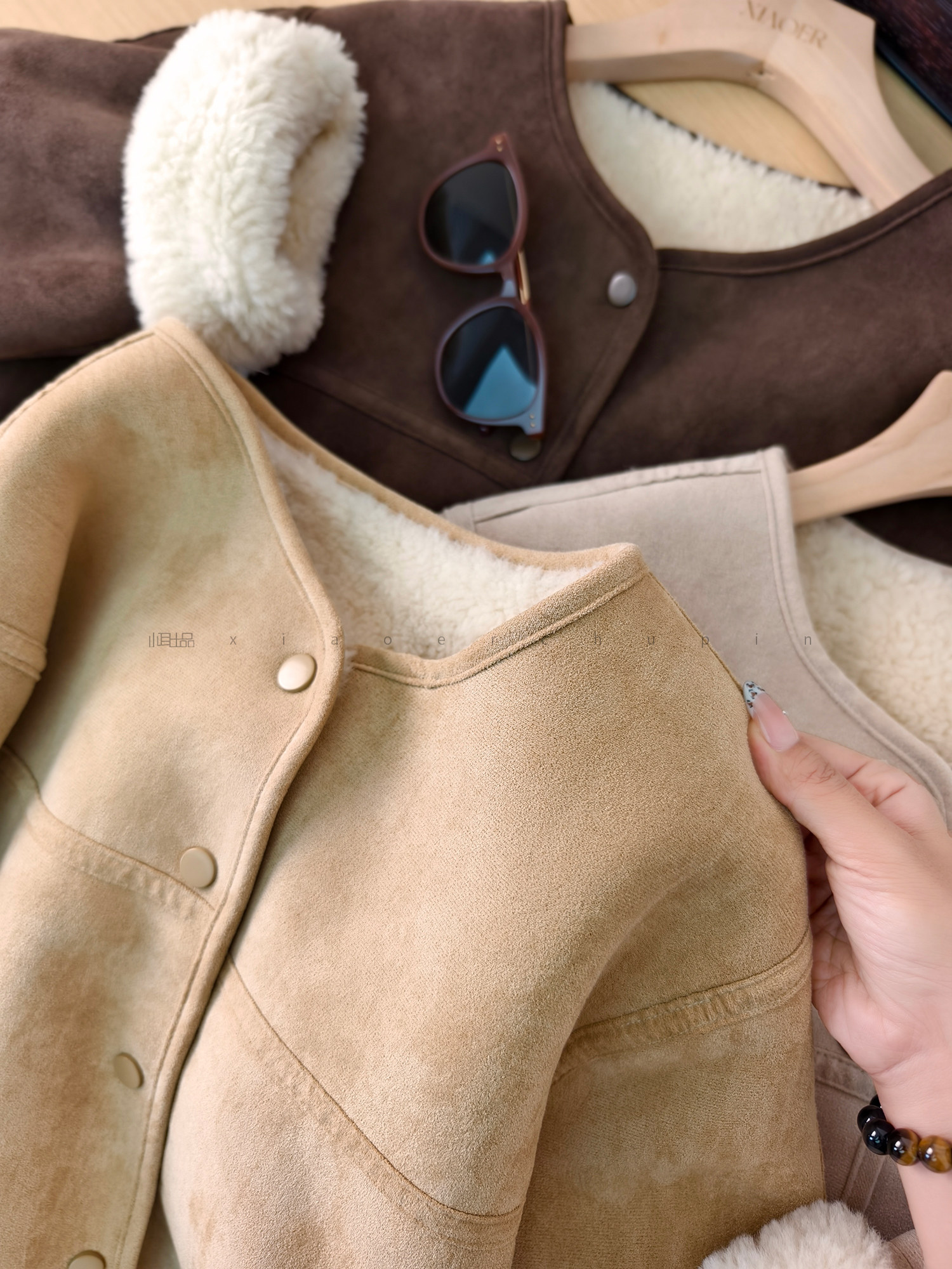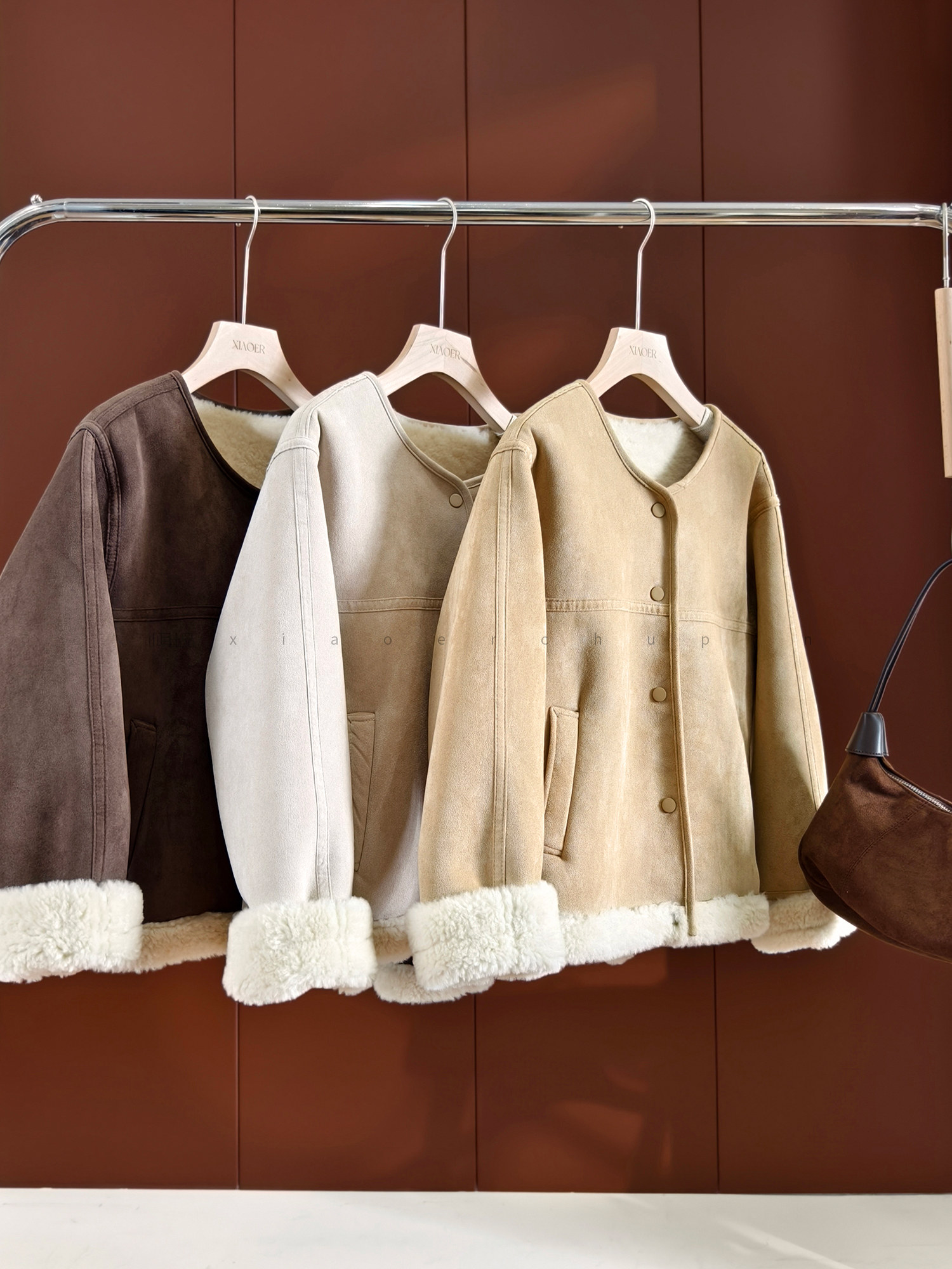 Produced by Xiaoer, Korean sister~Peng gram heavy soft suede/large grain lamb velvet lining, warm and slimming jacket for women